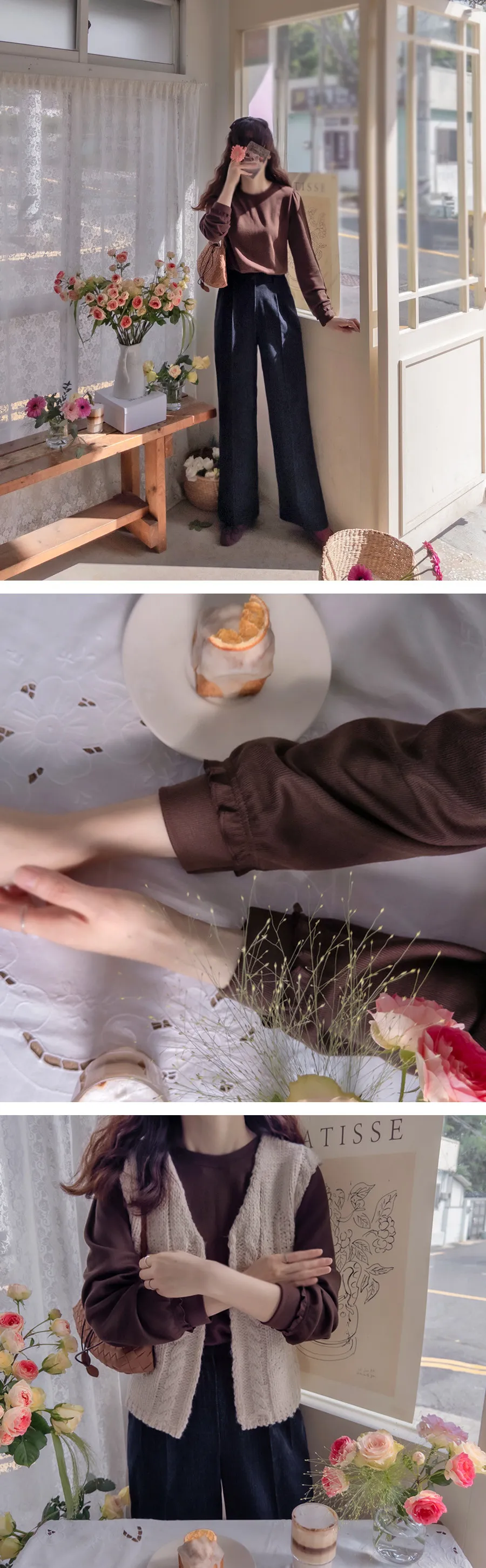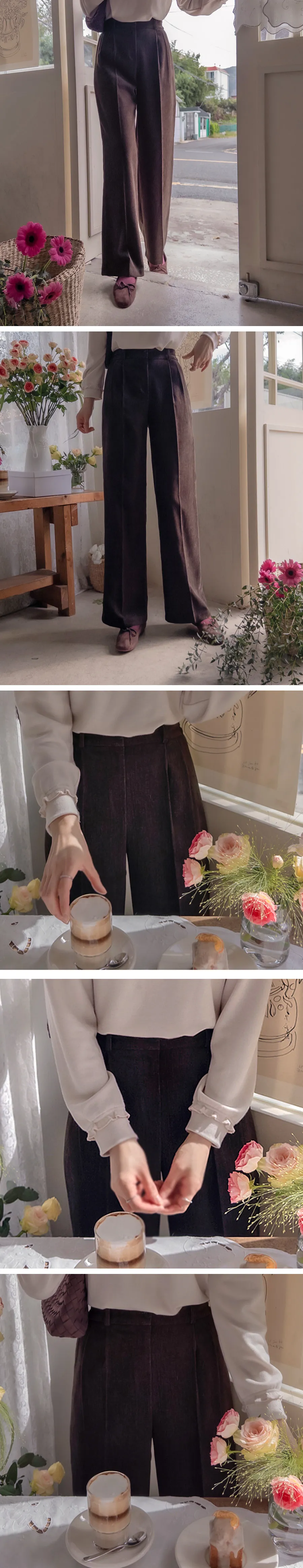 【腰部兩側有部分彈性收腰設計】 【柔軟有彈性、溫暖舒適的面料,外層為拉絨面料】 【修身版型,時尚的雙褶布料】