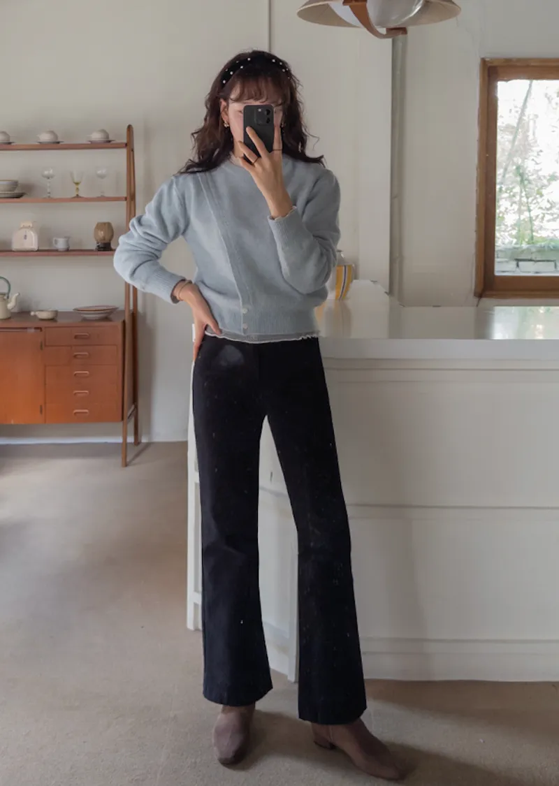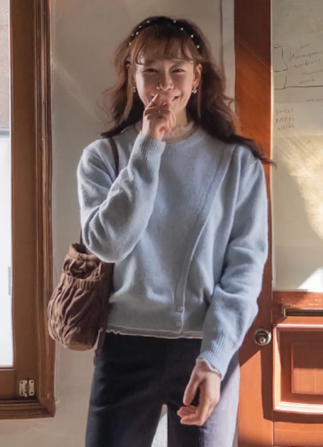 獨特斜線鈕扣設計舒適針織上衣