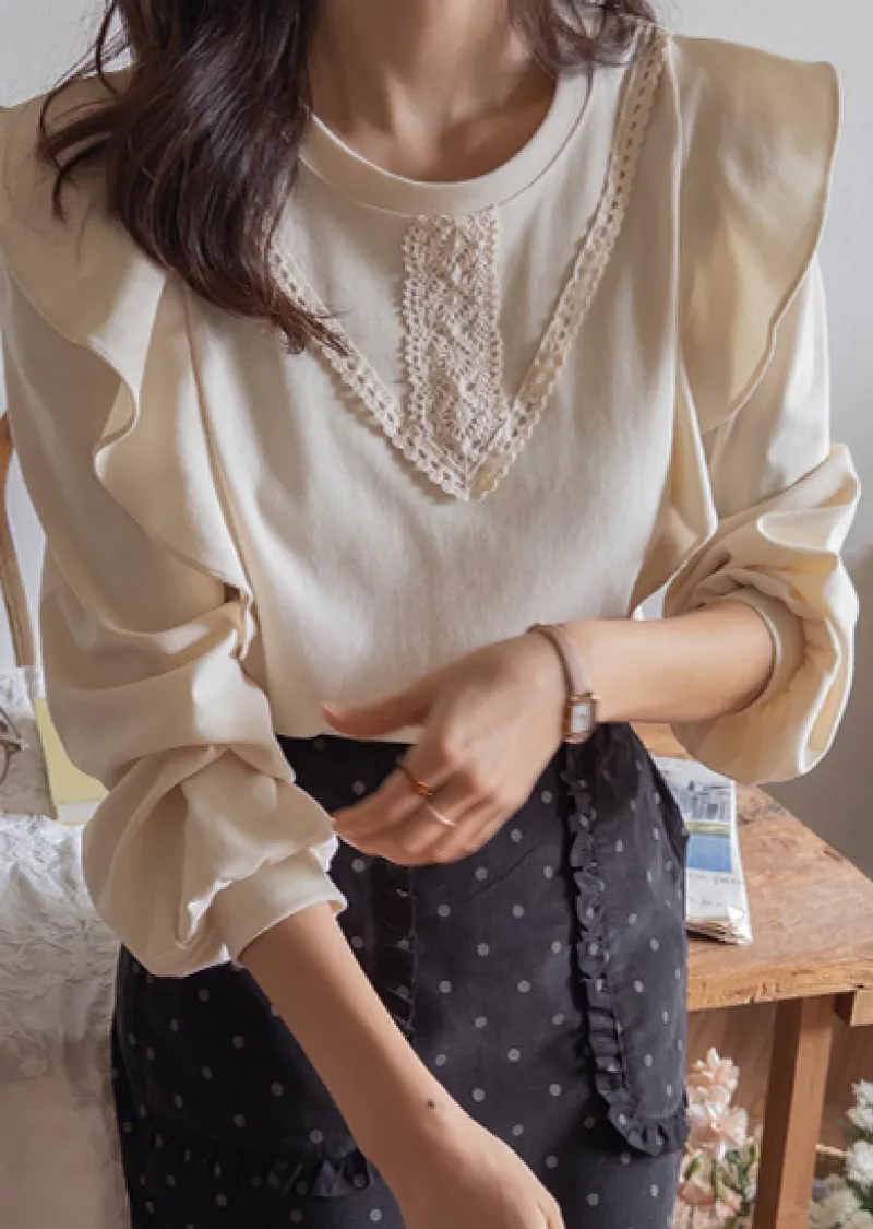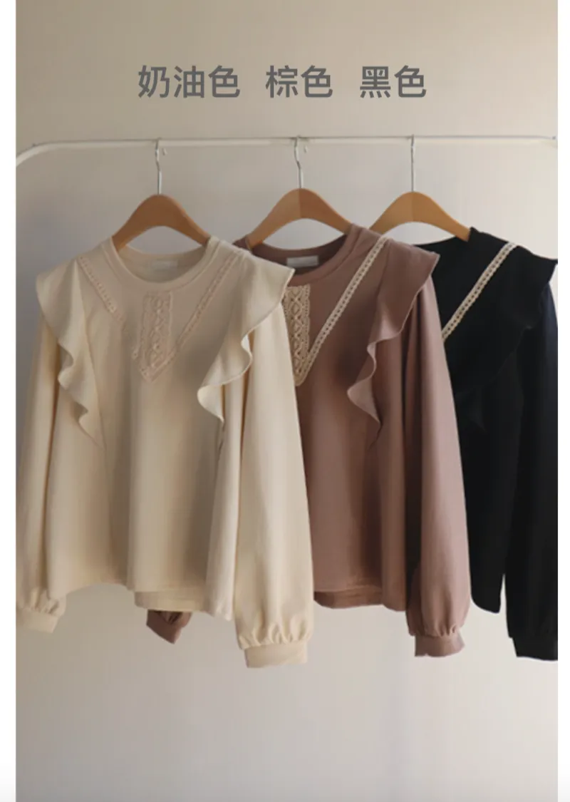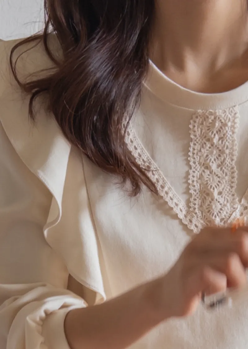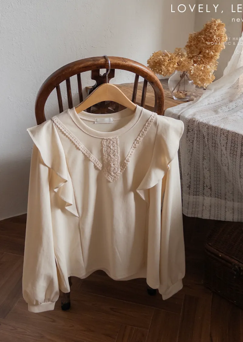 柔美輪廓荷葉摺邊點綴蕾絲舒適上衣