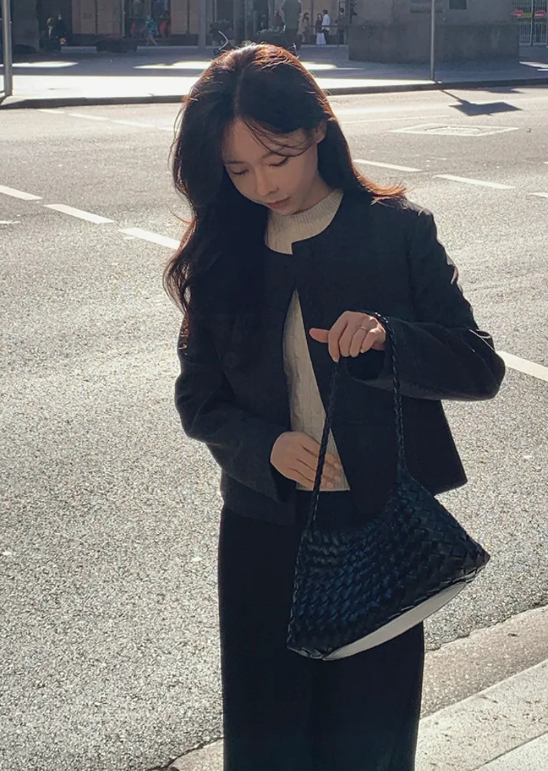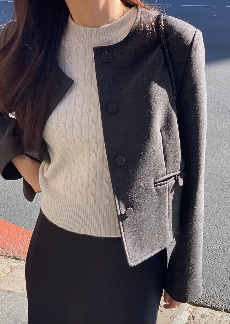 而與外套採用相同面料製成的鈕扣帶則增添了