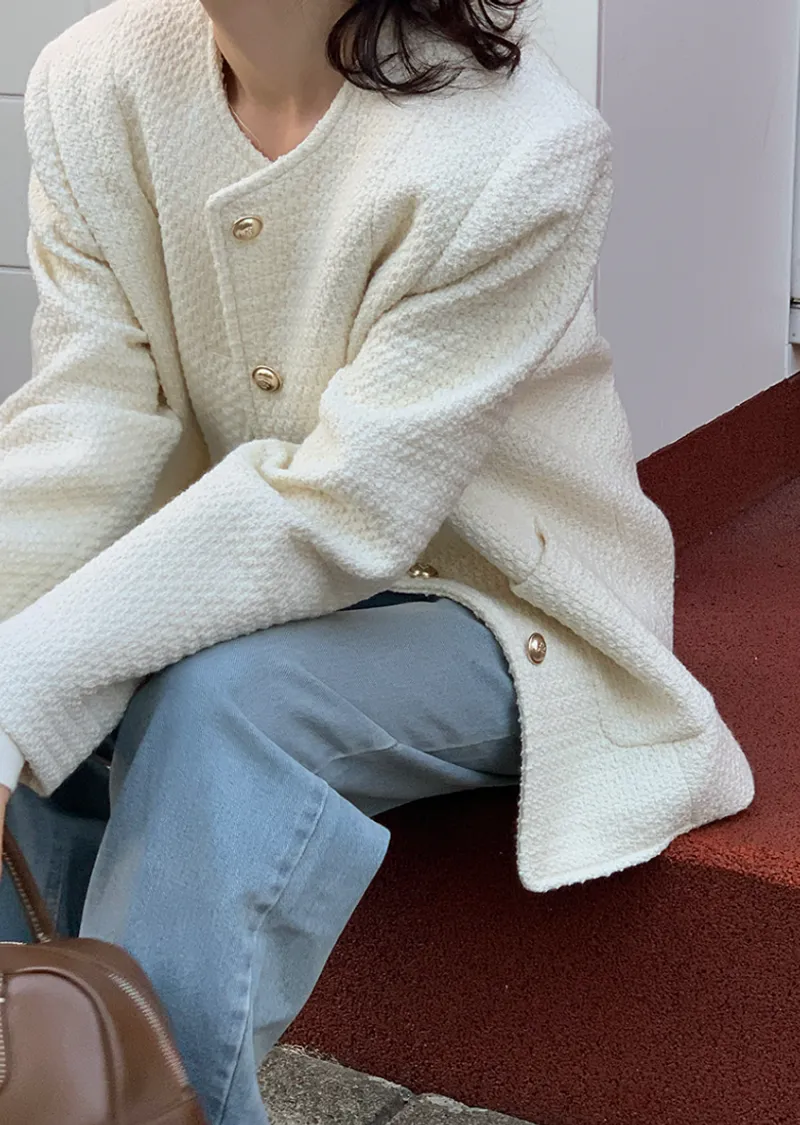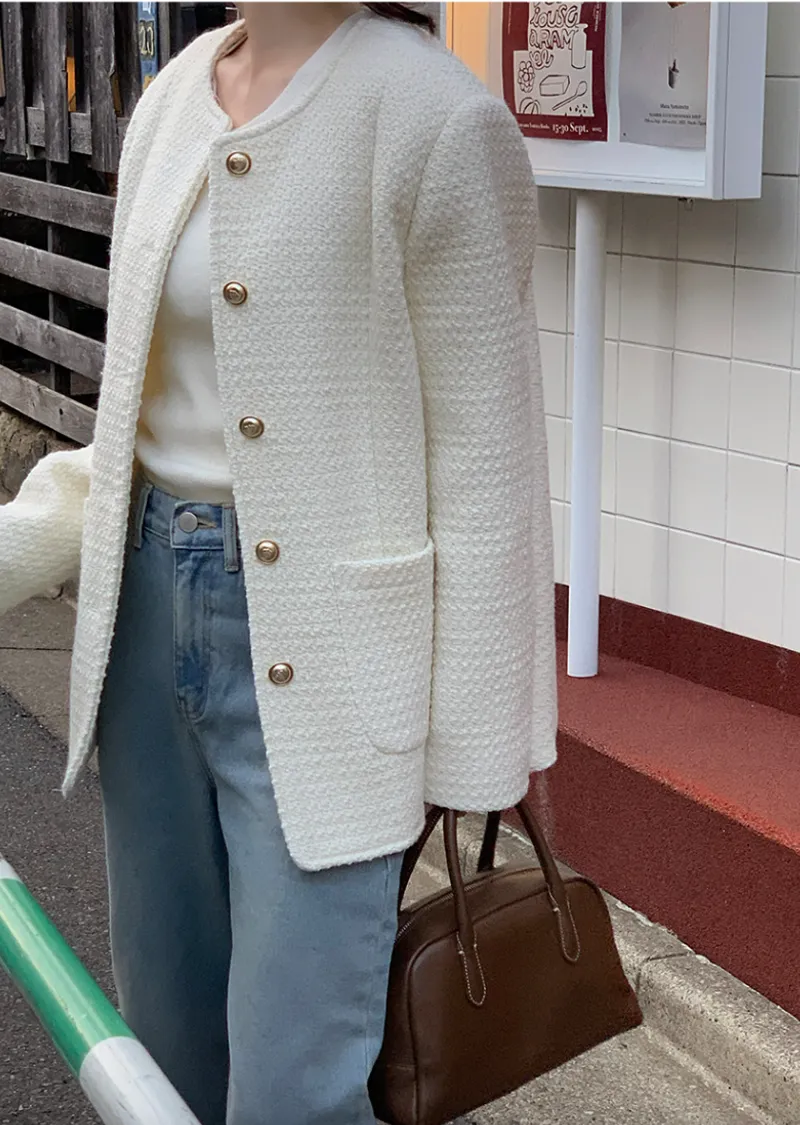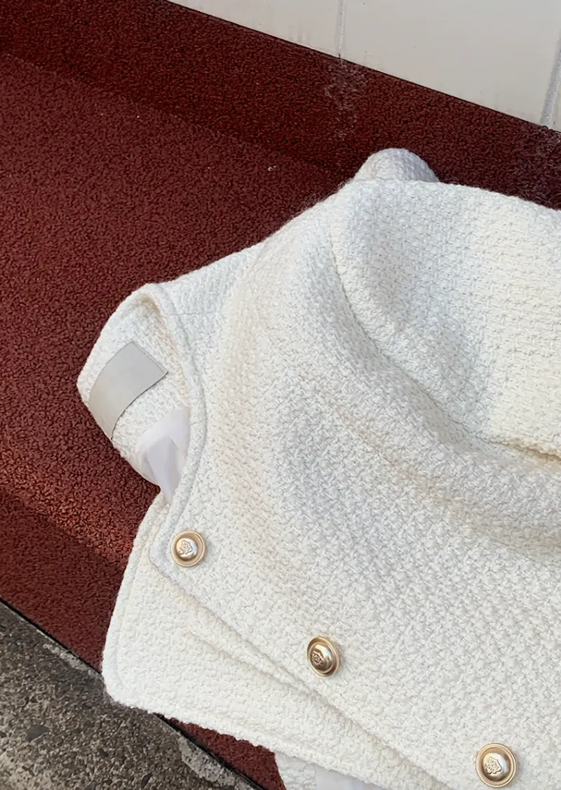 奢華精緻氛圍點綴金色鈕扣花呢外套