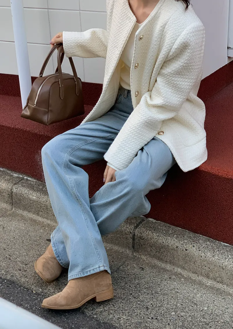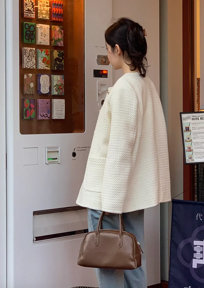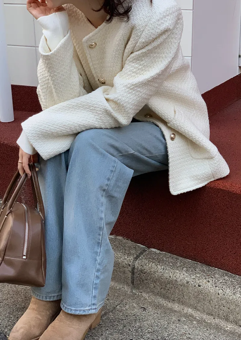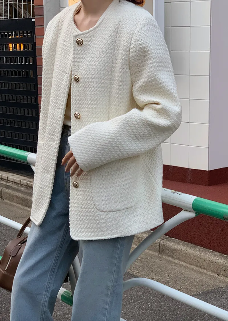 奢華精緻氛圍點綴金色鈕扣花呢外套