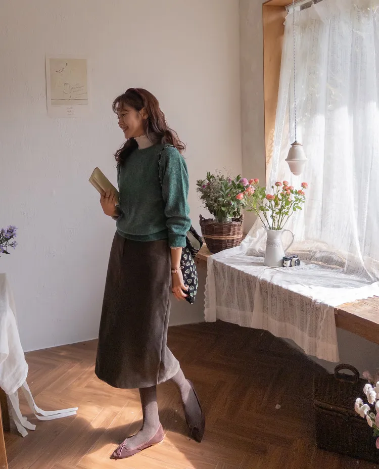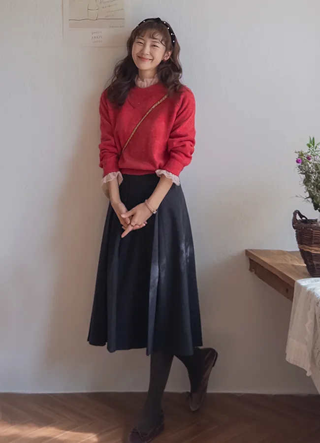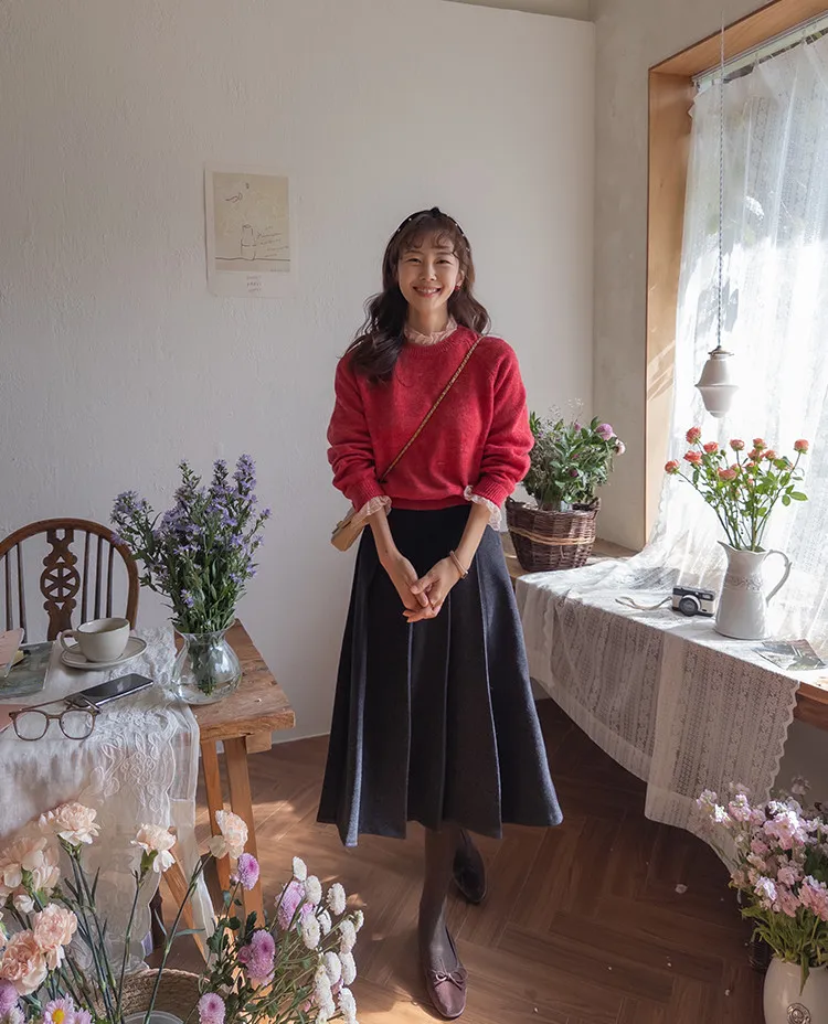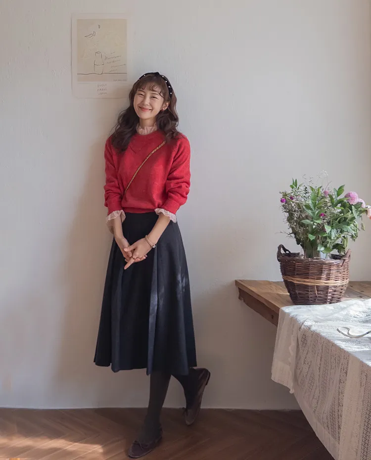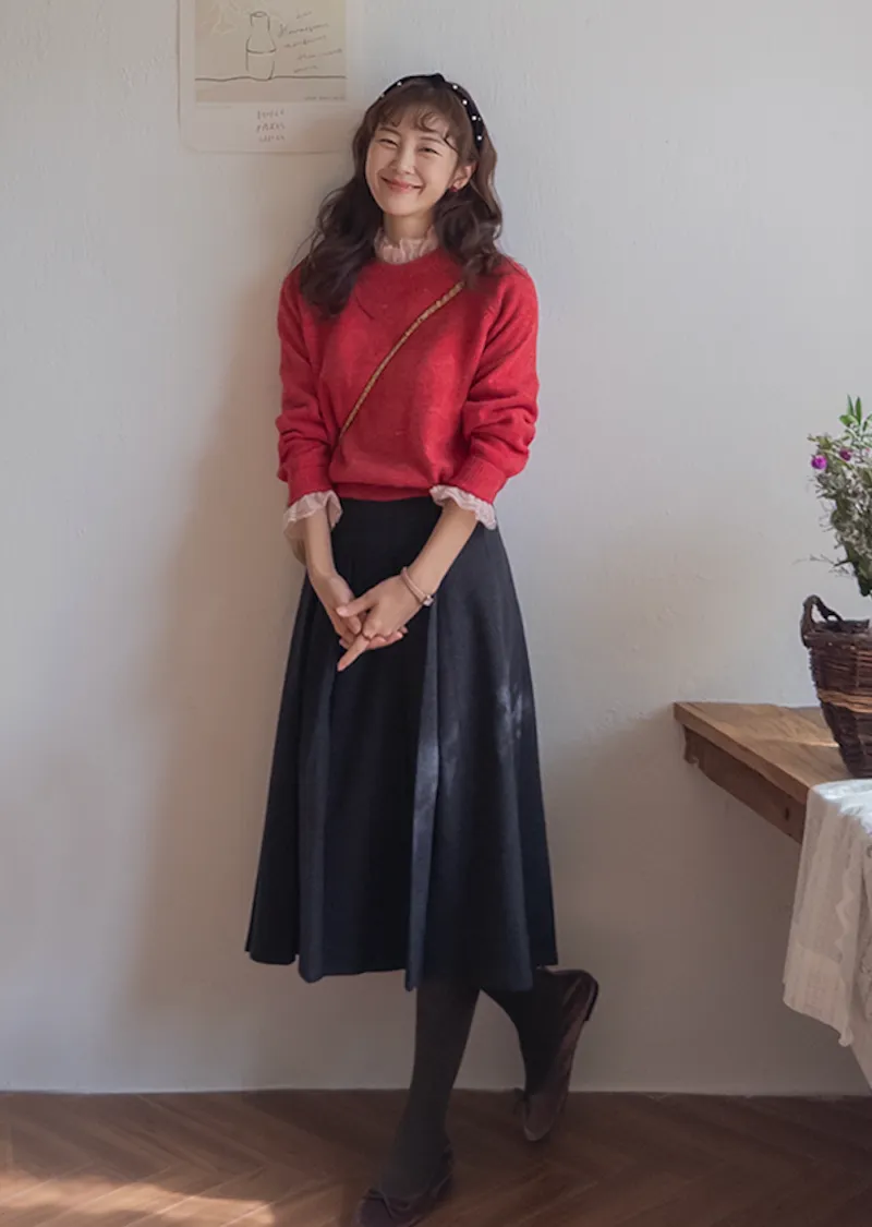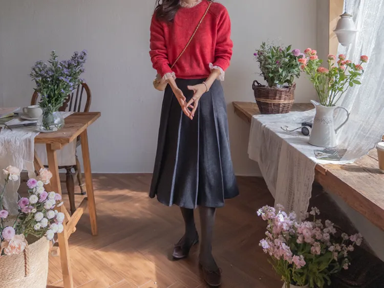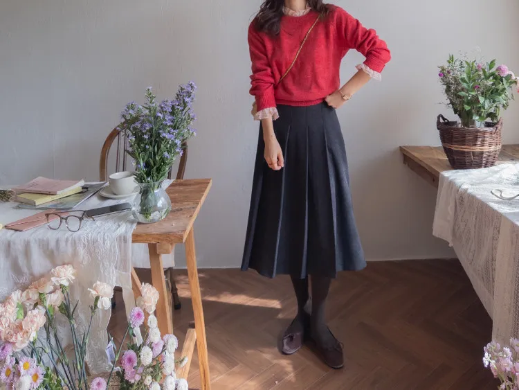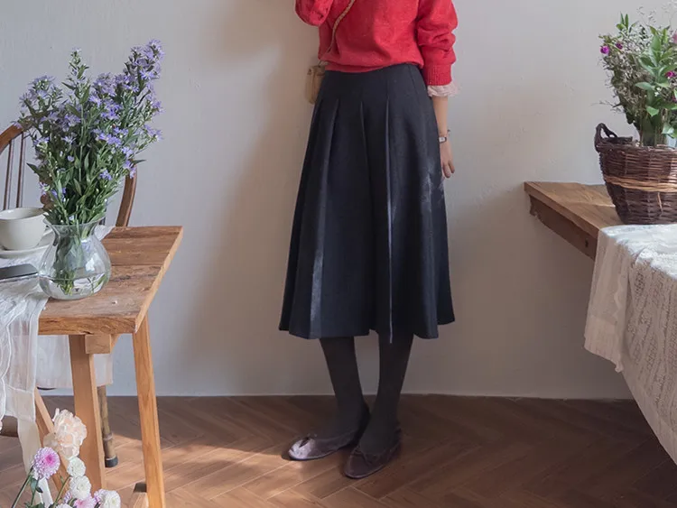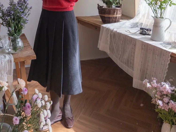 迷人冬季沉穩魅力百褶傘擺中長裙