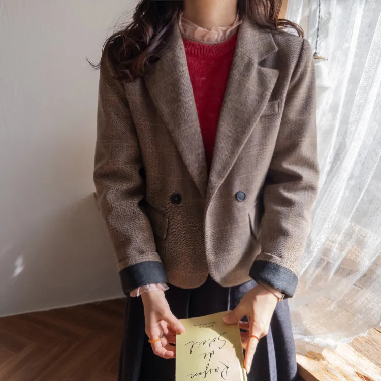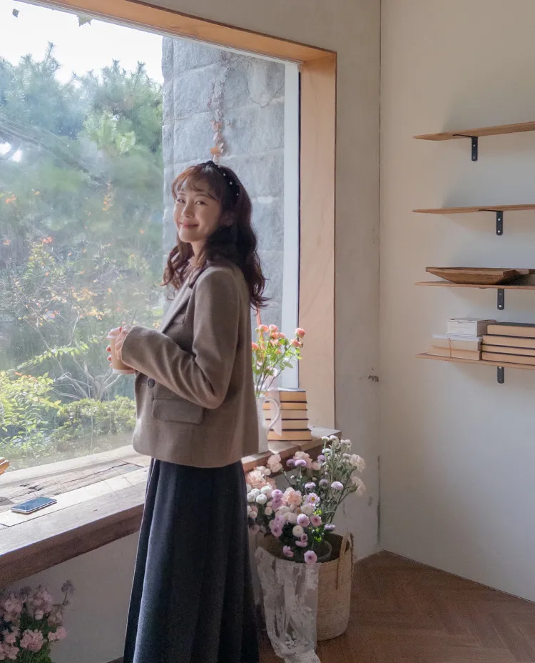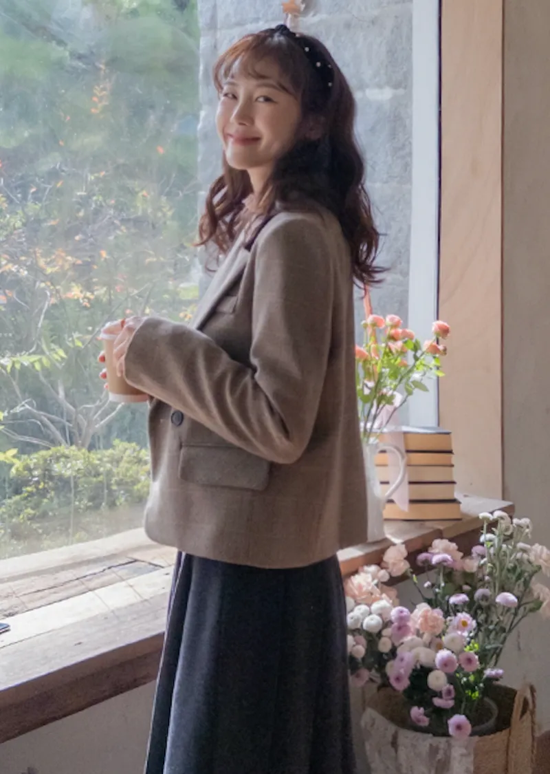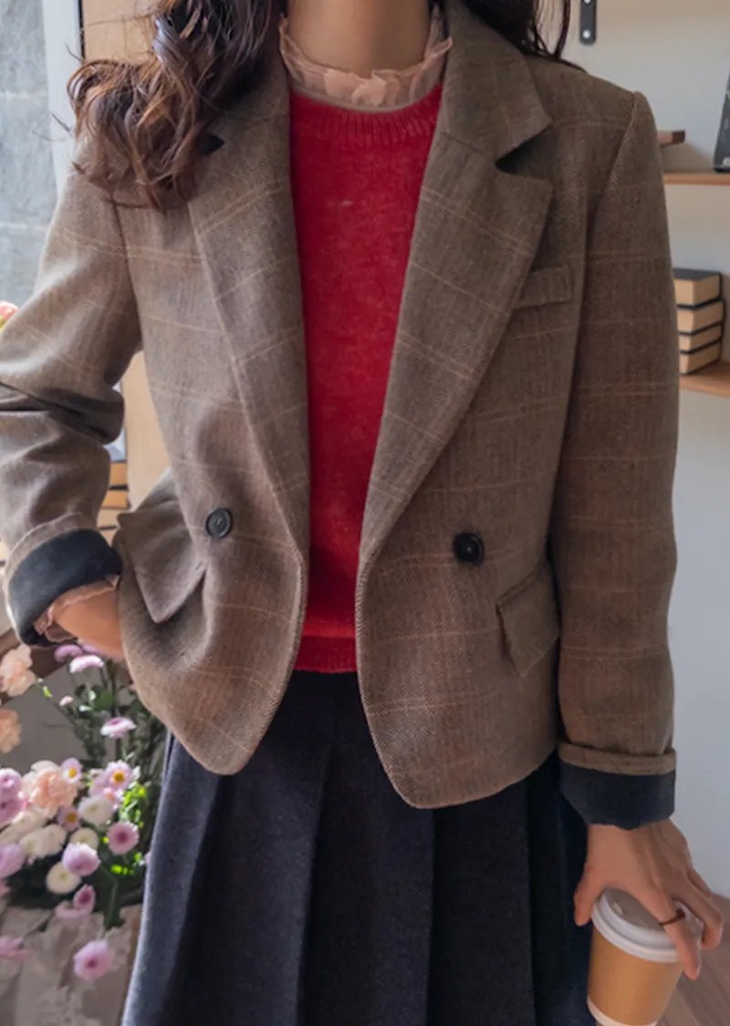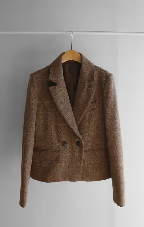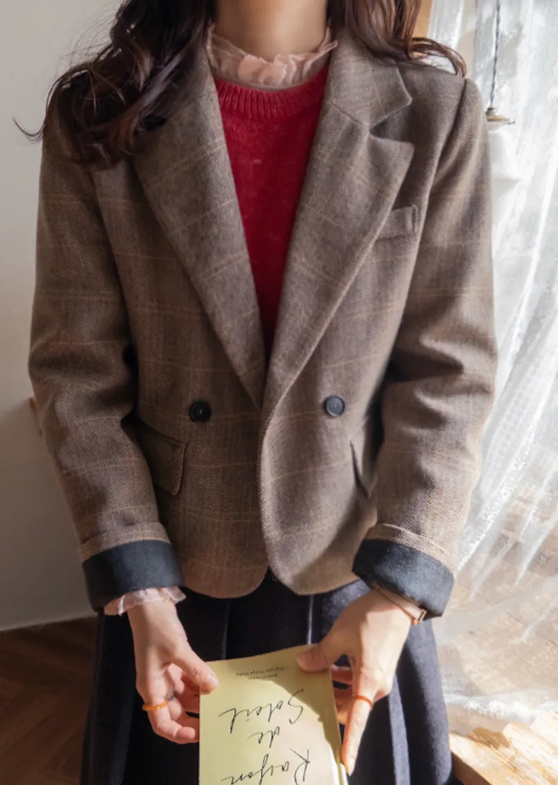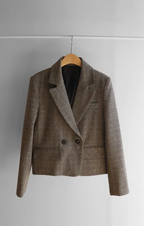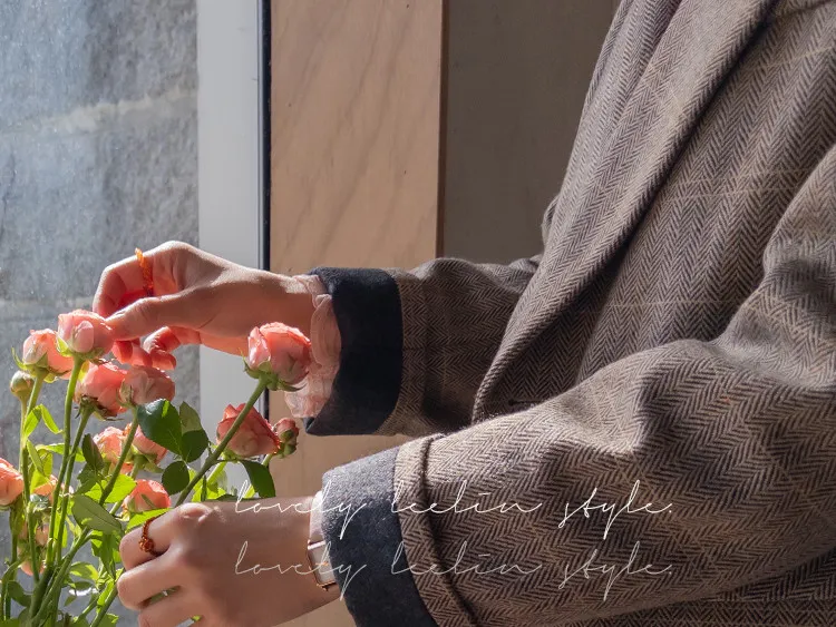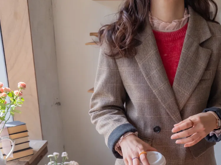 【適合整個冬天的羊毛混紡面料~♥】【長度蓋過臀部,與褲子/裙子都很搭配^^】【感性人字紋圖案,更顯精緻氣質~】【雙紐扣設計,更加穩重~】