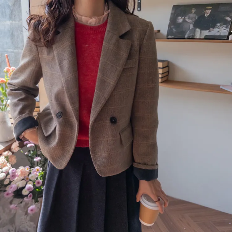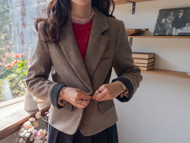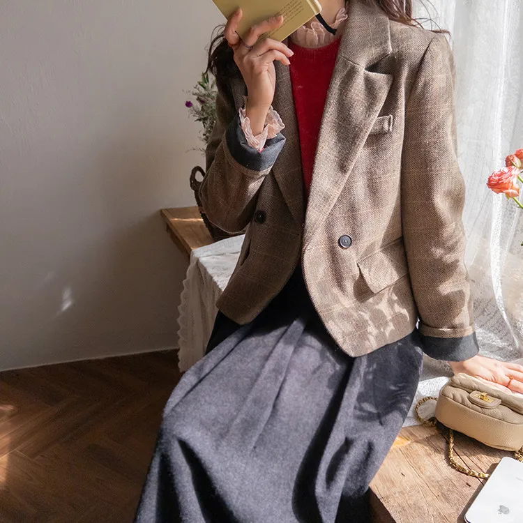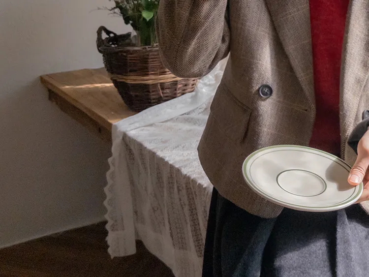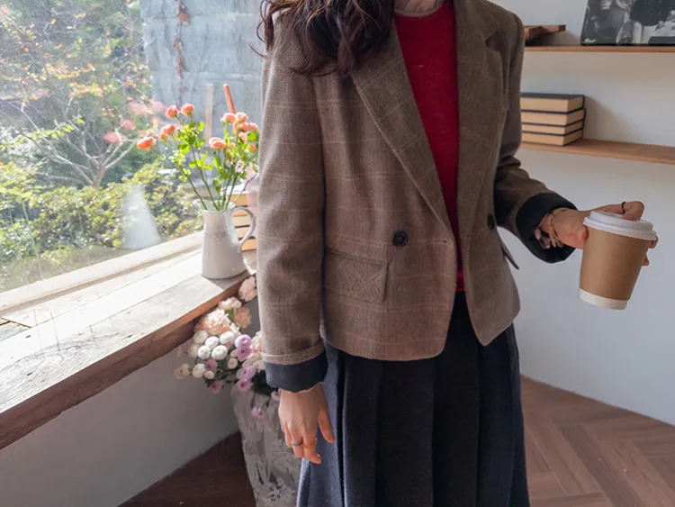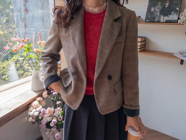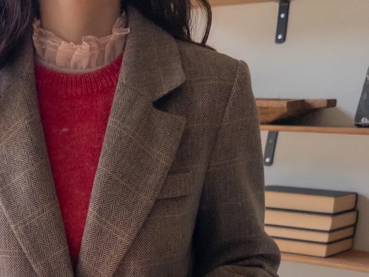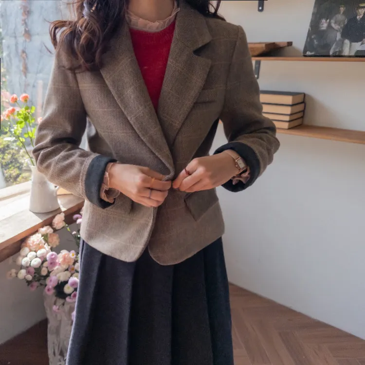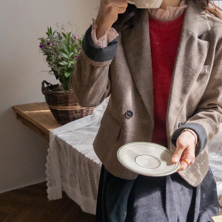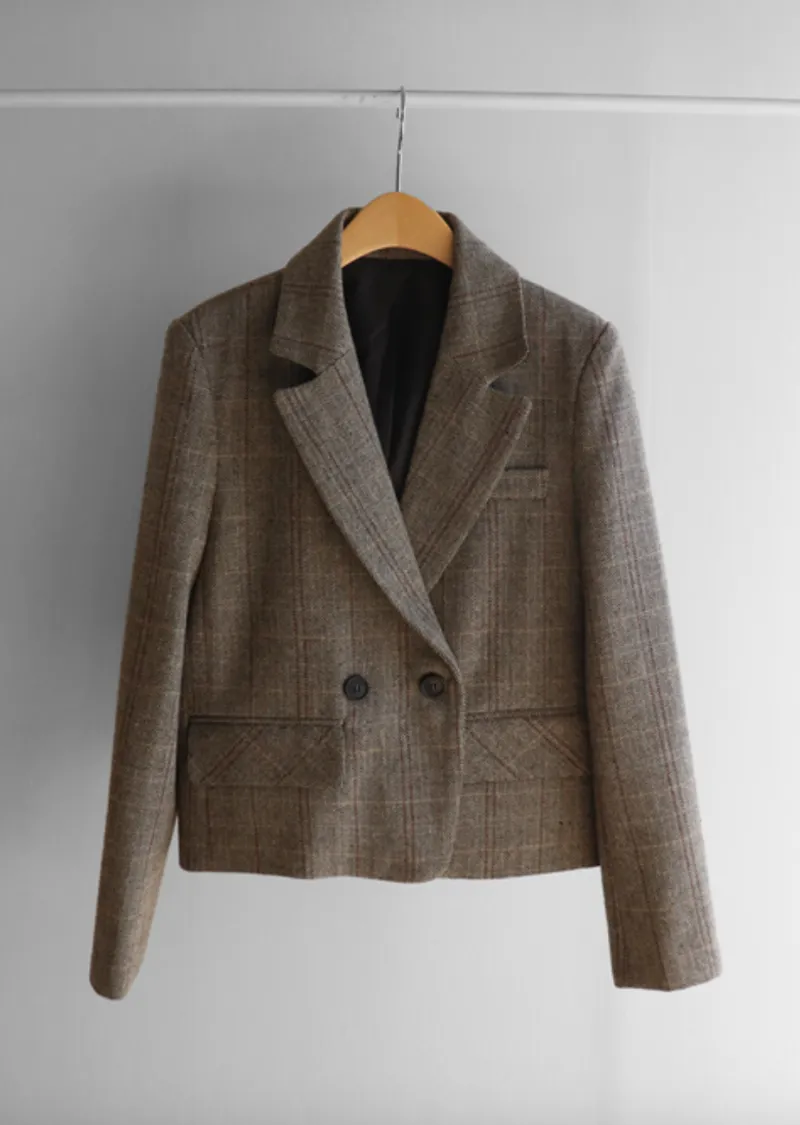 【適合整個冬天的羊毛混紡面料~♥】【長度蓋過臀部,與褲子/裙子都很搭配^^】【感性人字紋圖案,更顯精緻氣質~】【雙紐扣設計,更加穩重~】