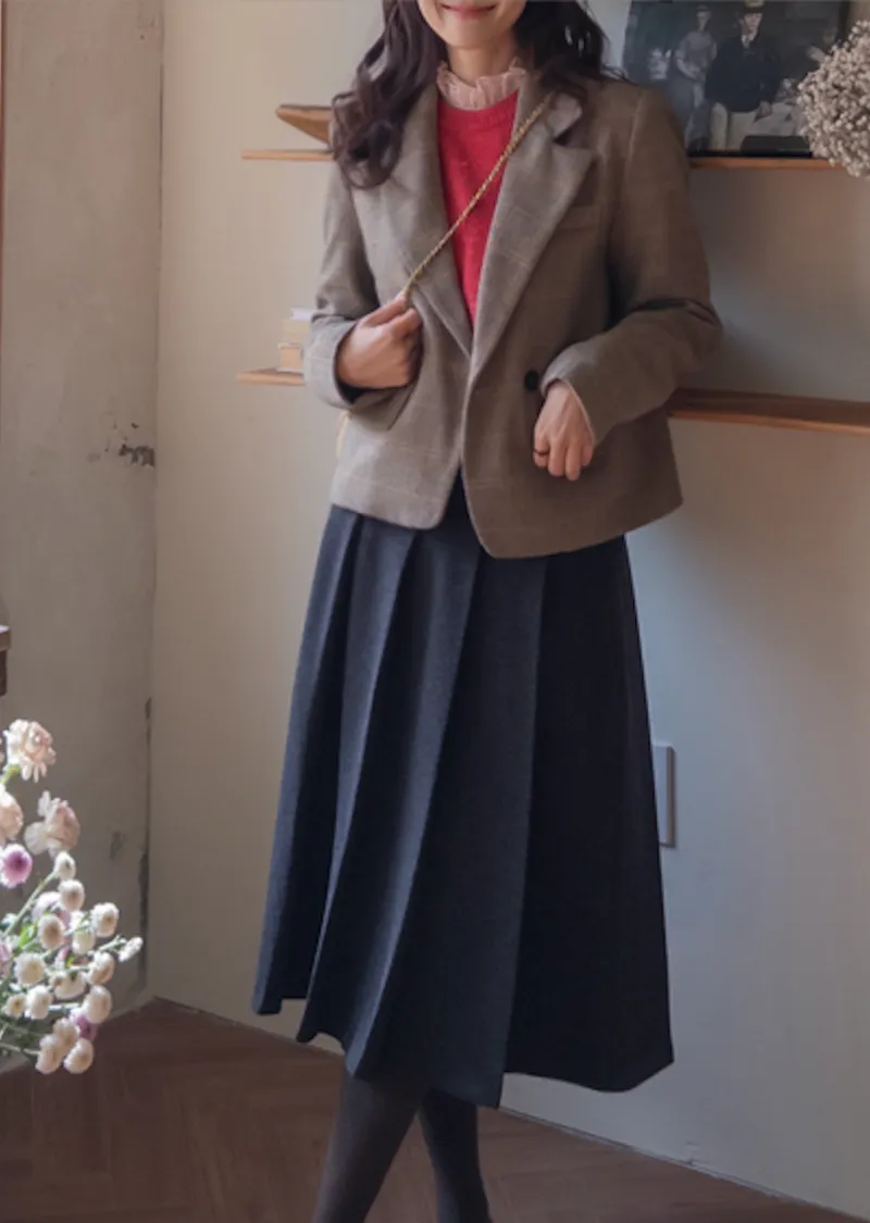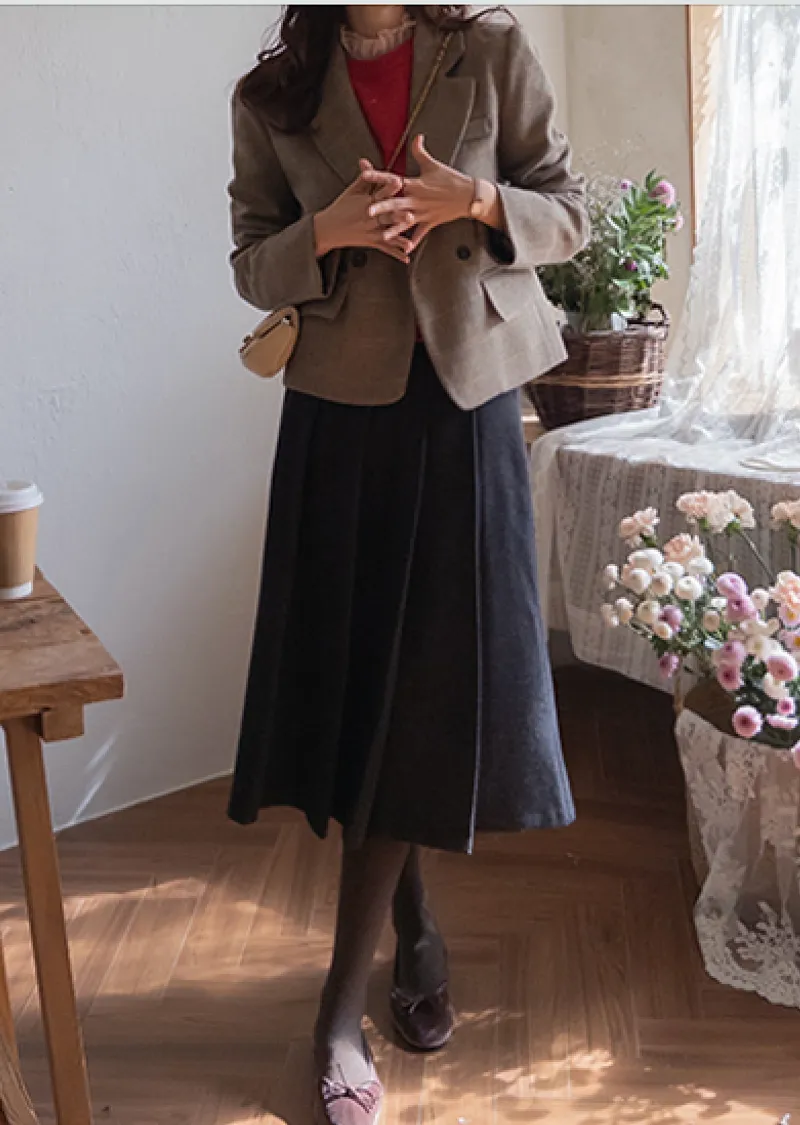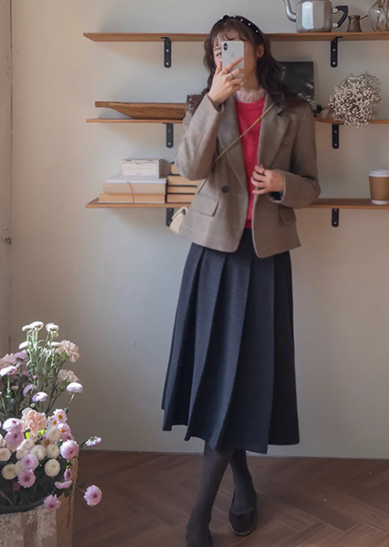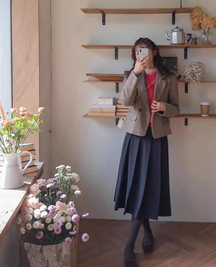 迷人冬季沉穩魅力百褶傘擺中長裙