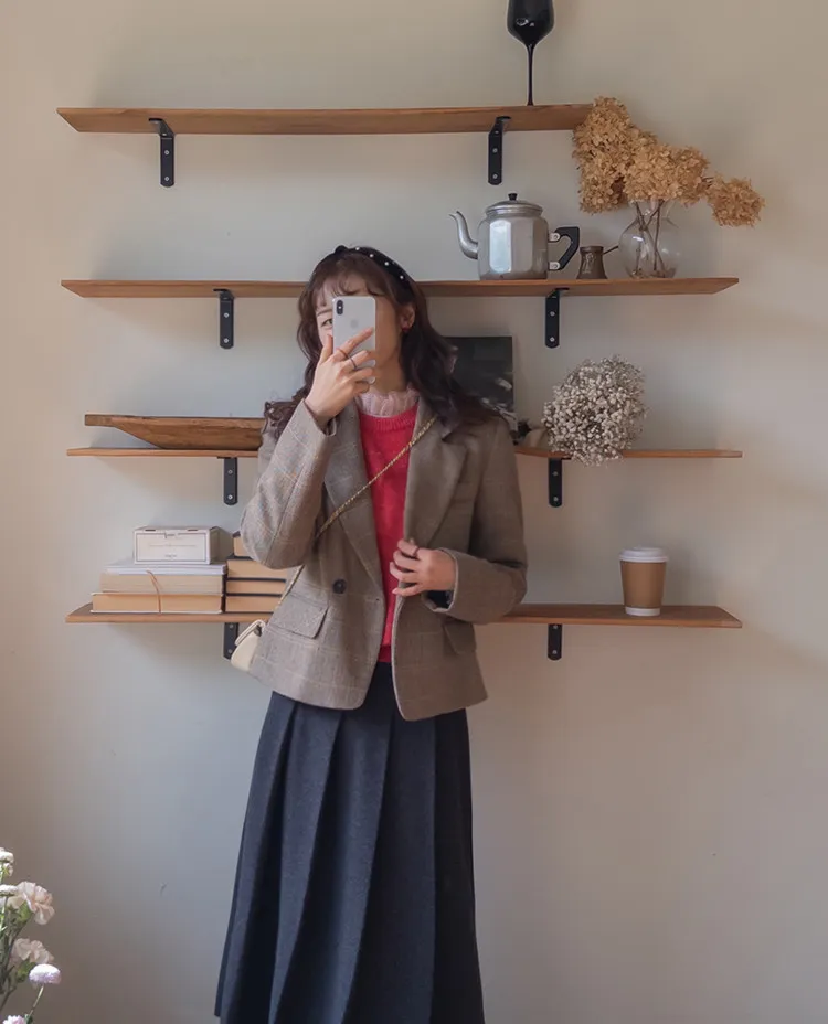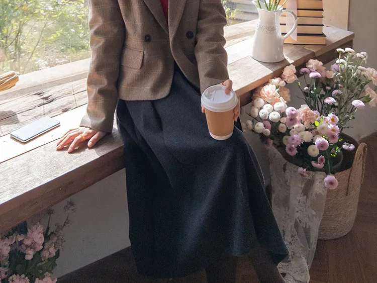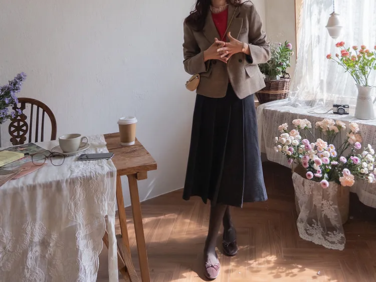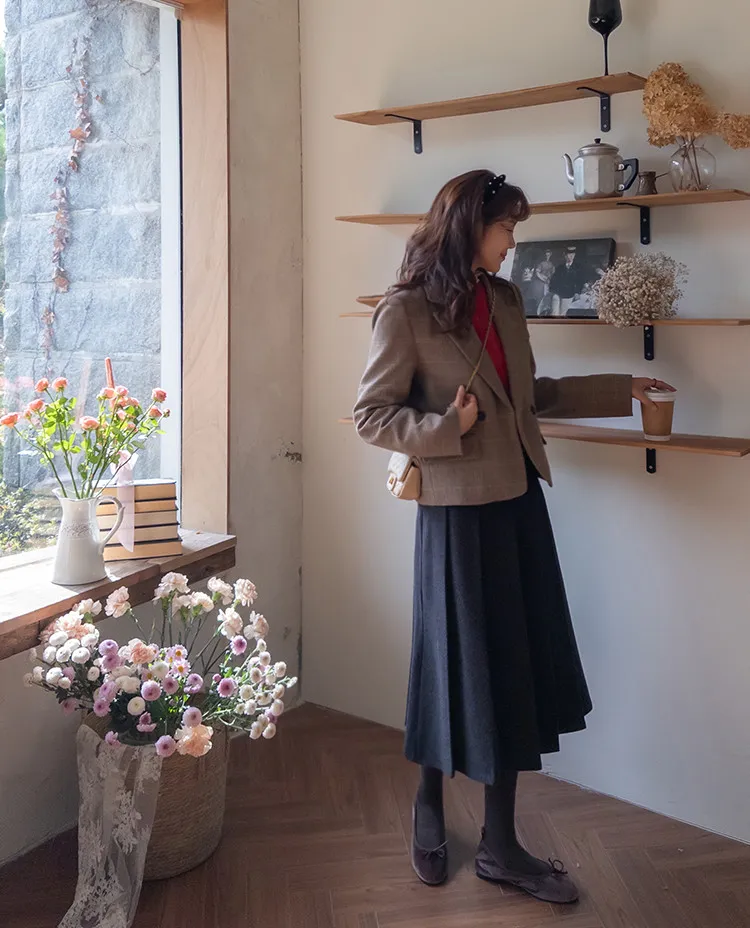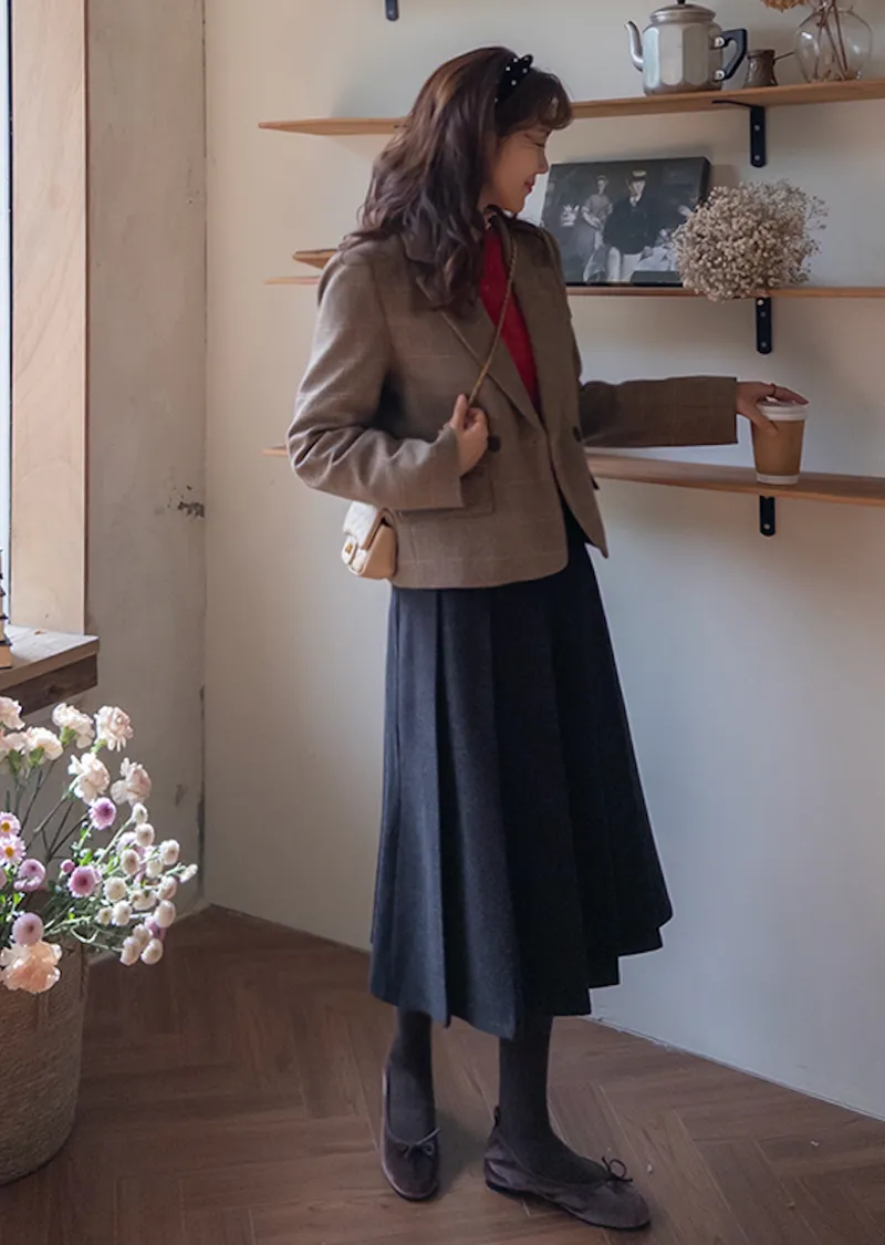 迷人冬季沉穩魅力百褶傘擺中長裙
