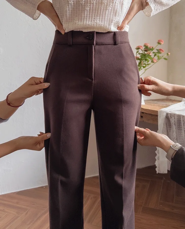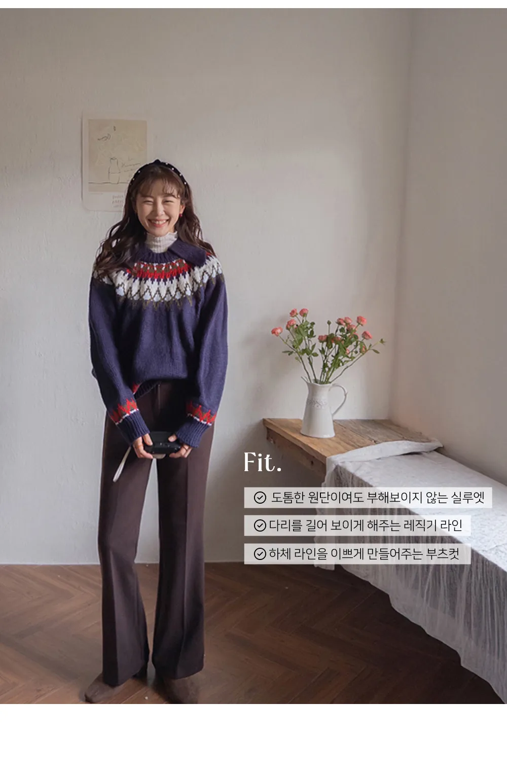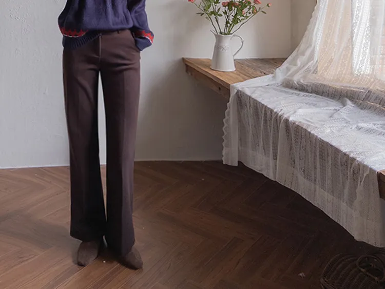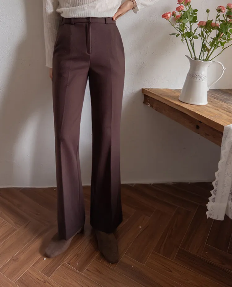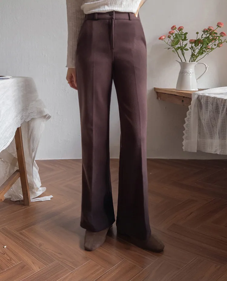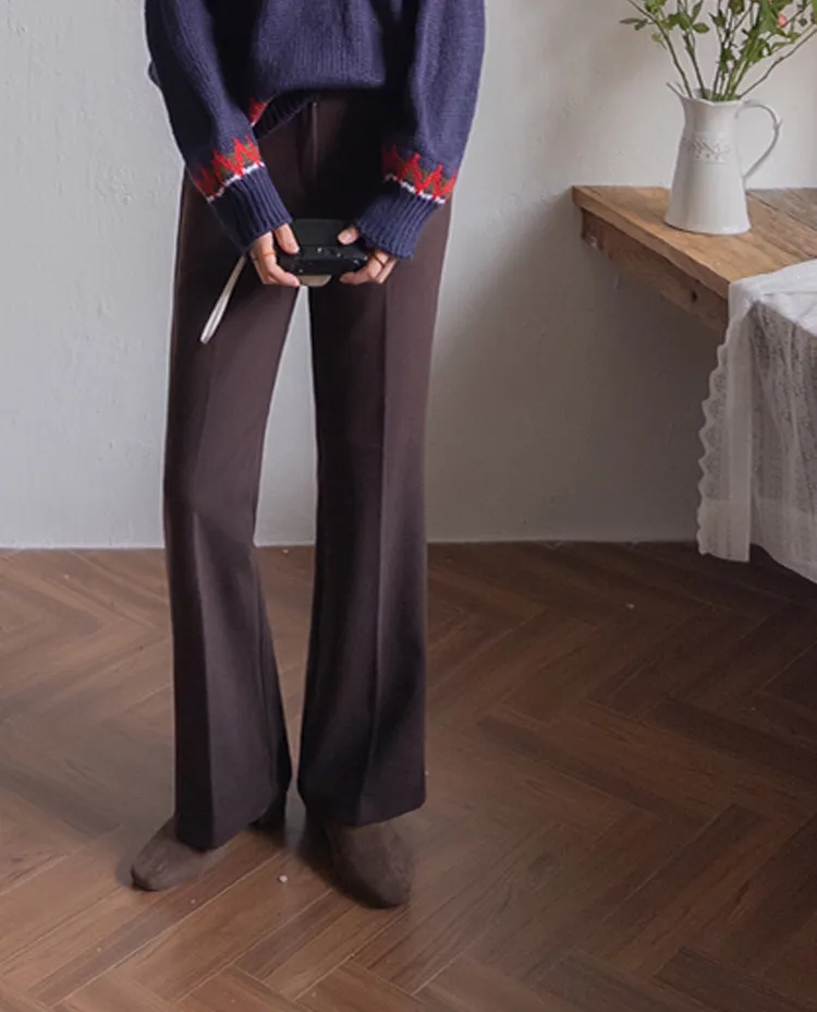 俐落線條彈性舒適保暖修身靴型剪裁休閒褲