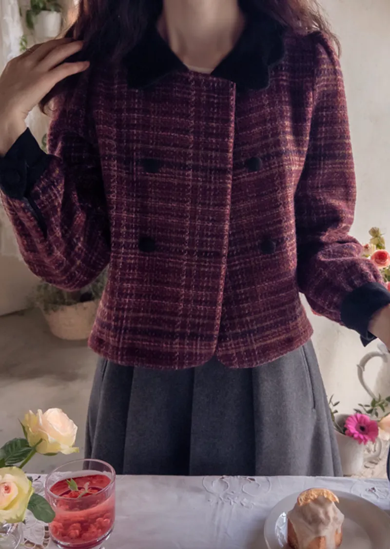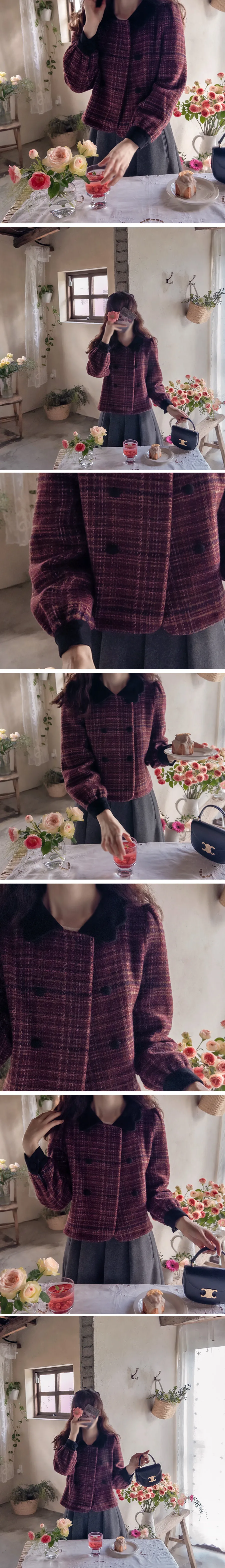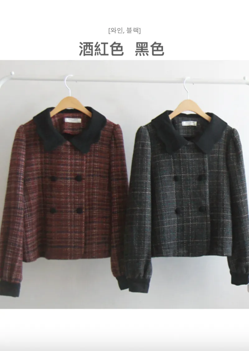 【時尚花呢外套,色彩繽紛,充滿個性】【微妙的波浪形領口營造出優雅奢華氛圍】【雙扣設計也是一大亮點】【推薦可愛百搭的花呢外套】【搭配穿著,輕鬆打造完美造型】