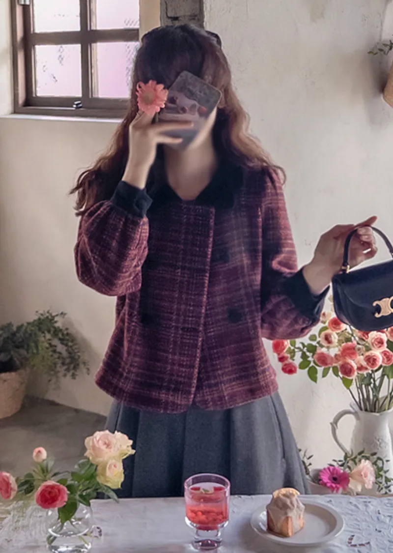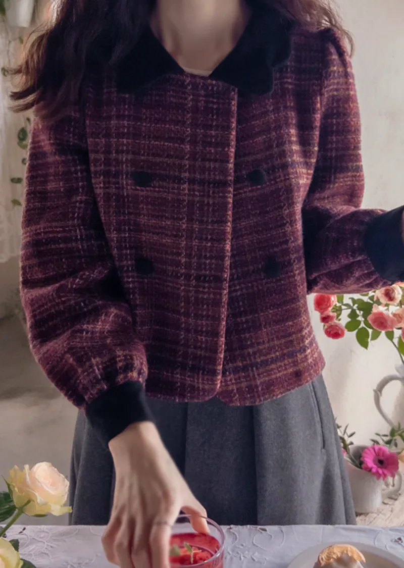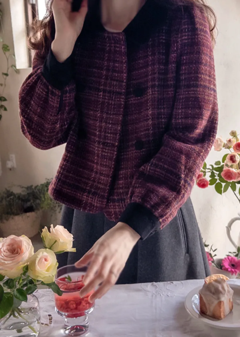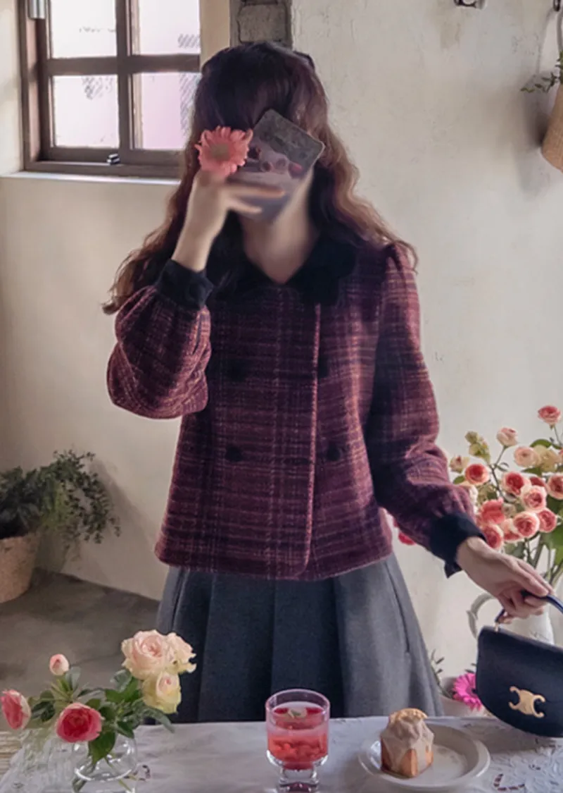 【時尚花呢外套,色彩繽紛,充滿個性】【微妙的波浪形領口營造出優雅奢華氛圍】【雙扣設計也是一大亮點】【推薦可愛百搭的花呢外套】【搭配穿著,輕鬆打造完美造型】