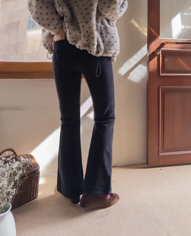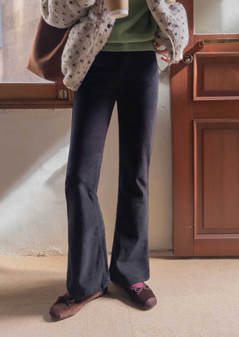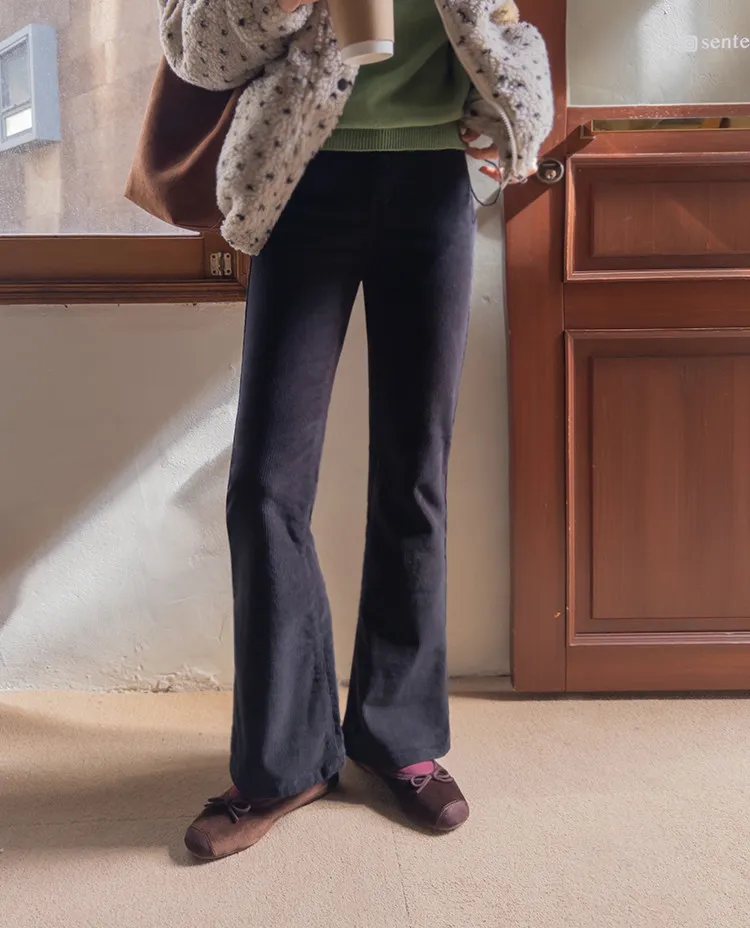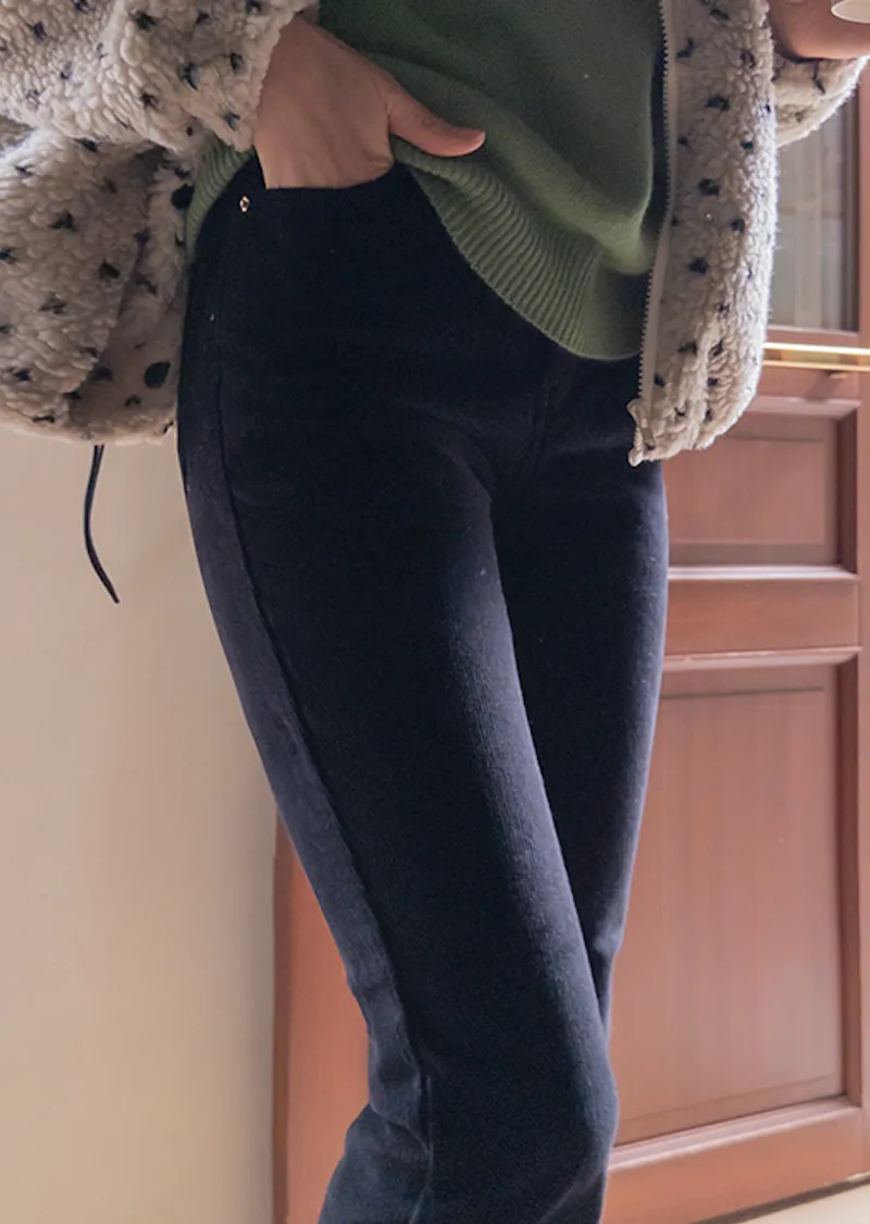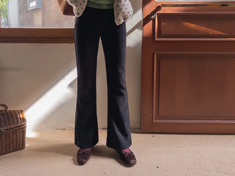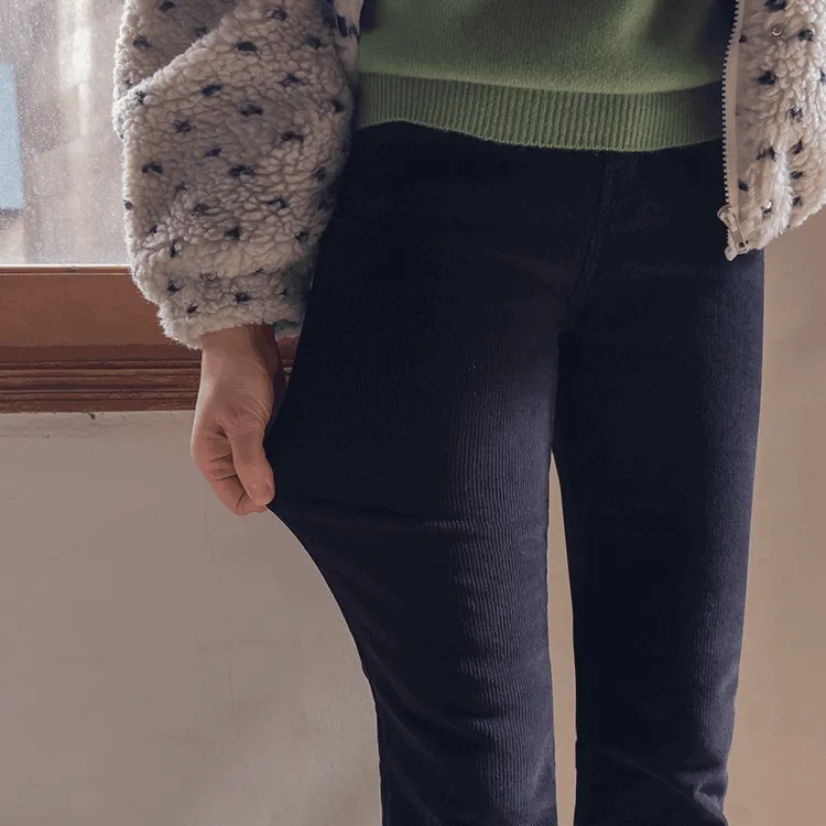 秋冬溫暖隱藏鬆緊舒適靴型剪裁燈芯絨休閒褲