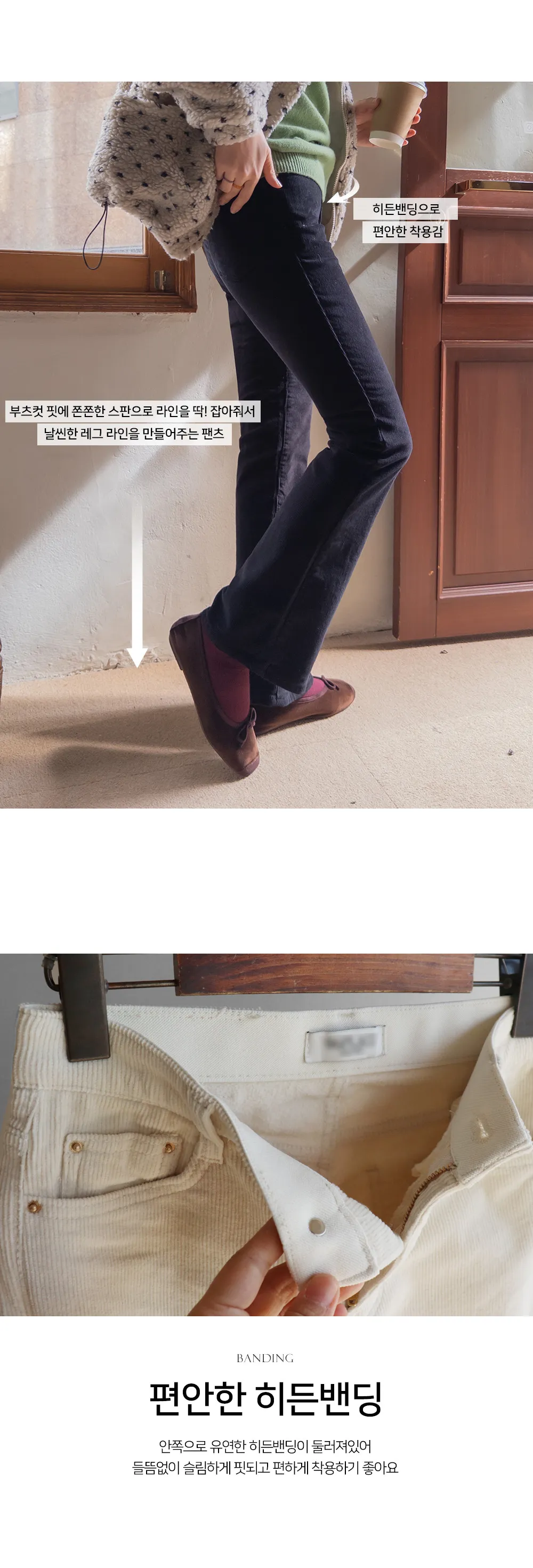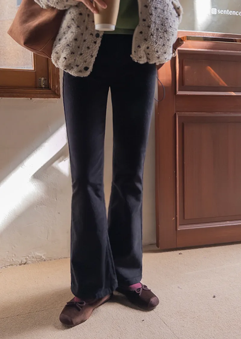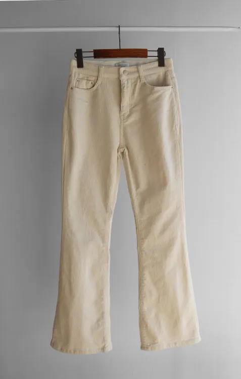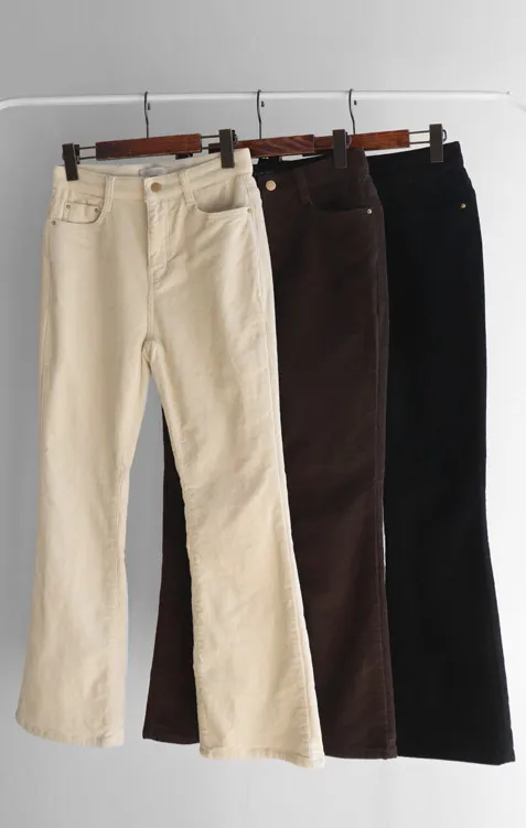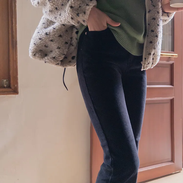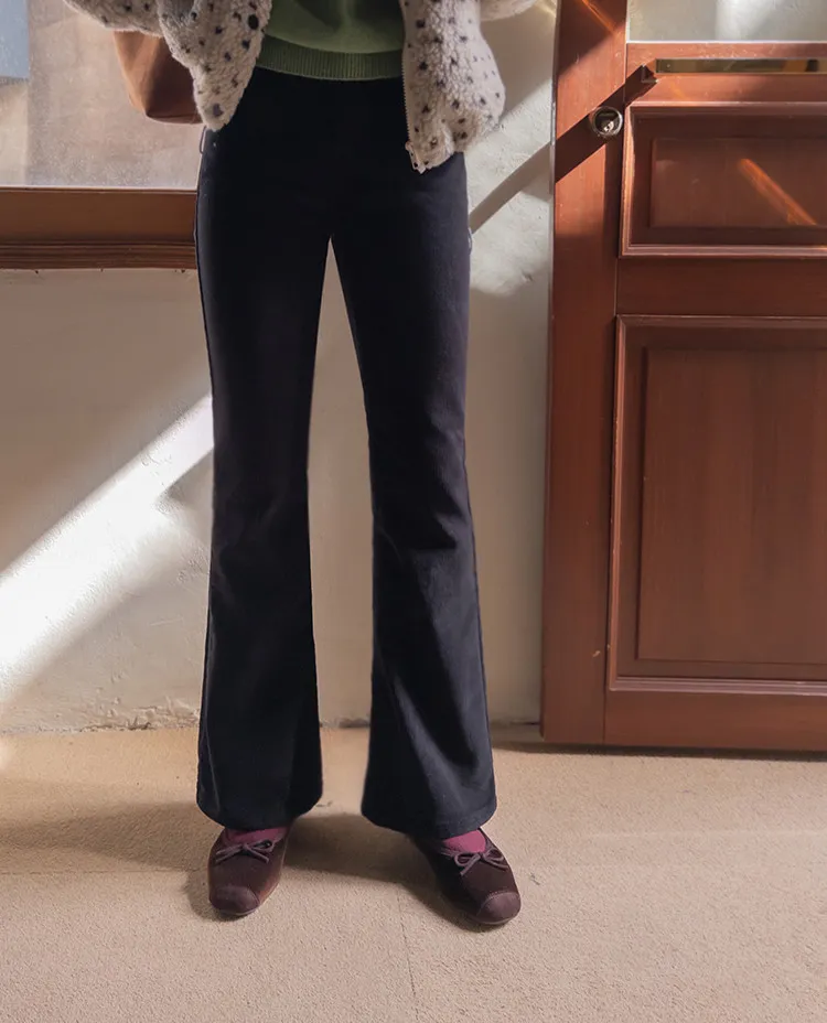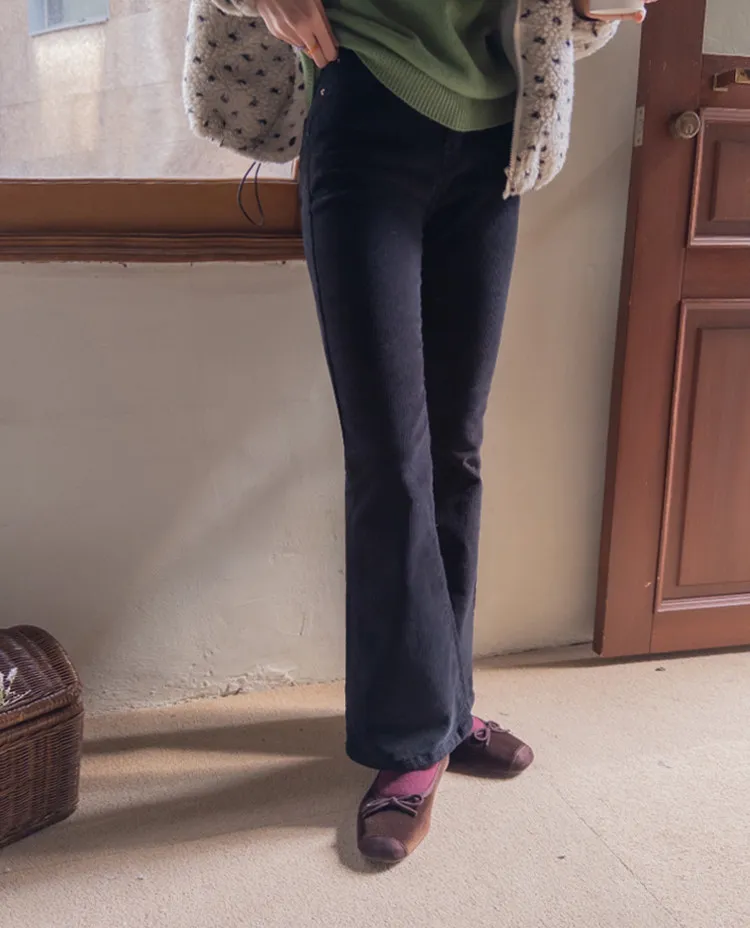 秋冬溫暖隱藏鬆緊舒適靴型剪裁燈芯絨休閒褲