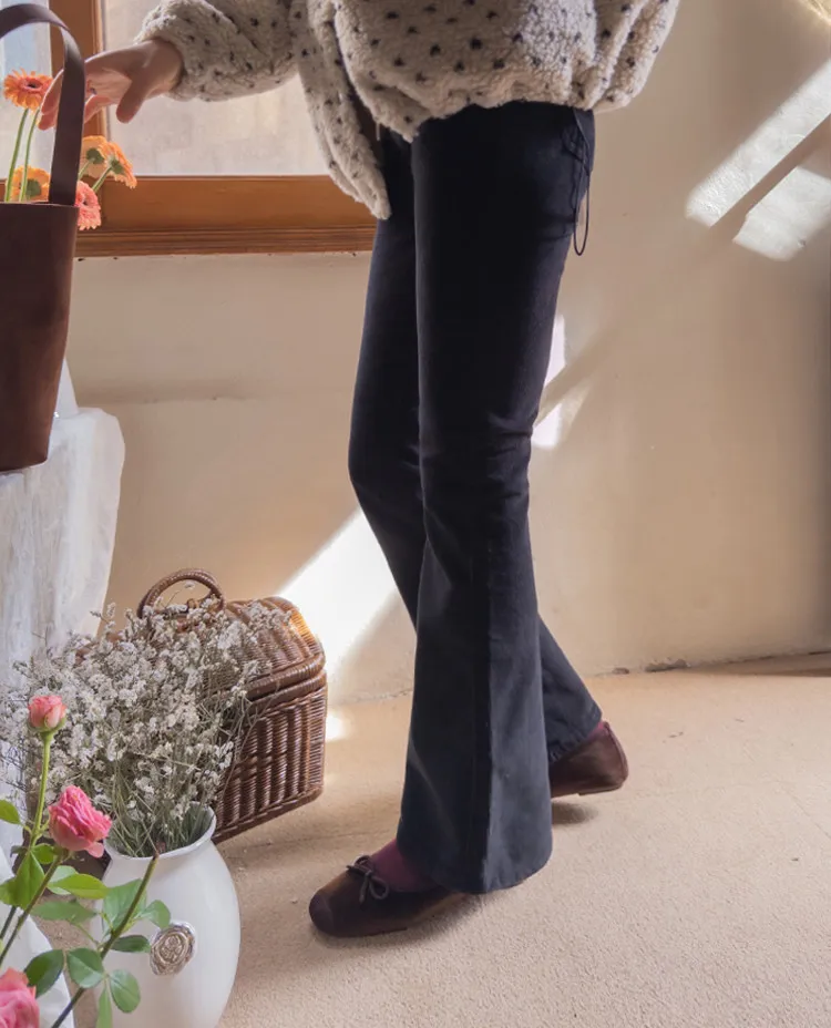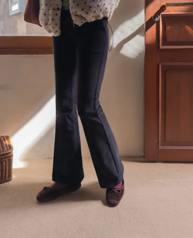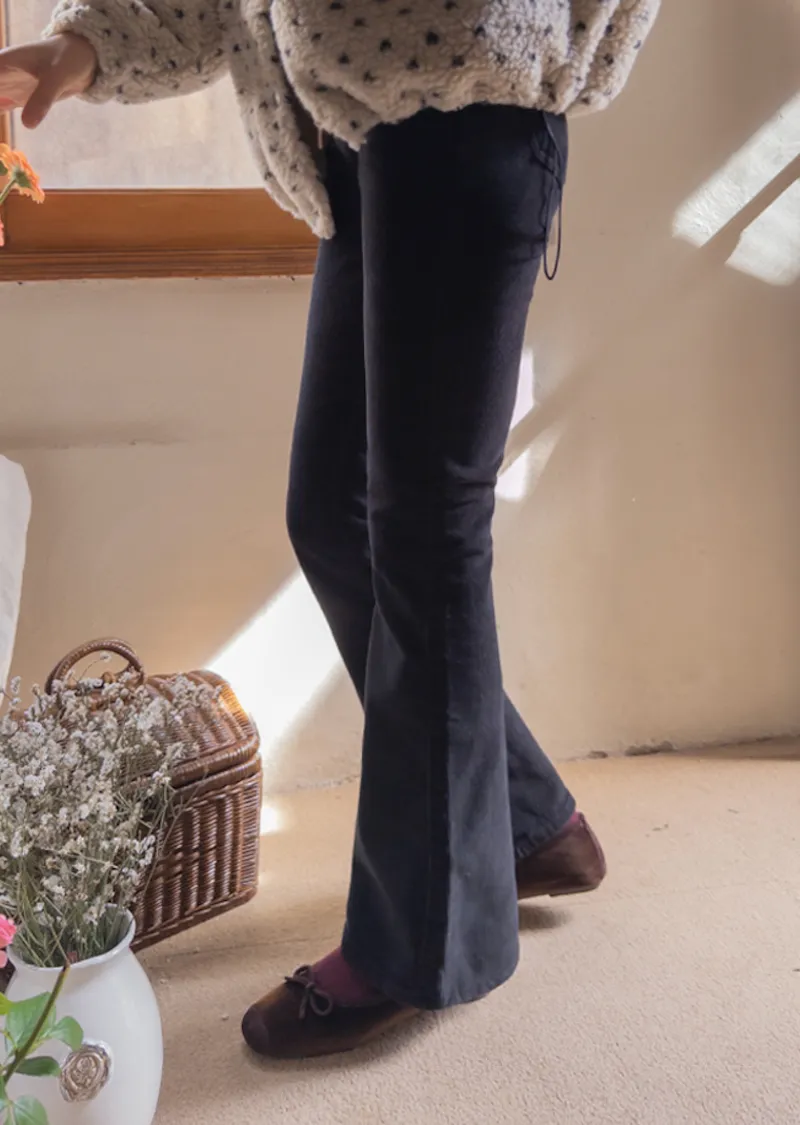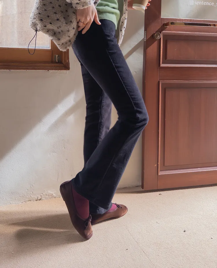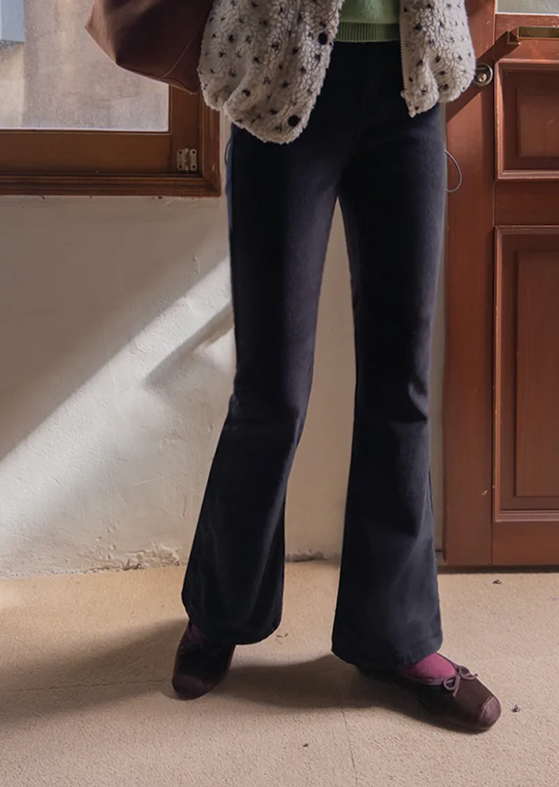 秋冬溫暖隱藏鬆緊舒適靴型剪裁燈芯絨休閒褲