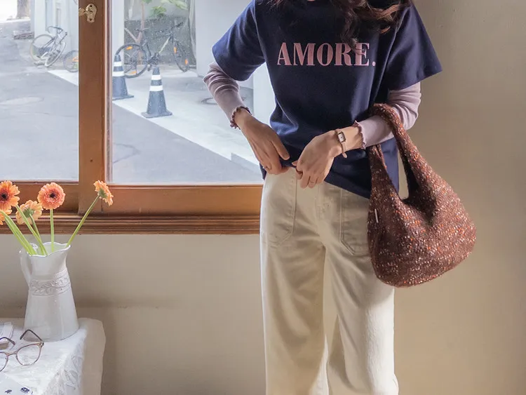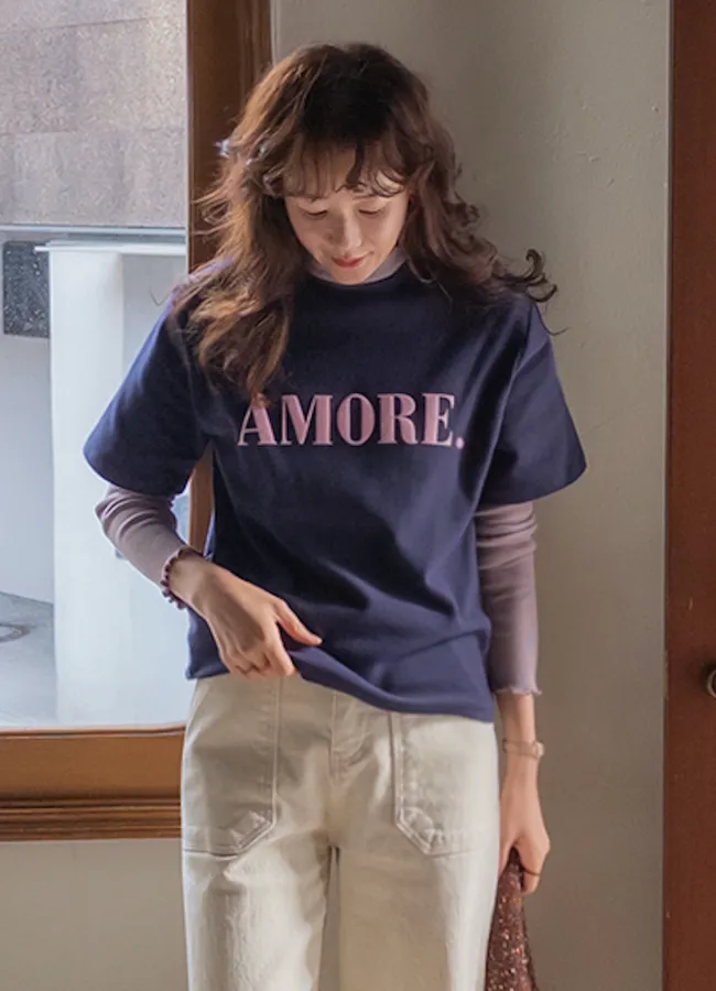 立體感天鵝絨字母彈性舒適保暖絨質短袖上衣