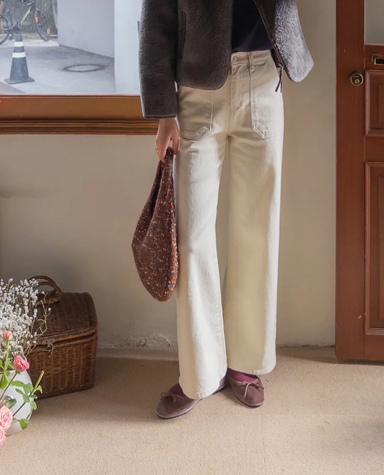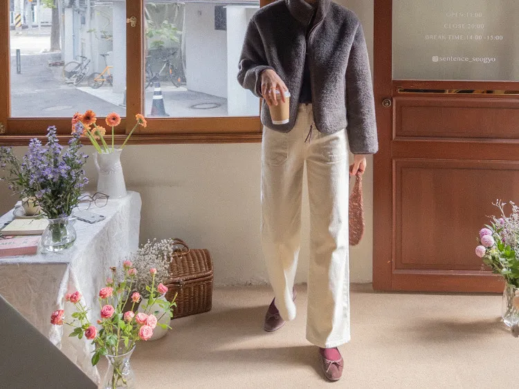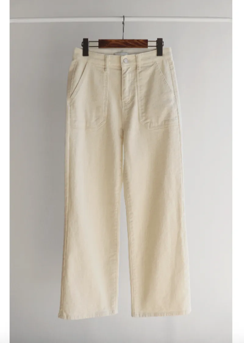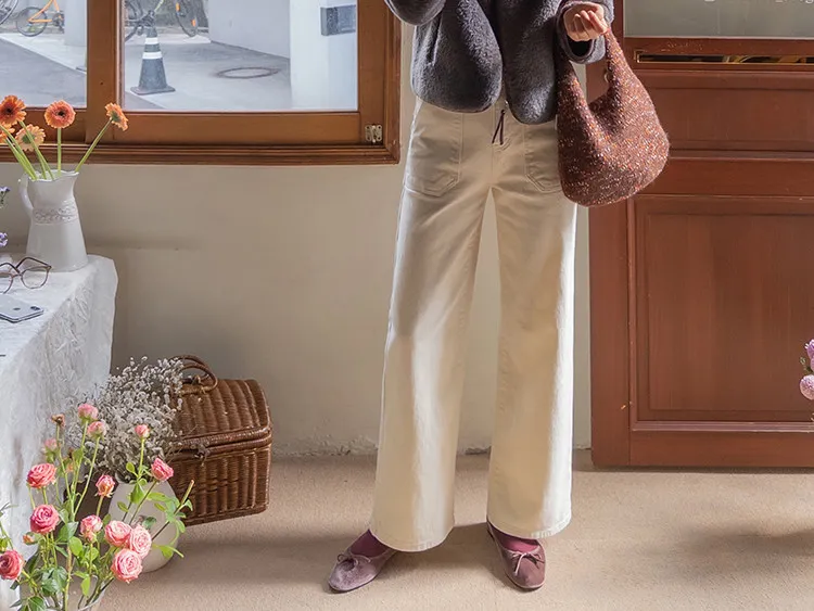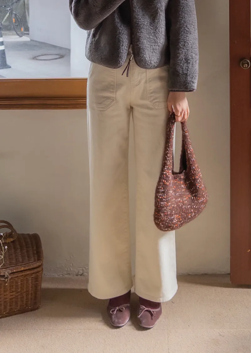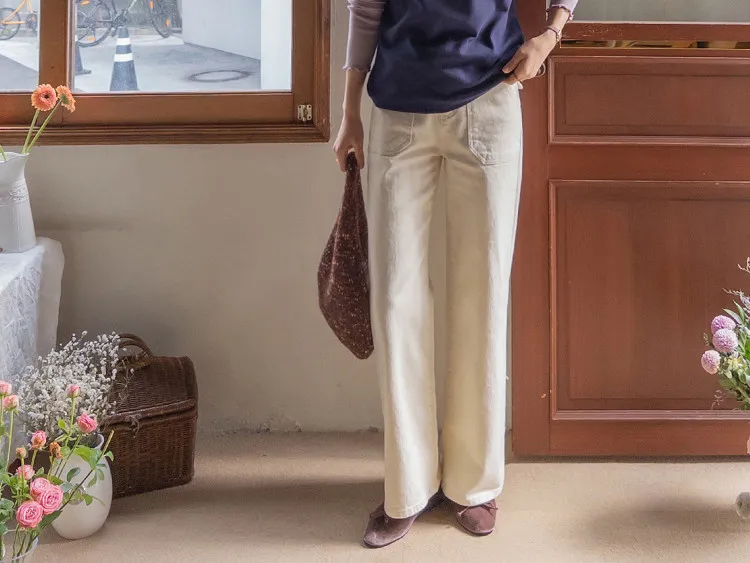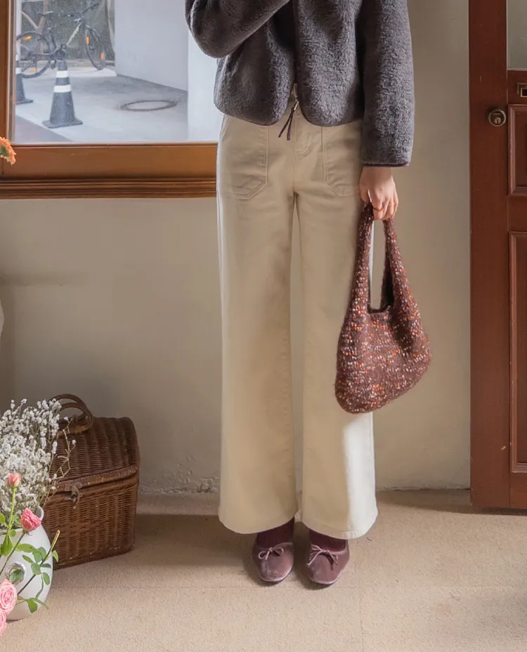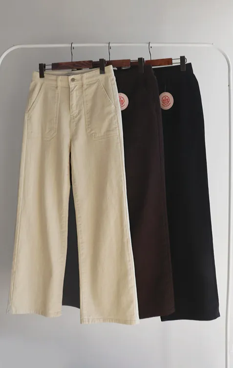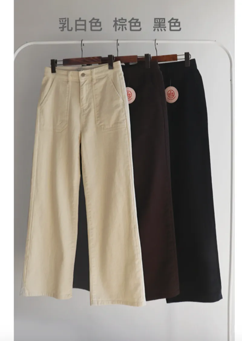 冬日溫暖獨特口袋設計寬鬆直筒休閒褲