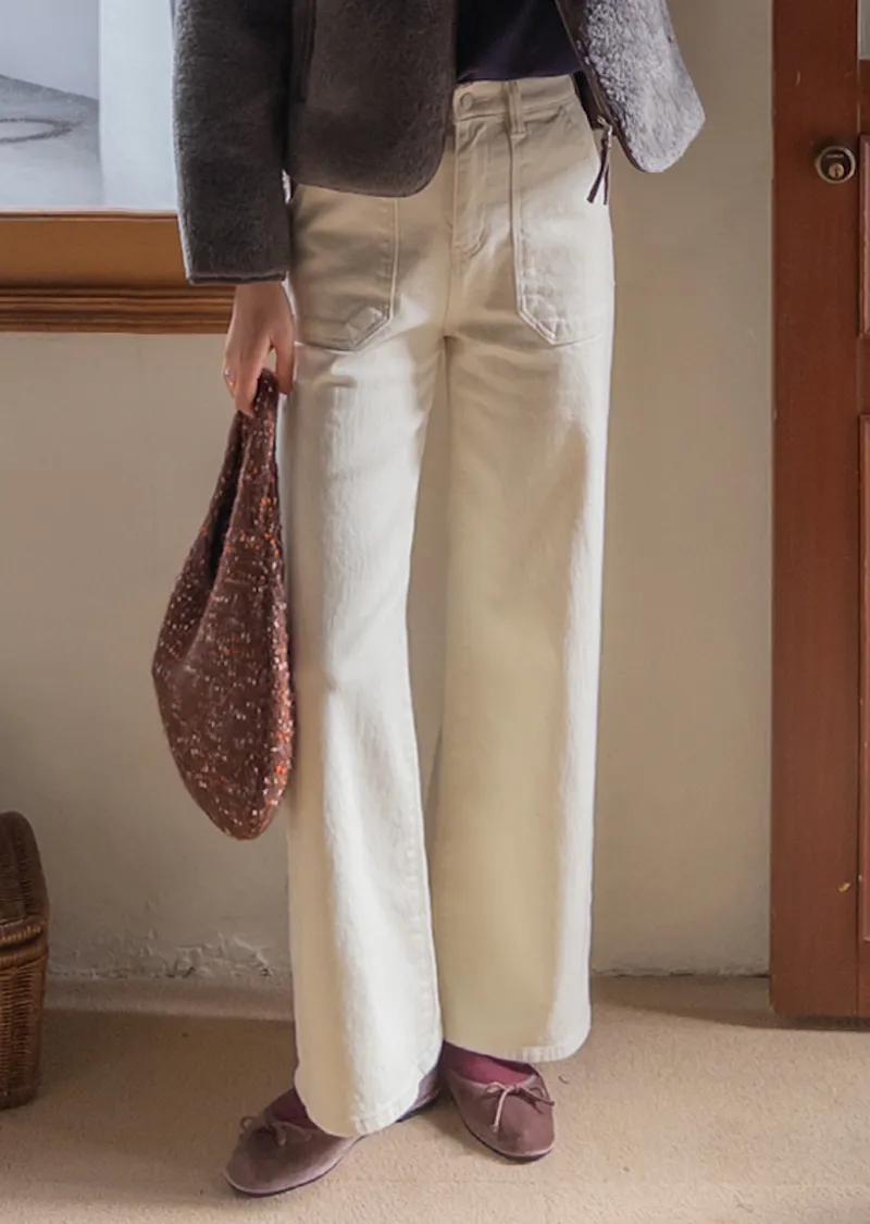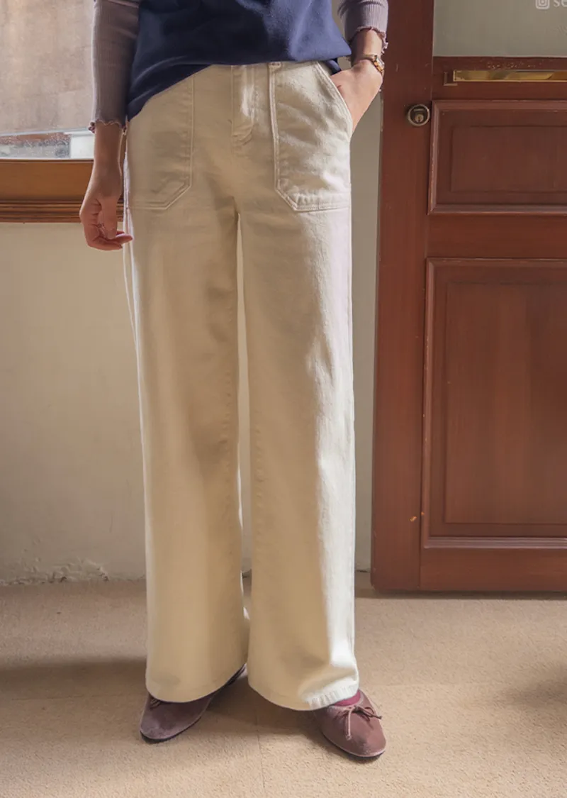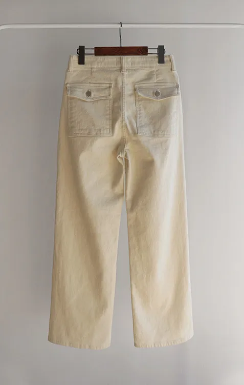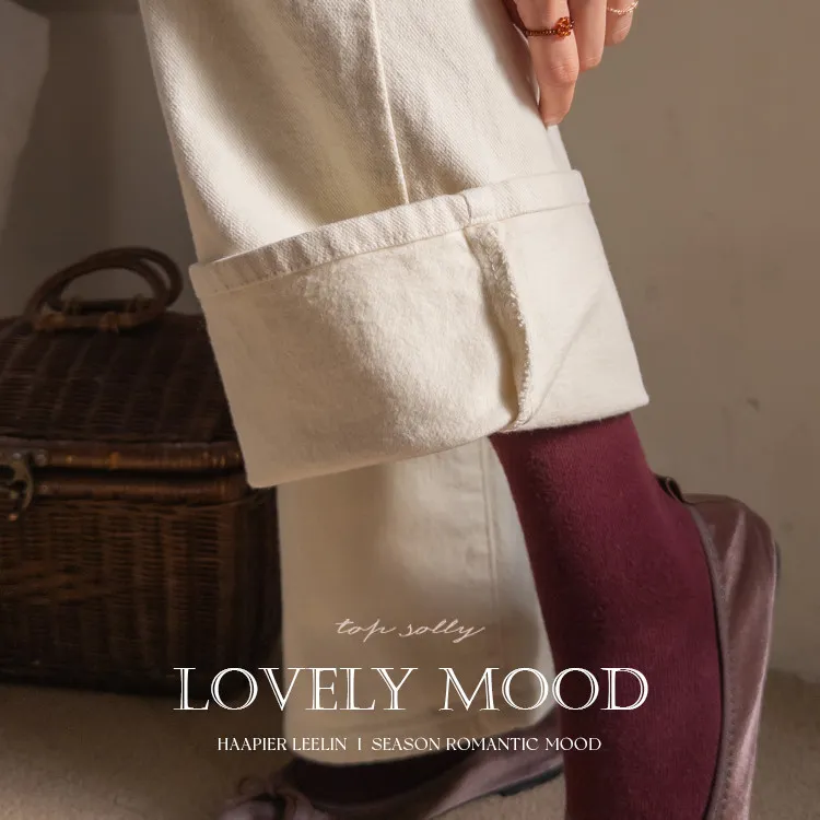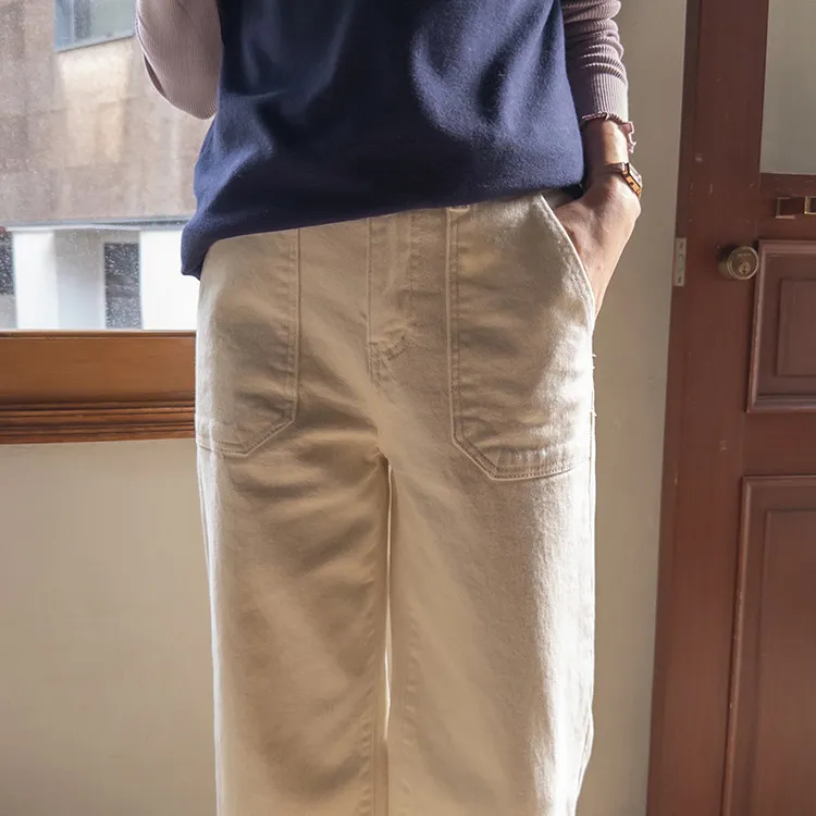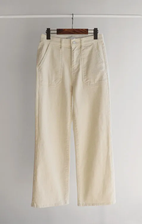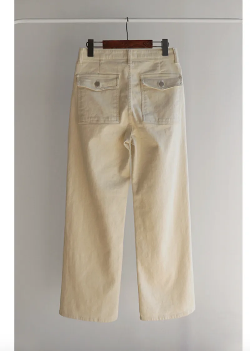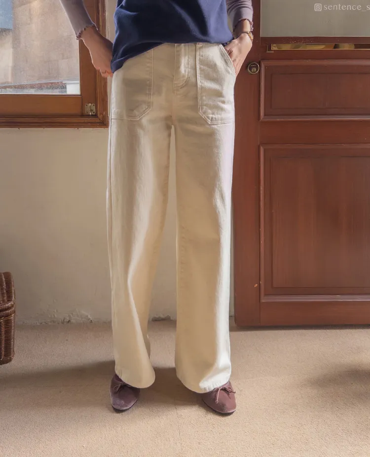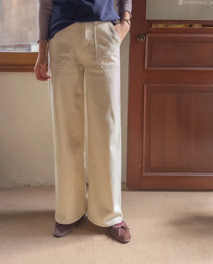 冬日溫暖獨特口袋設計寬鬆直筒休閒褲