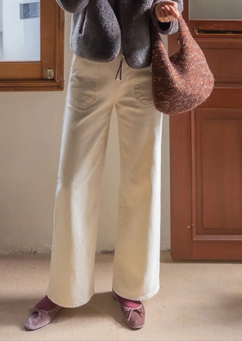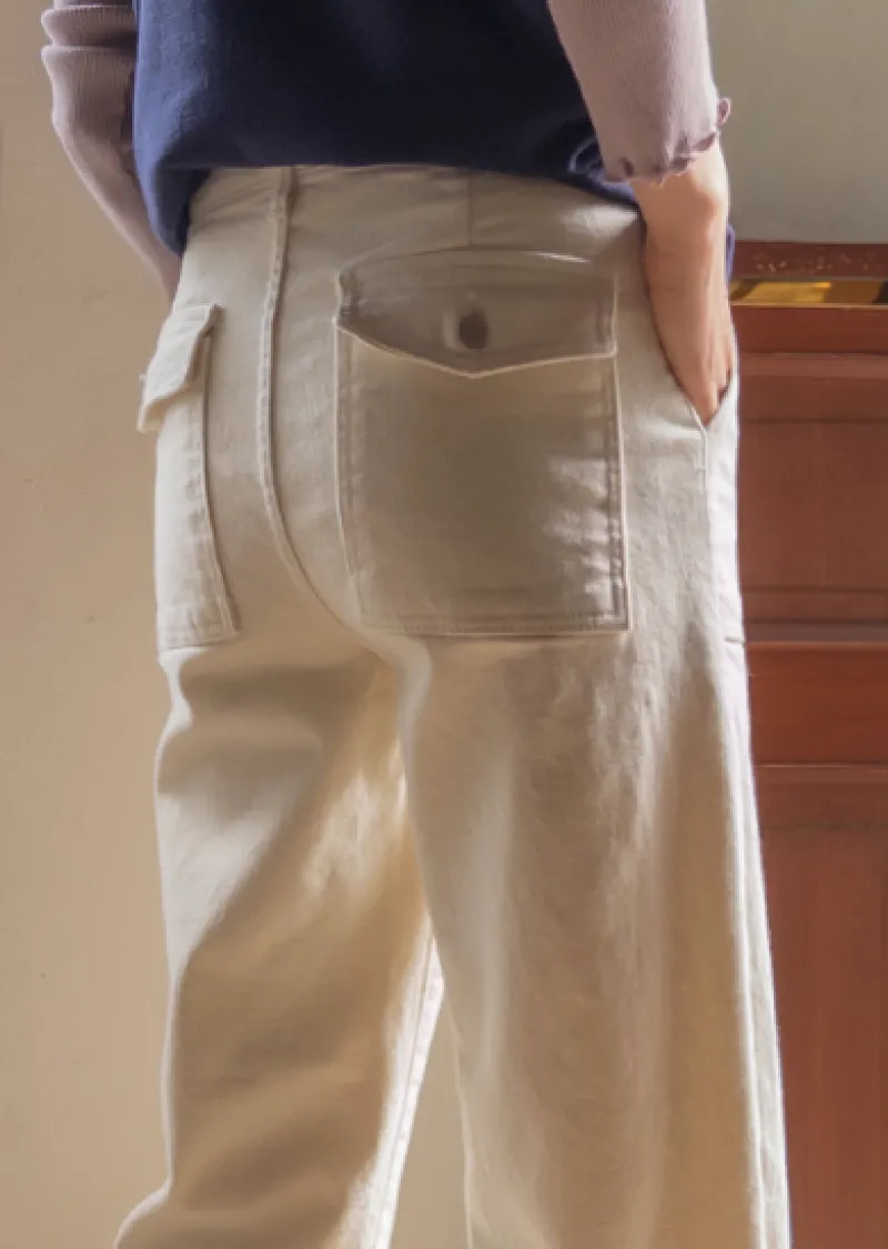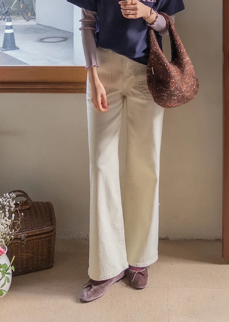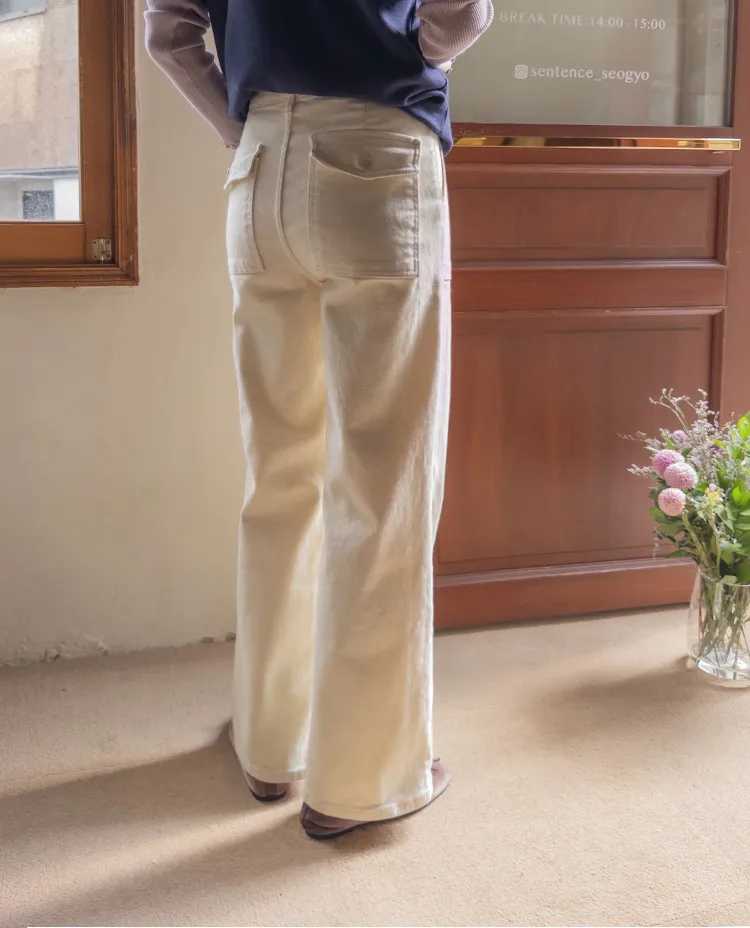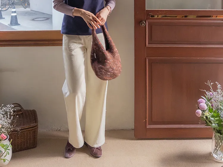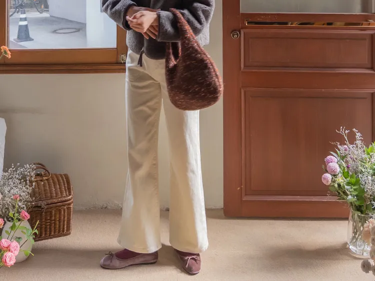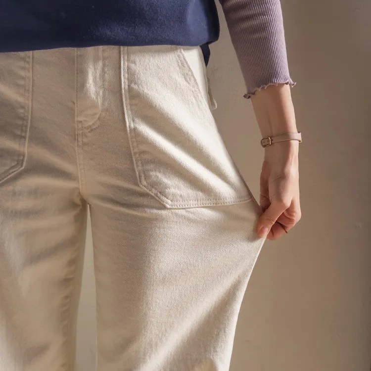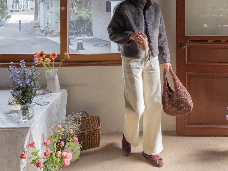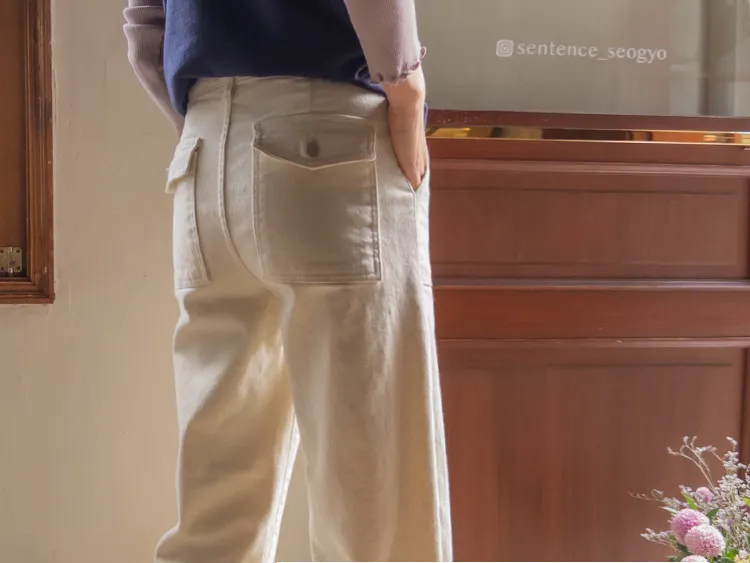 冬日溫暖獨特口袋設計寬鬆直筒休閒褲