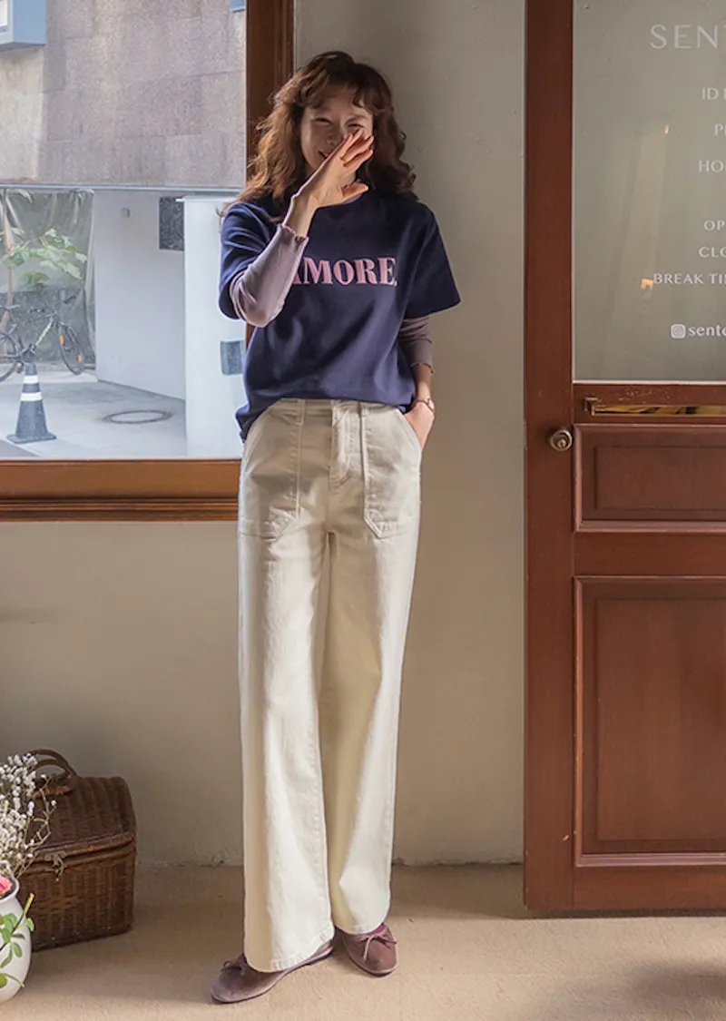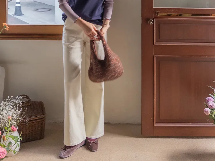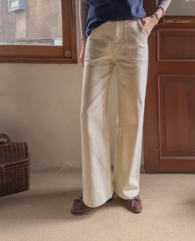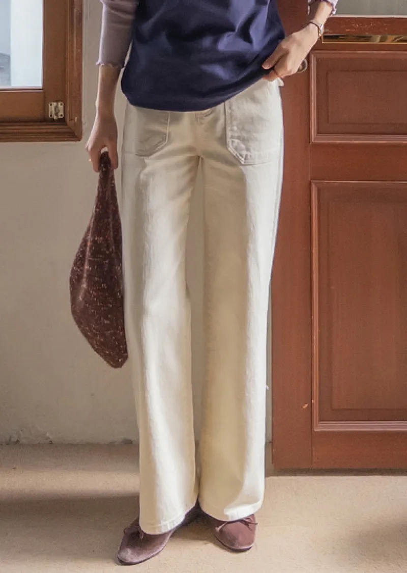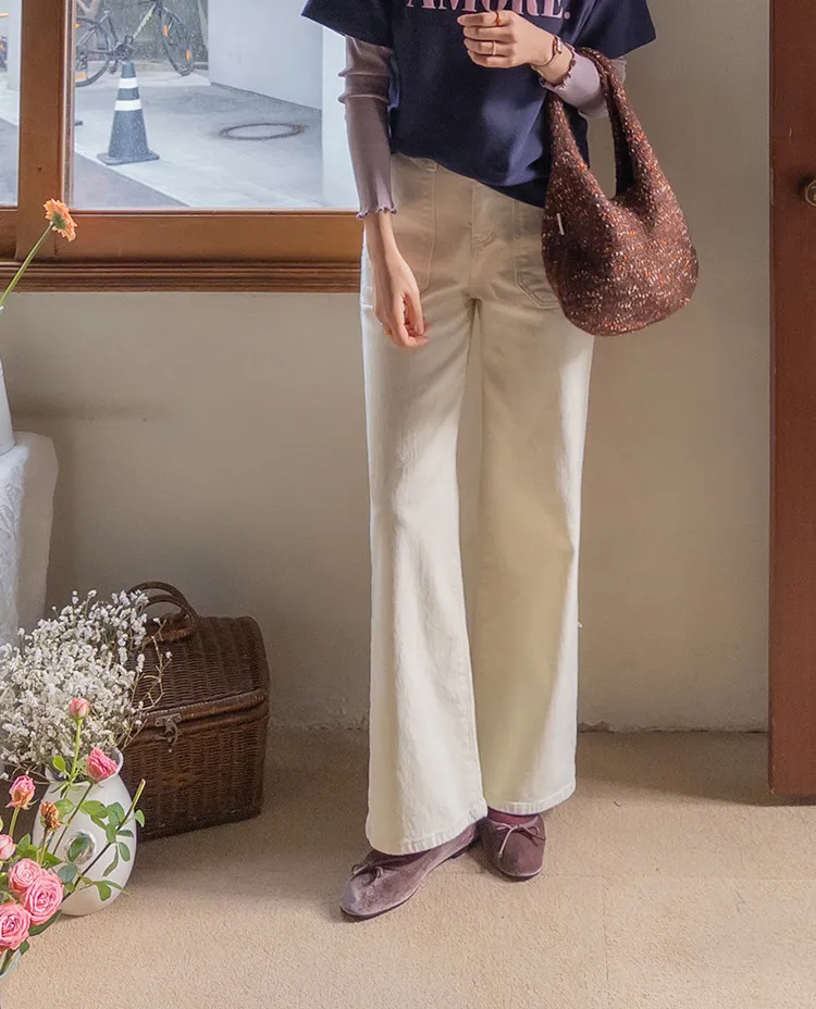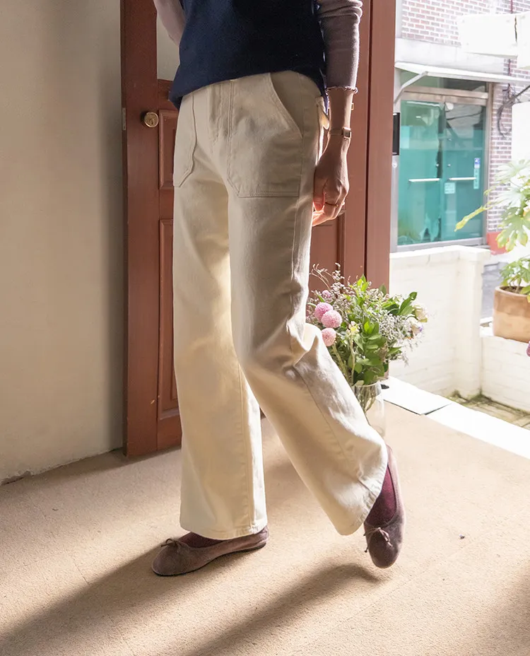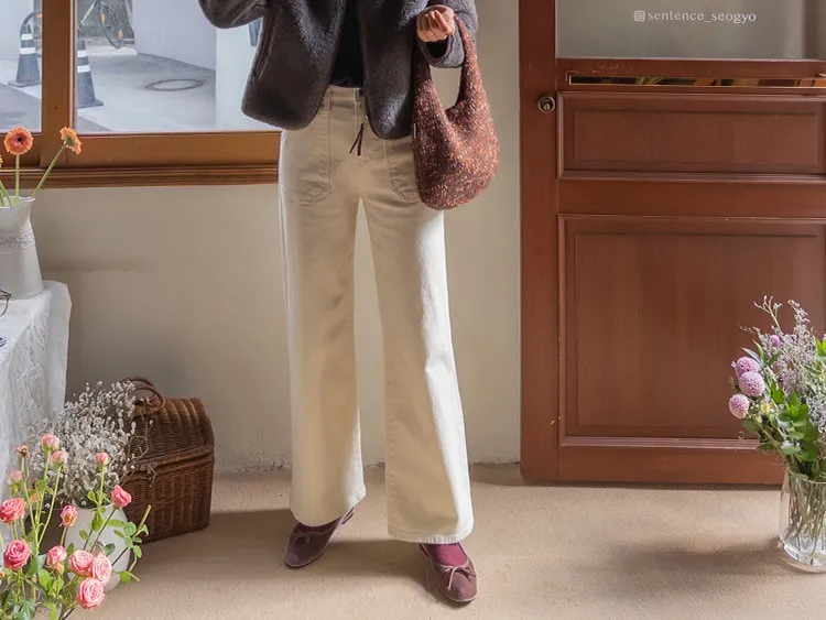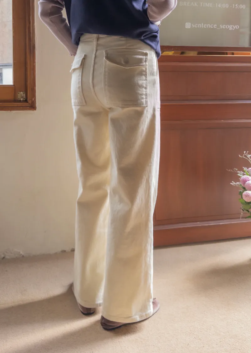 冬日溫暖獨特口袋設計寬鬆直筒休閒褲
