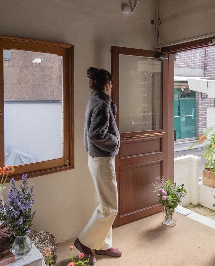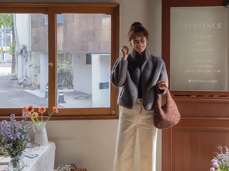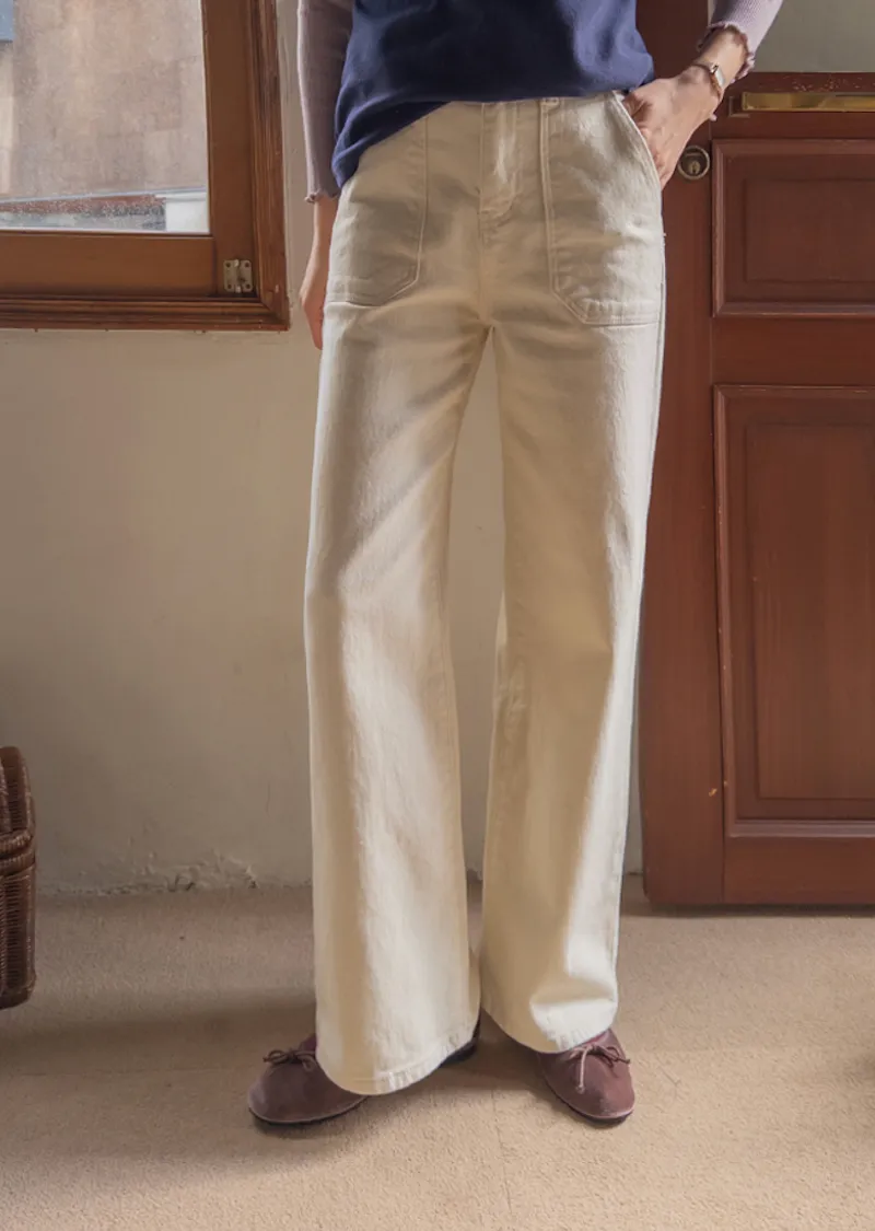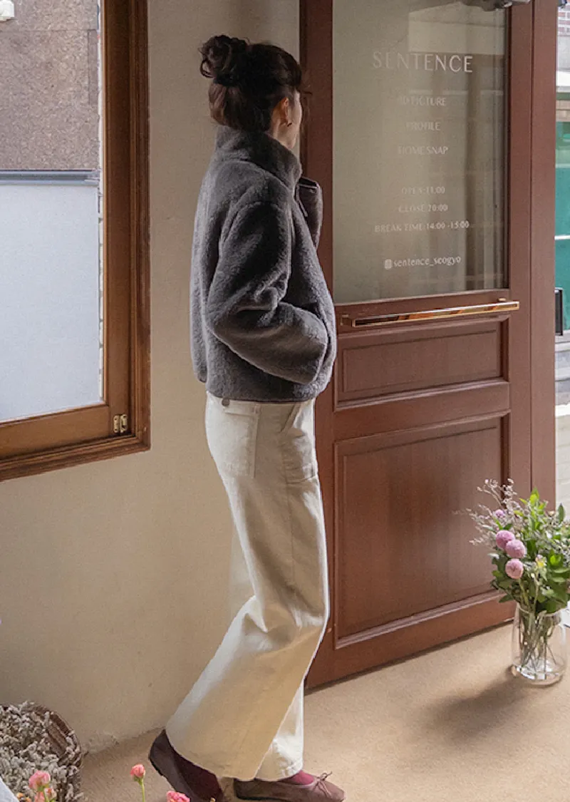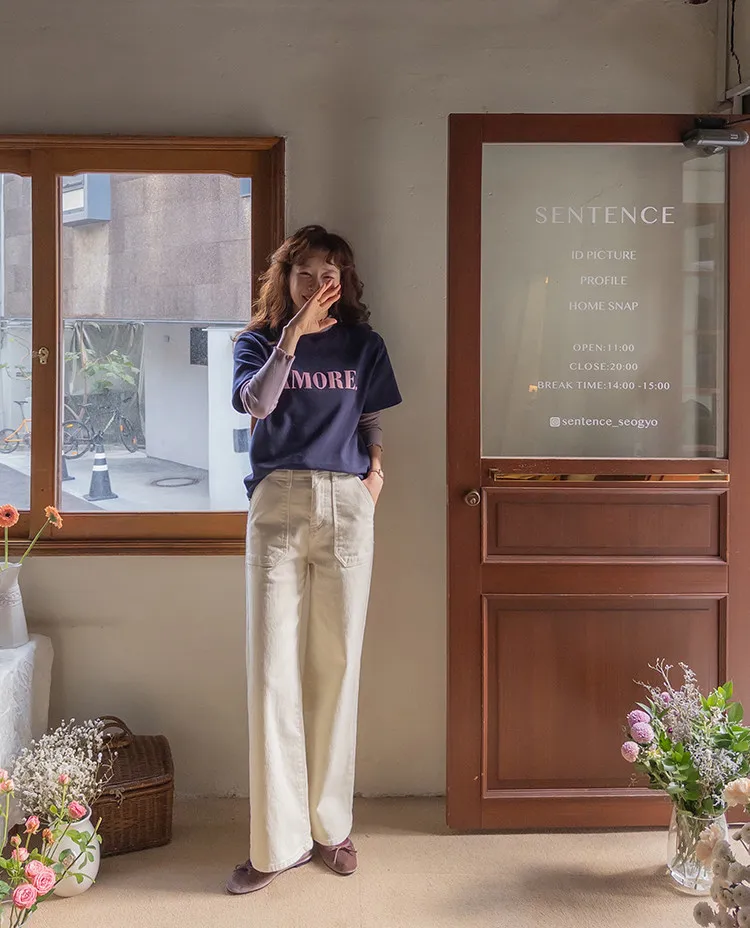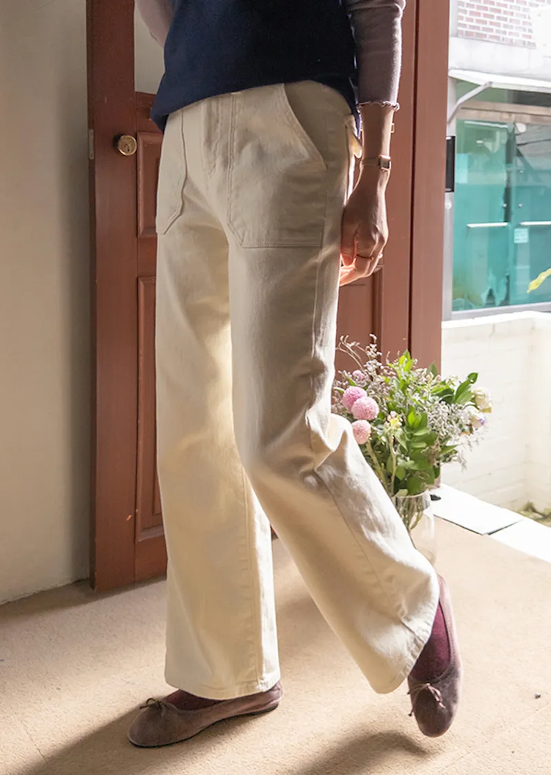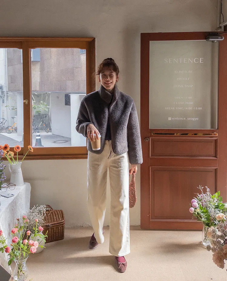 冬日溫暖獨特口袋設計寬鬆直筒休閒褲