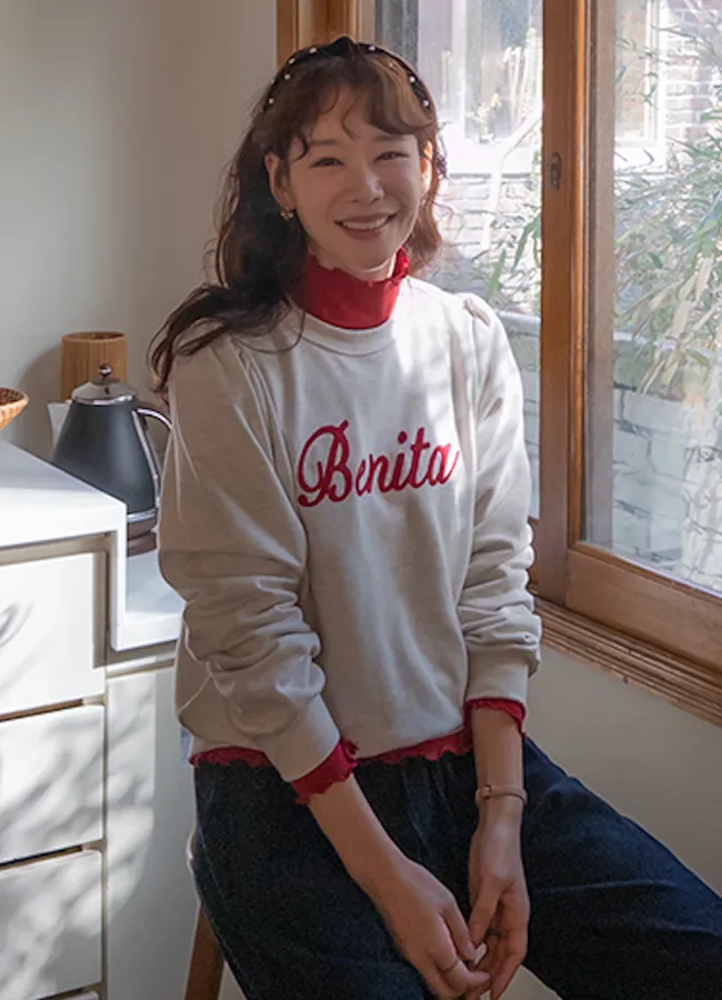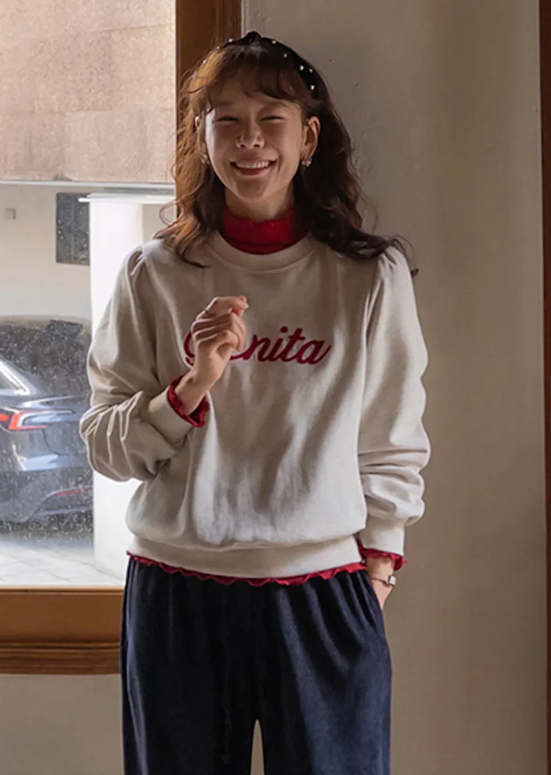 獨特立體刺繡字母後下擺開衩設計穿搭上衣