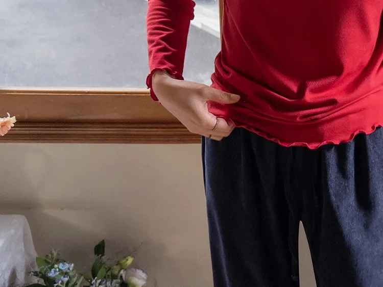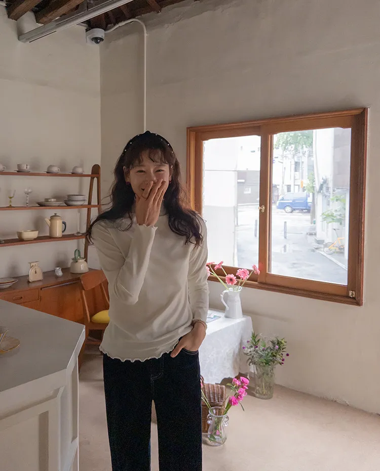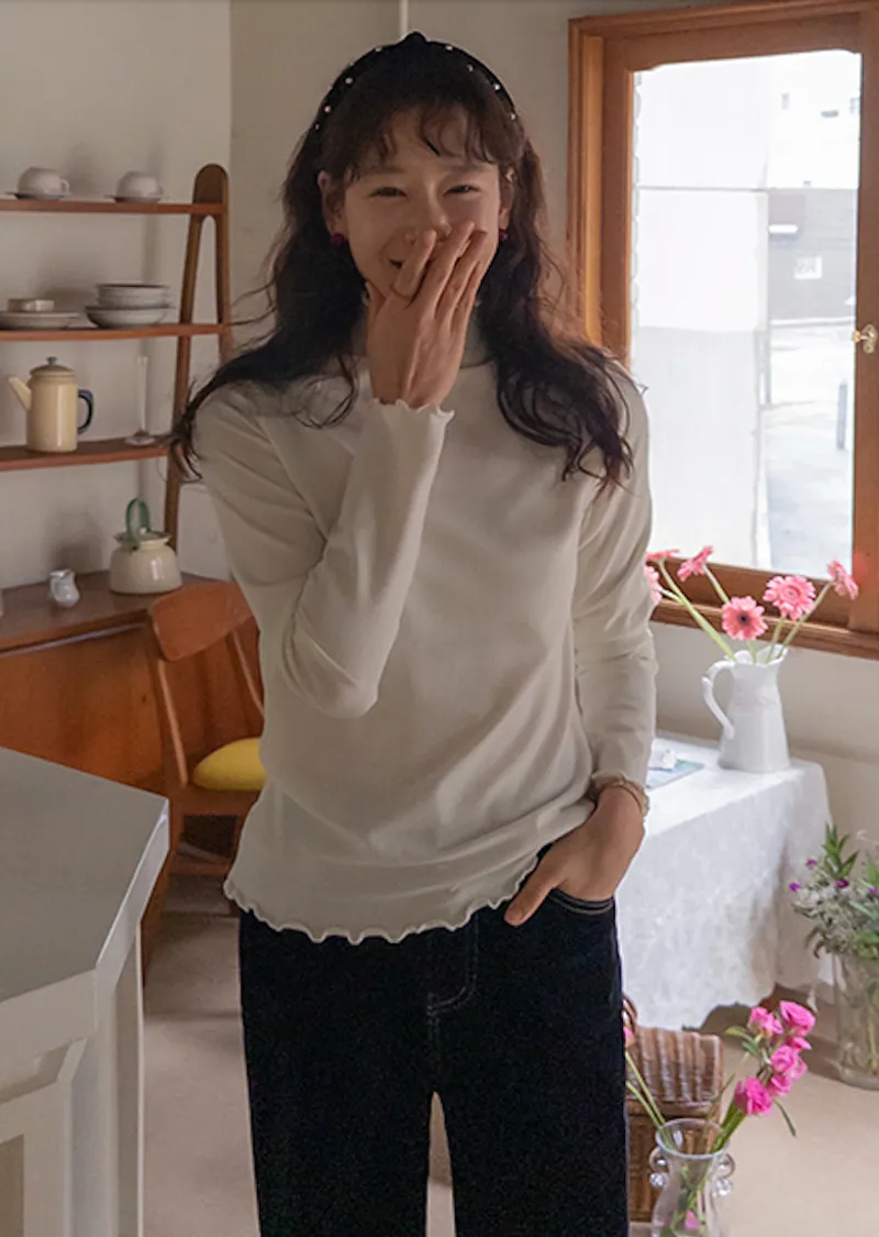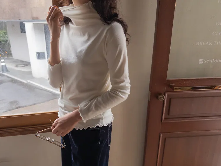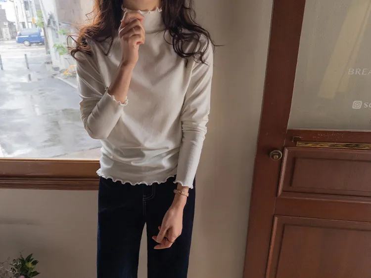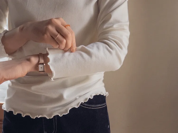 漂亮末端波浪邊可單穿疊穿彈性上衣