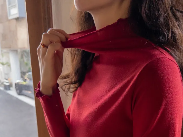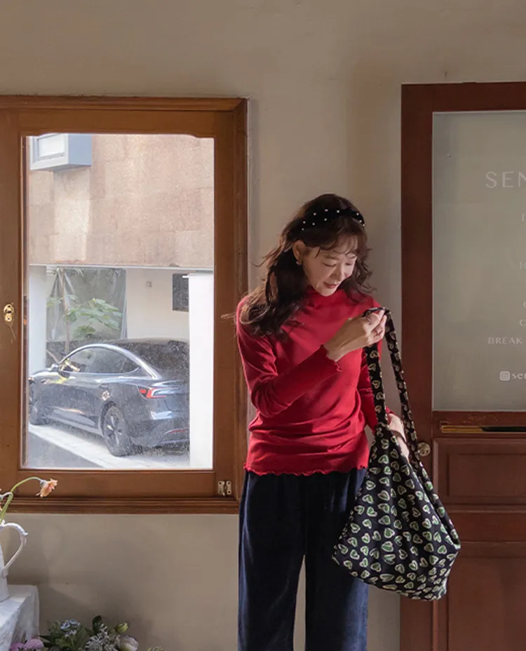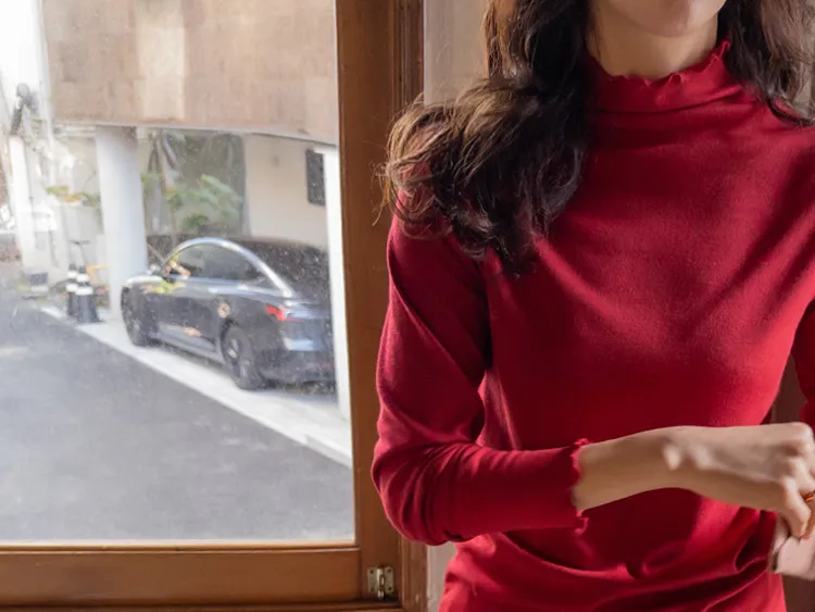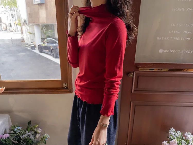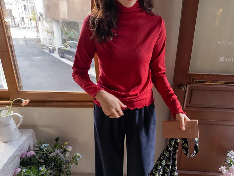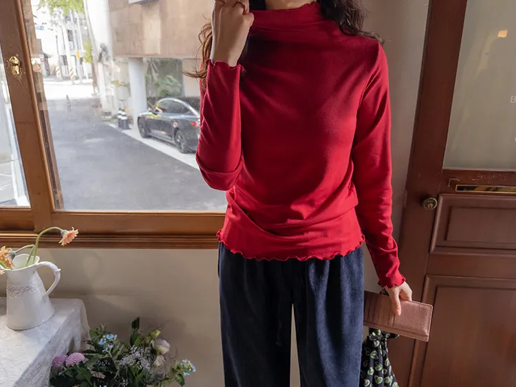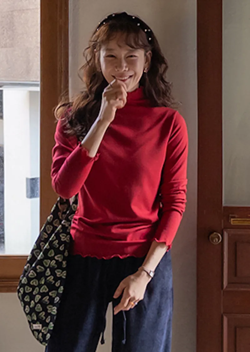 漂亮末端波浪邊可單穿疊穿彈性上衣