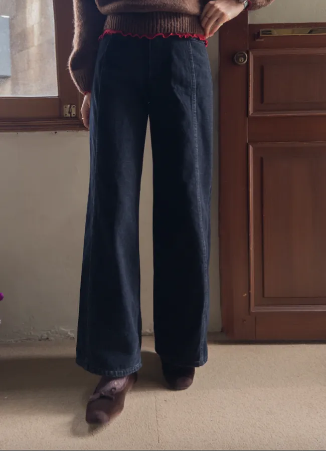 獨特前線條剪裁修長設計舒適寬版牛仔褲