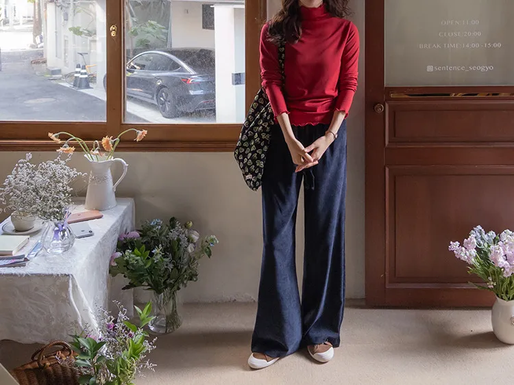 質感奢華微妙光澤絨質舒適牛仔褲