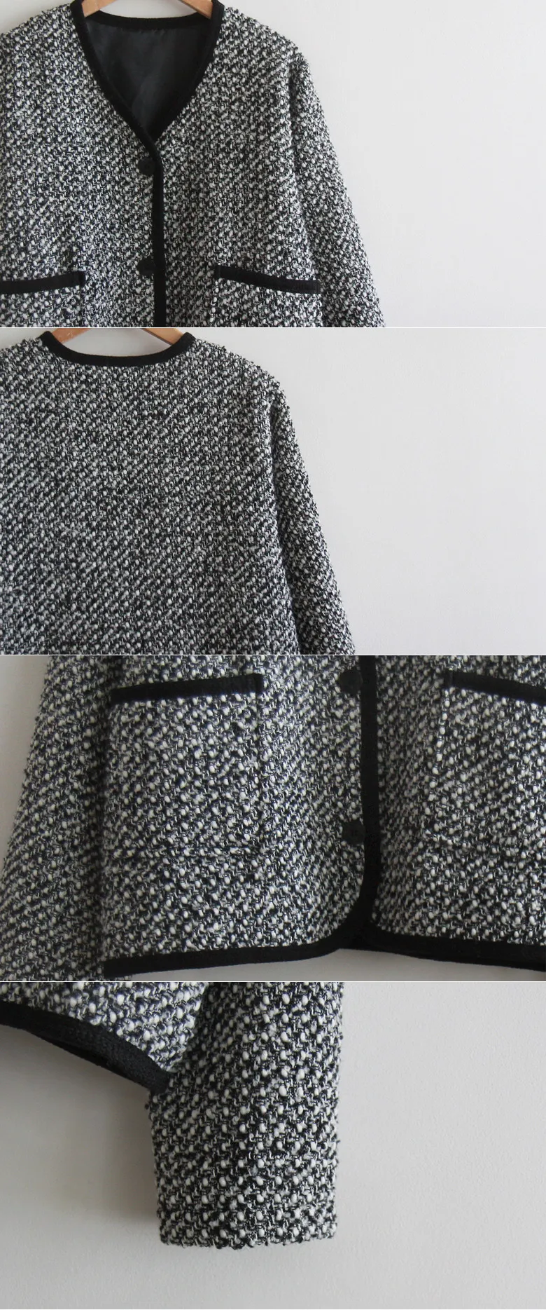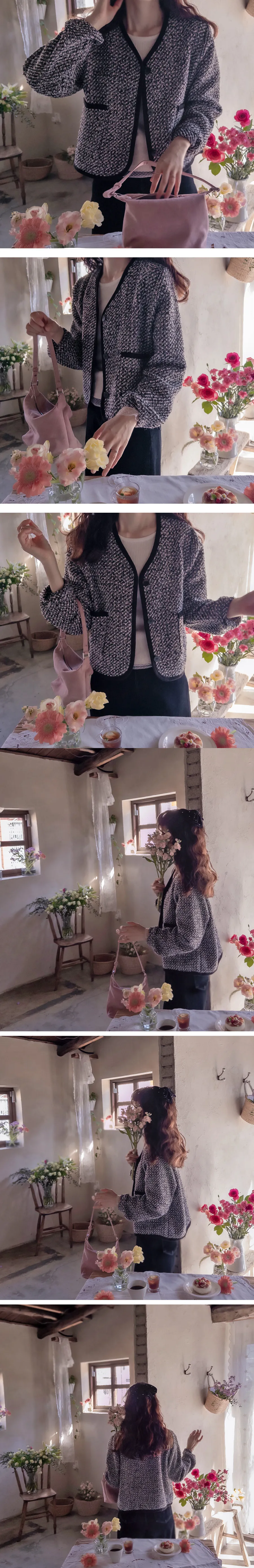 【一款精緻的撞色外套】【採用略帶立體感的花呢面料,營造時尚氛圍】【鈕扣帶也是亮點】【一款充滿季節感的時尚修身外套】【一款適合日常穿著的基礎款撞色