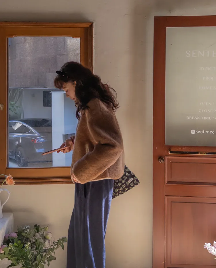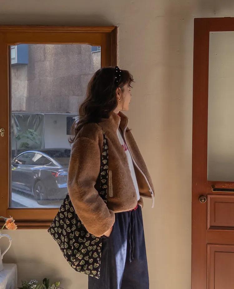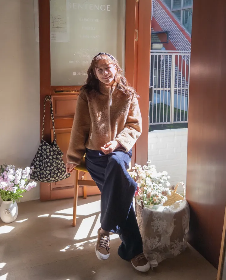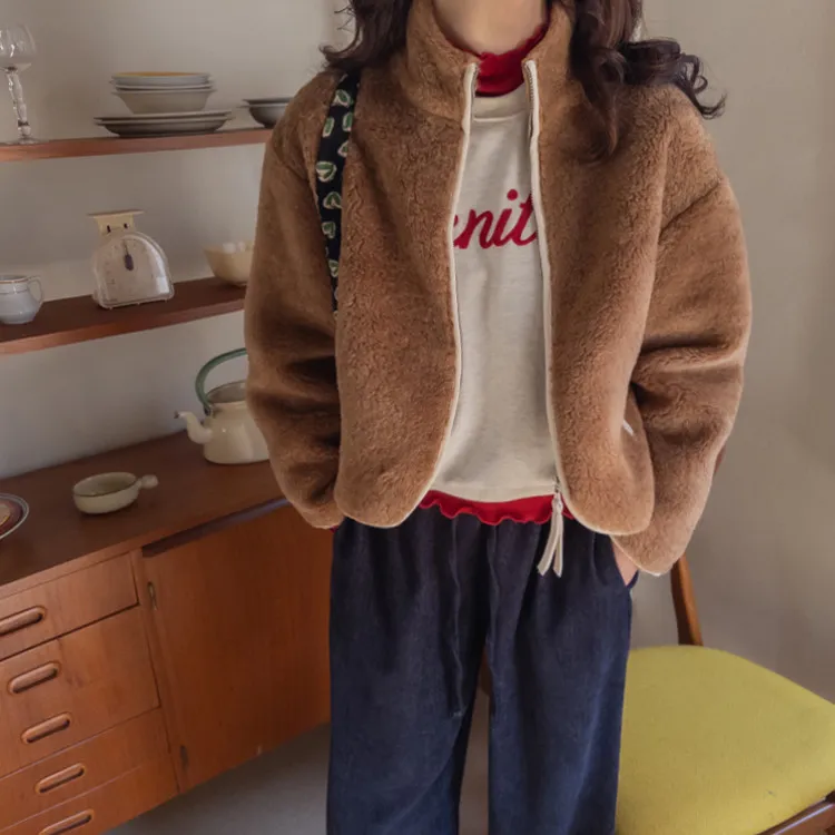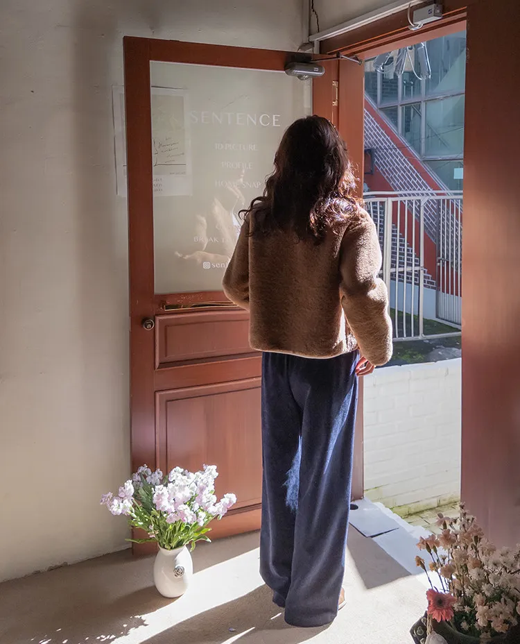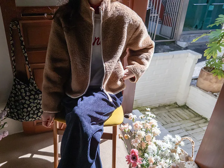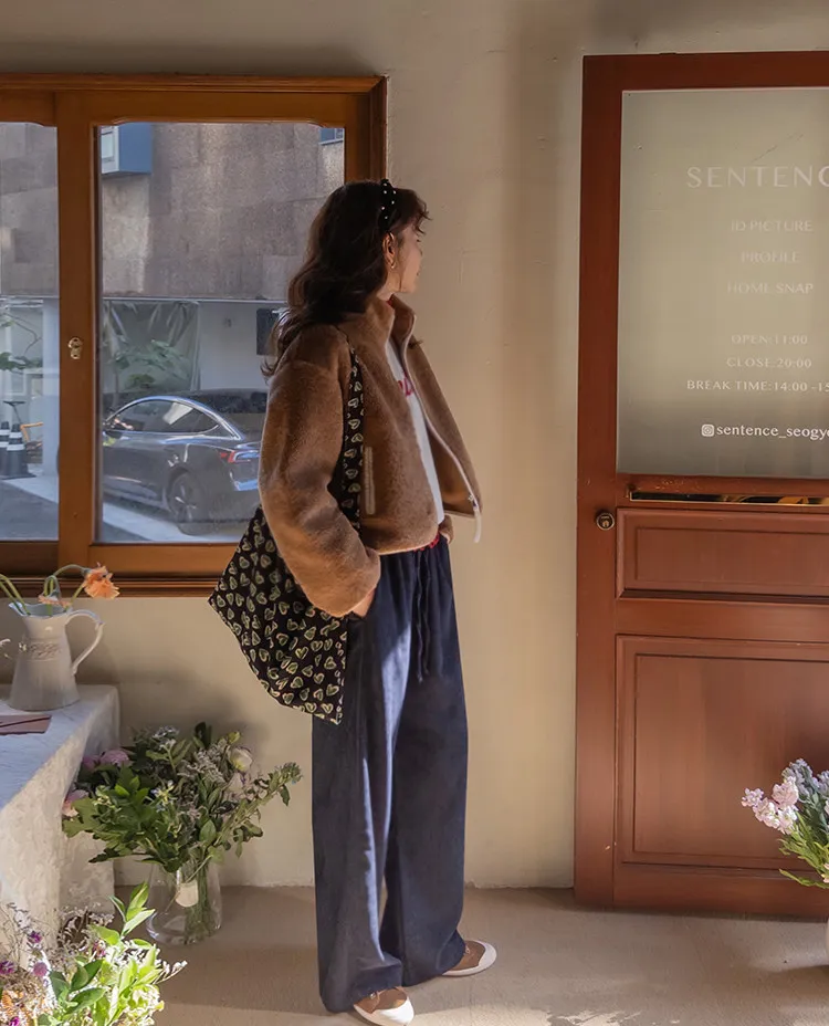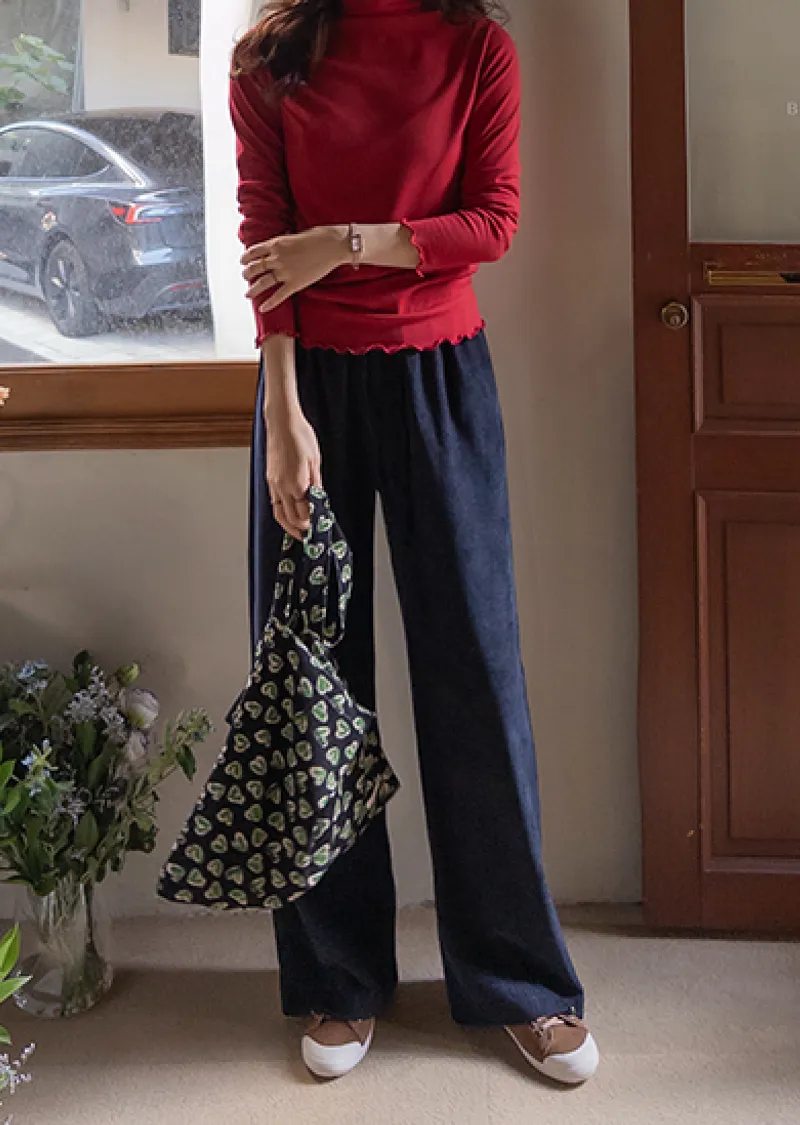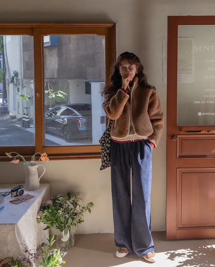 日常穿搭柔軟蓬鬆綁帶收腰寬版絨質休閒褲