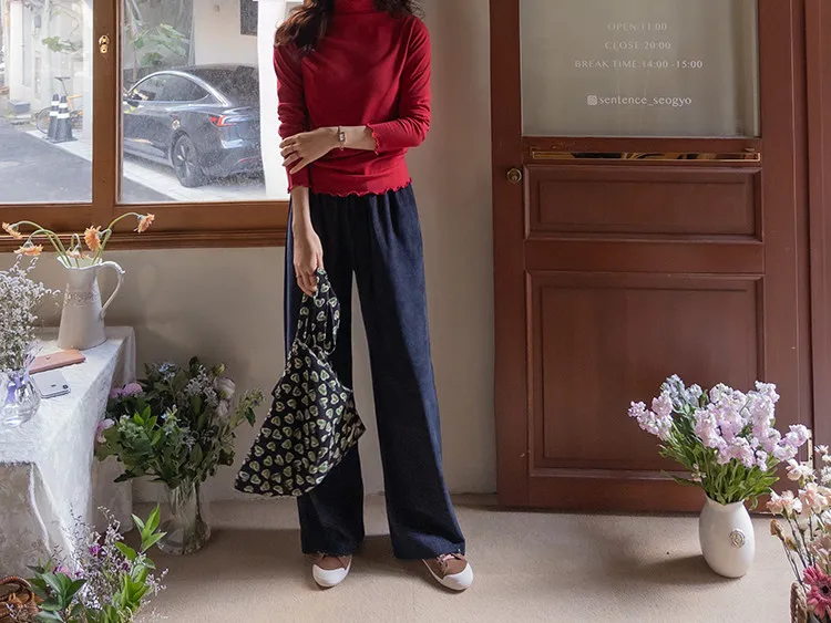 漂亮末端波浪邊可單穿疊穿彈性上衣