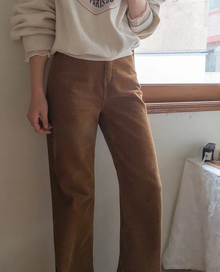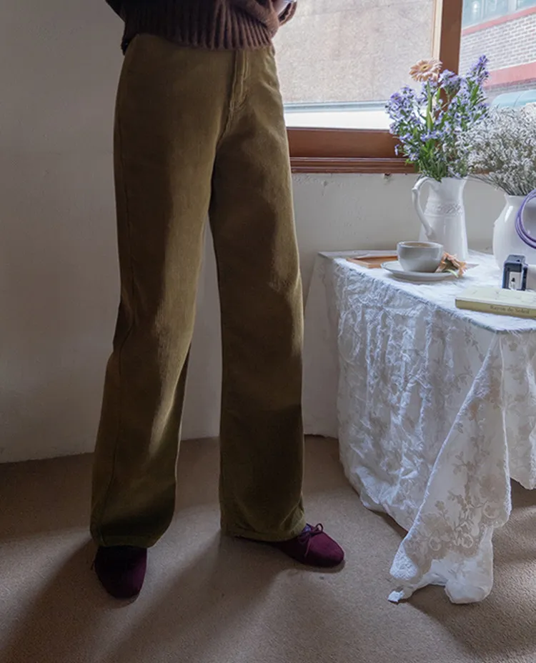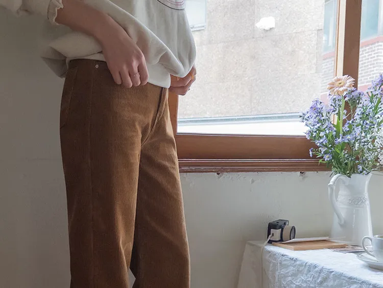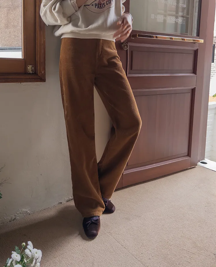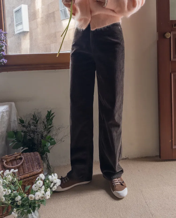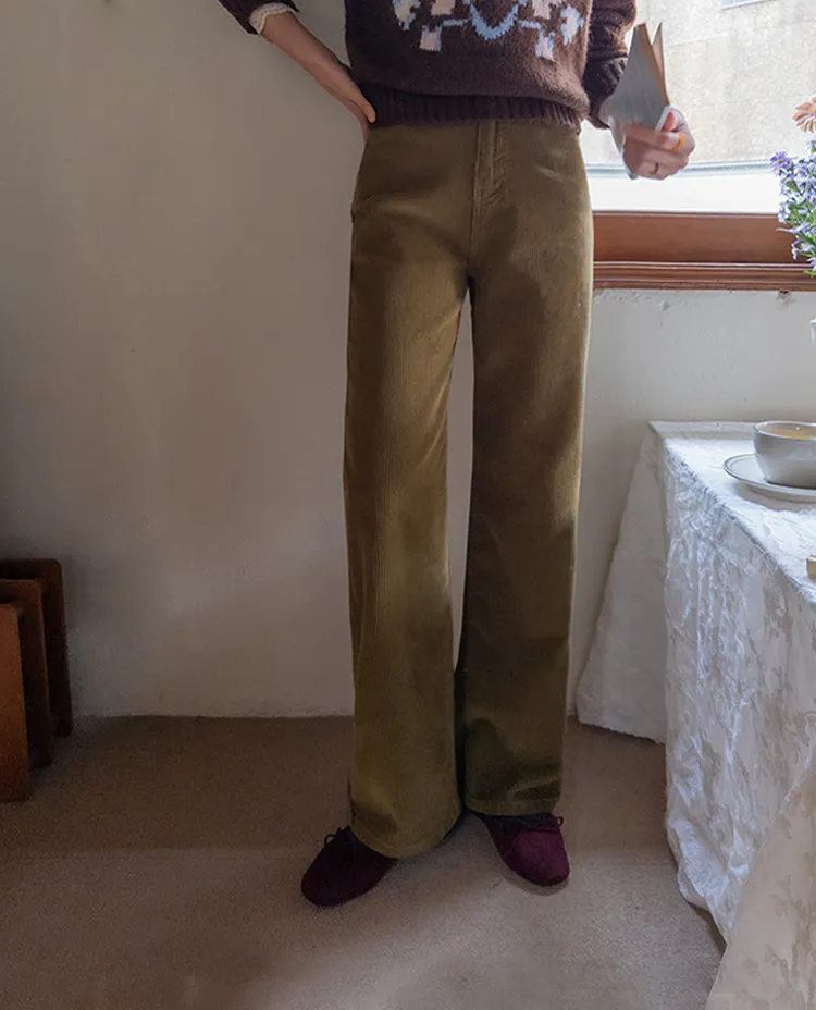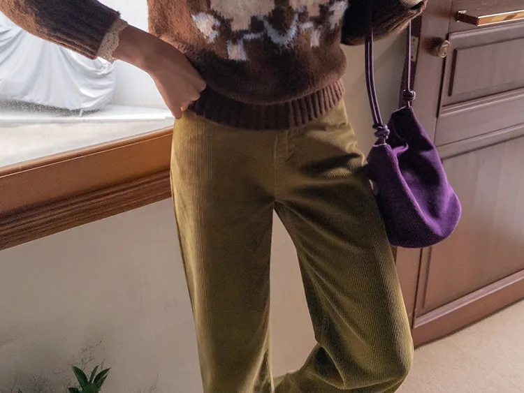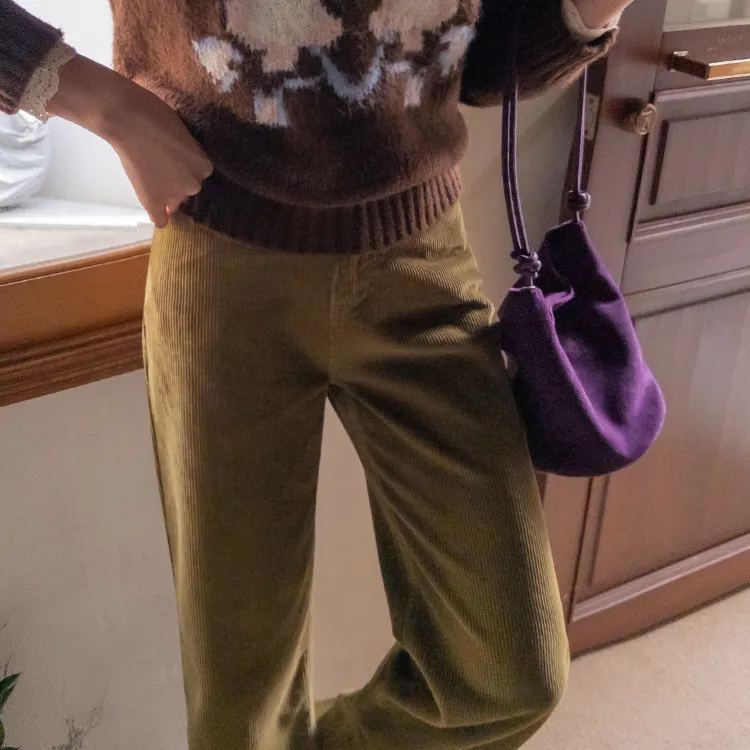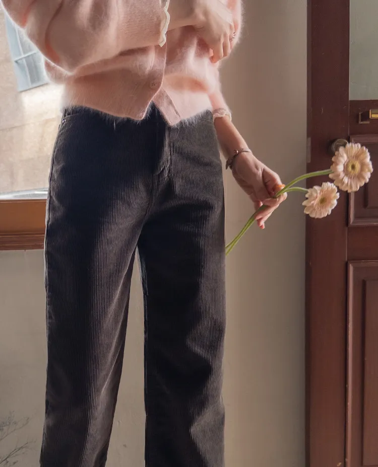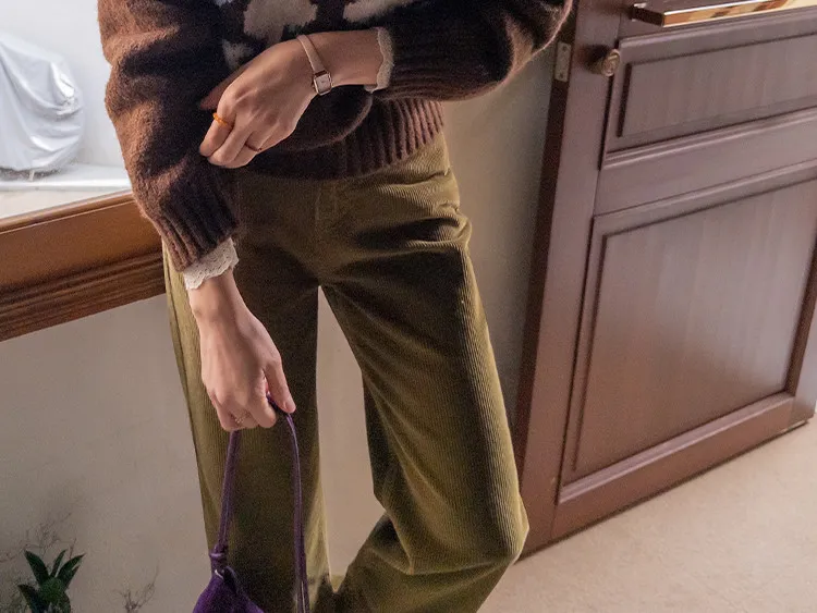 冬季溫暖舒適直筒寬鬆版型燈芯絨休閒褲
