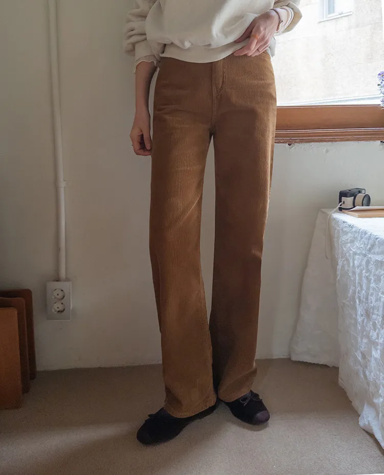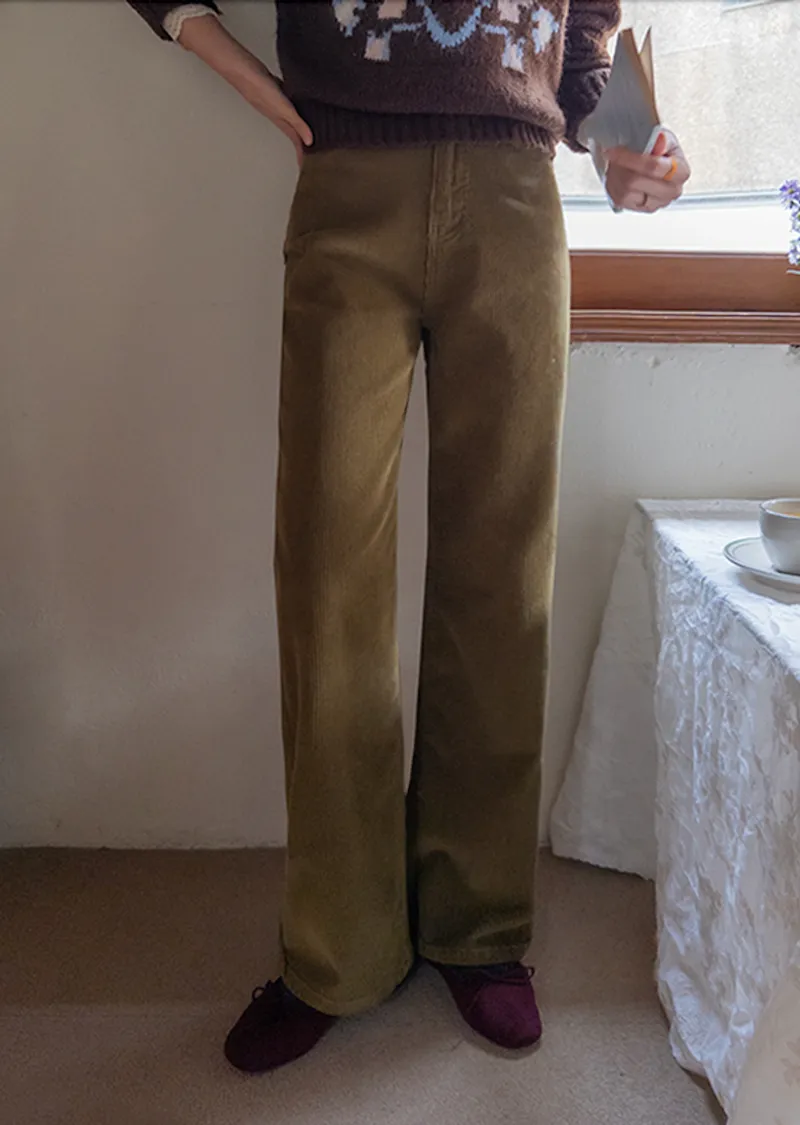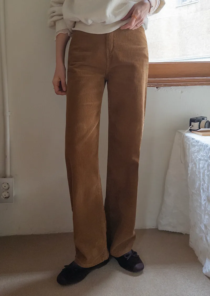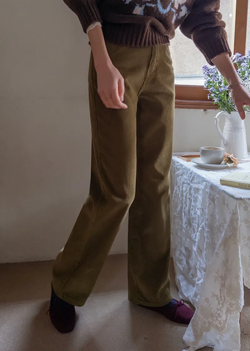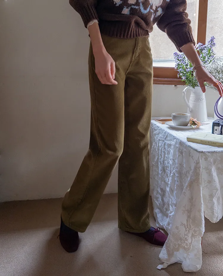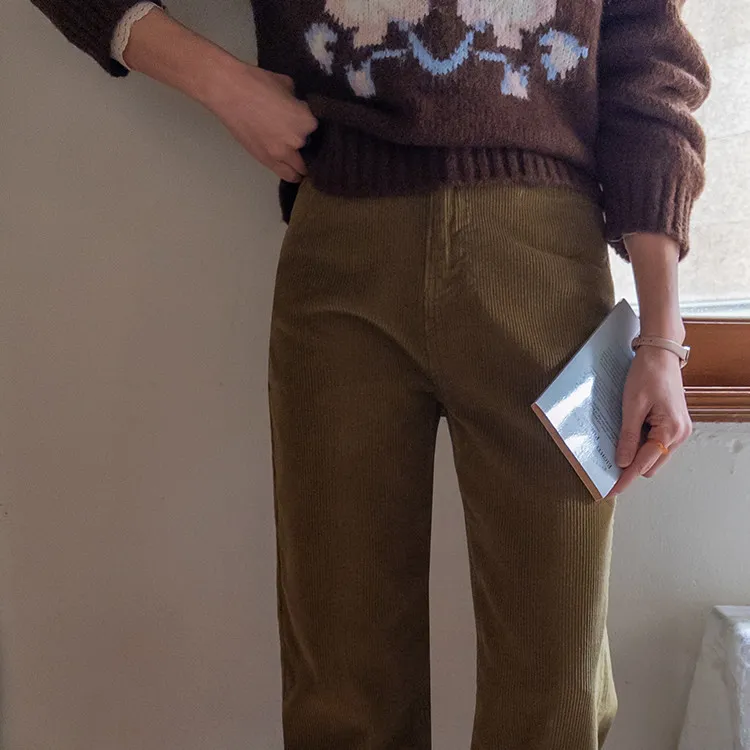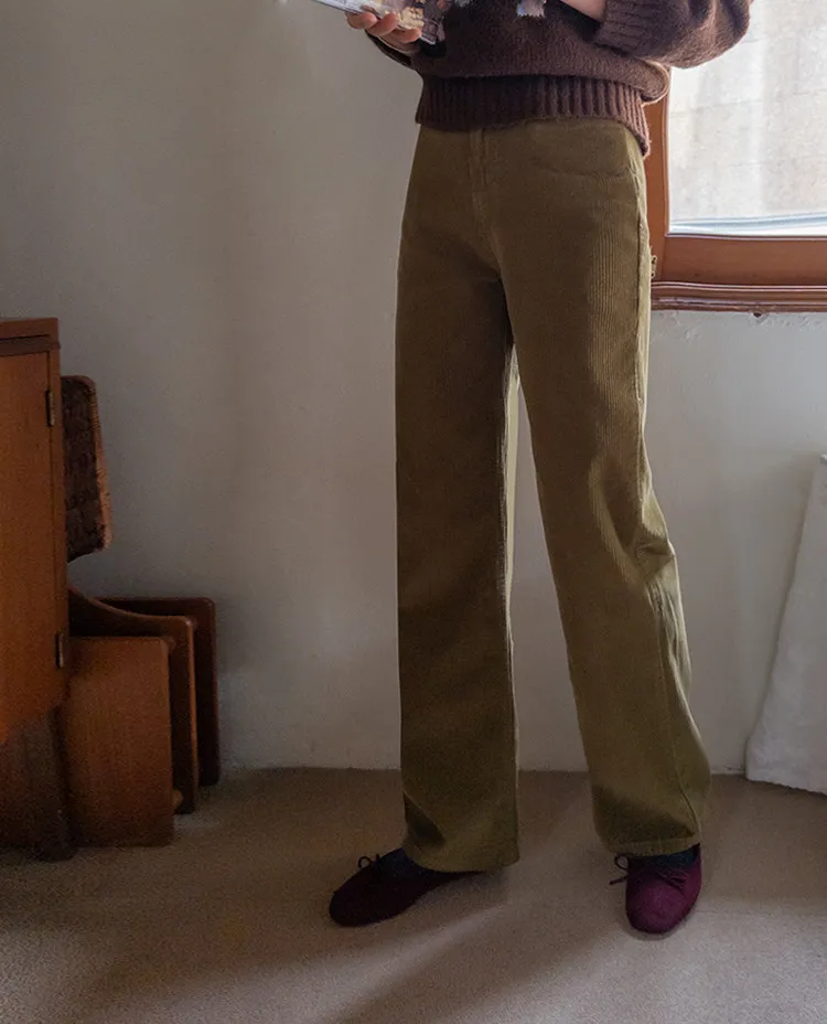 冬季溫暖舒適直筒寬鬆版型燈芯絨休閒褲