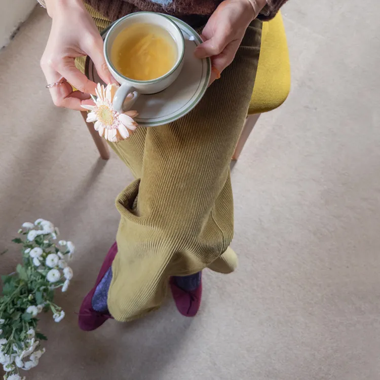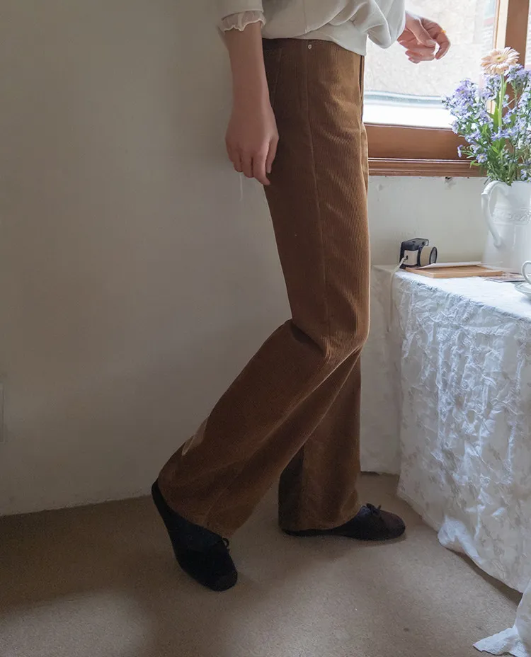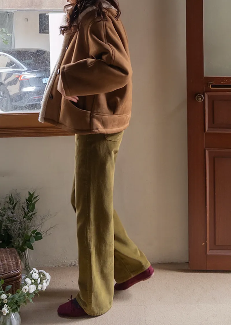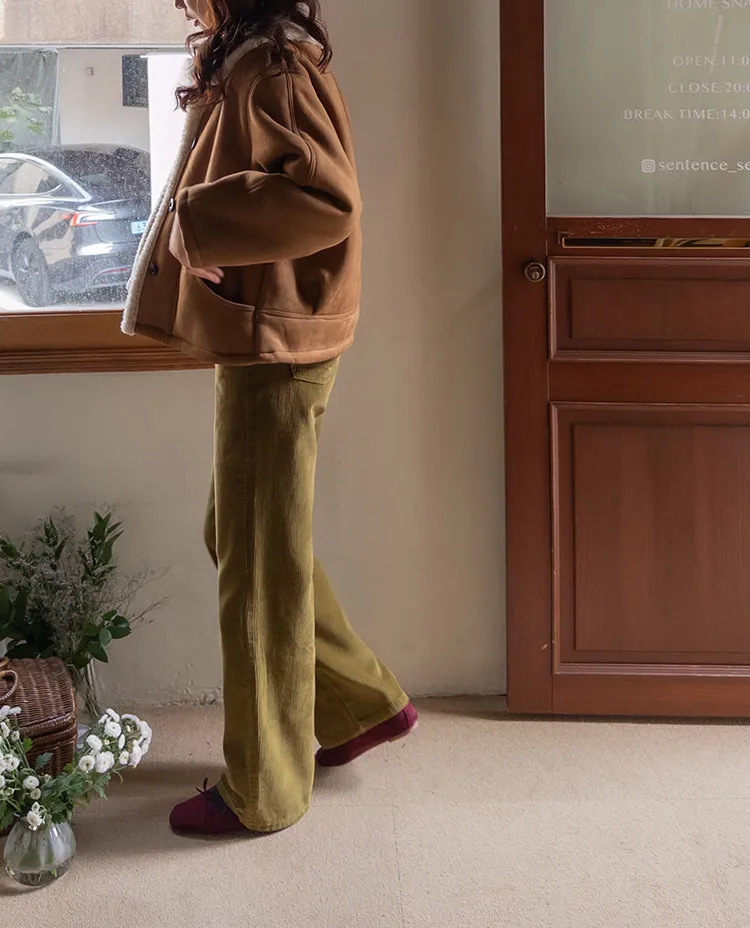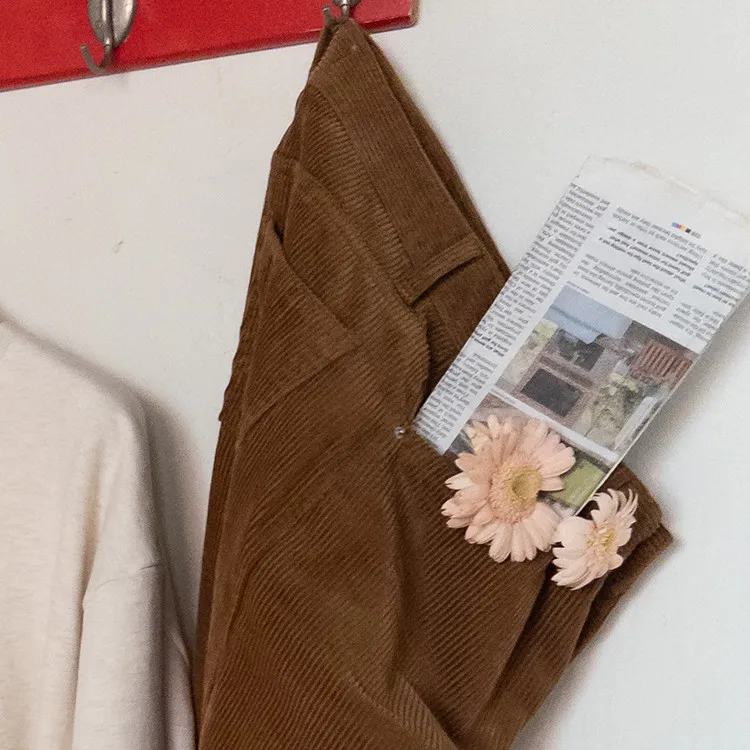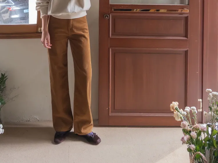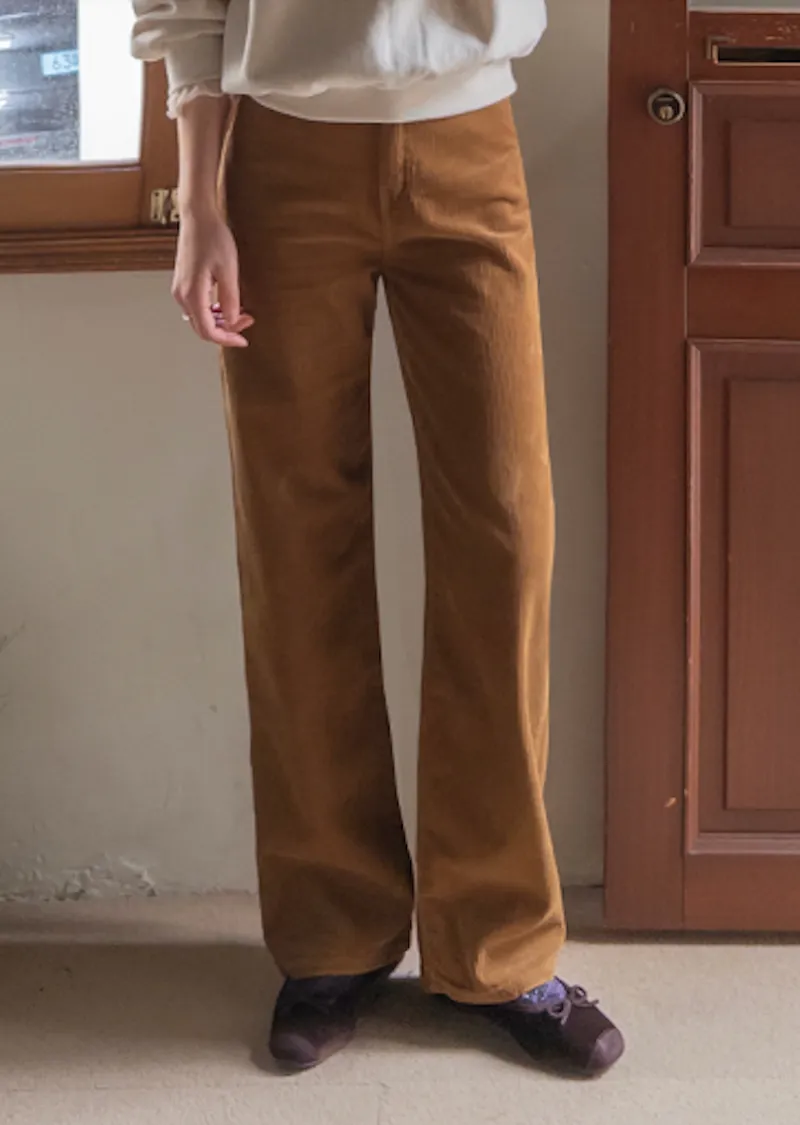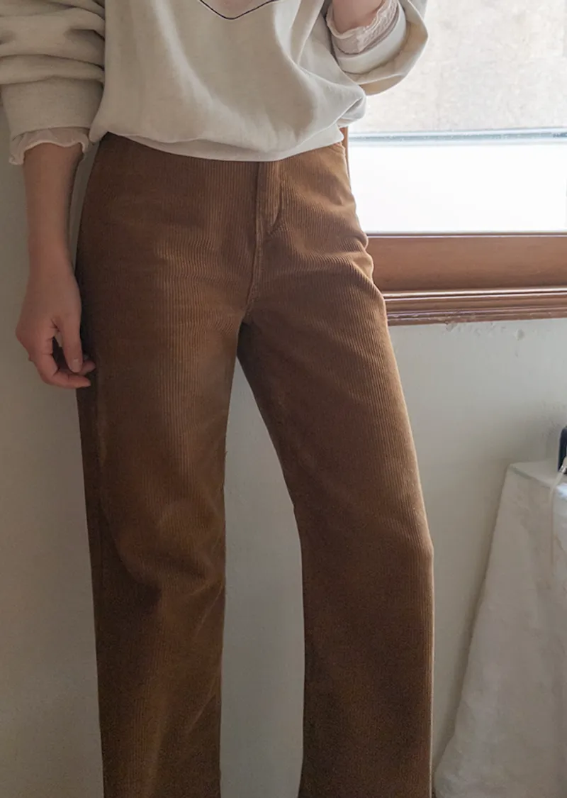 冬季溫暖舒適直筒寬鬆版型燈芯絨休閒褲
