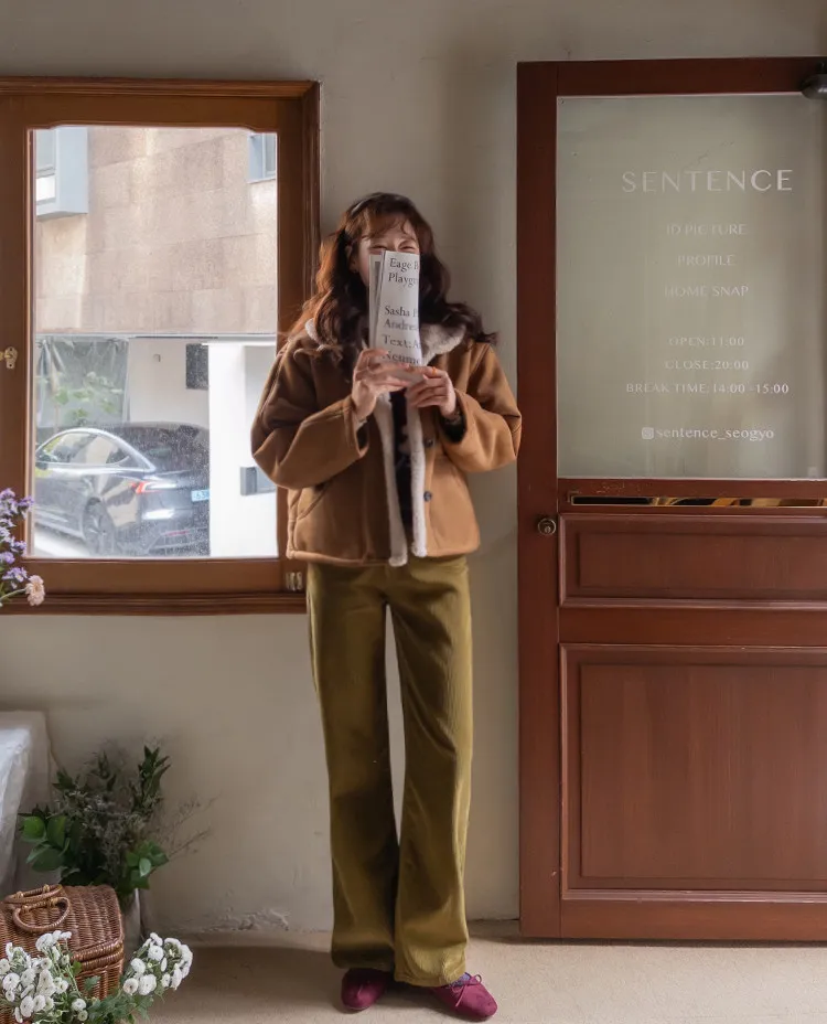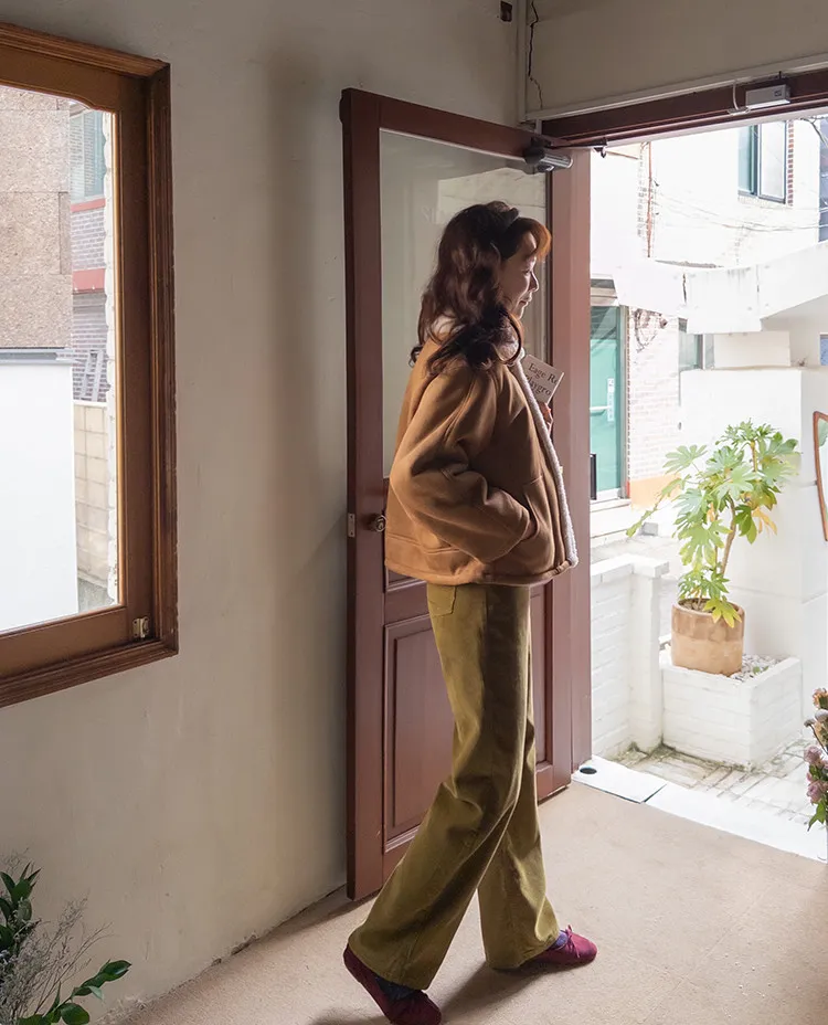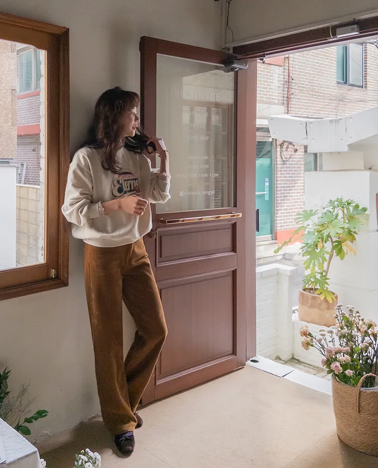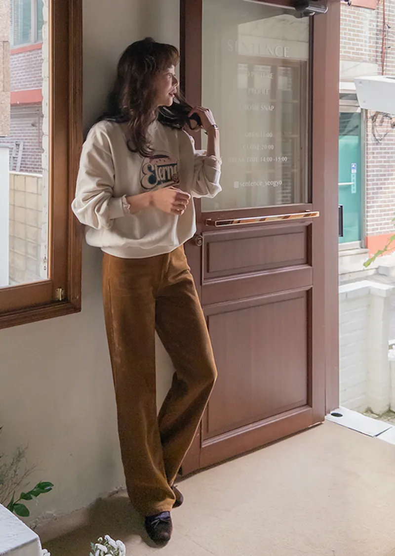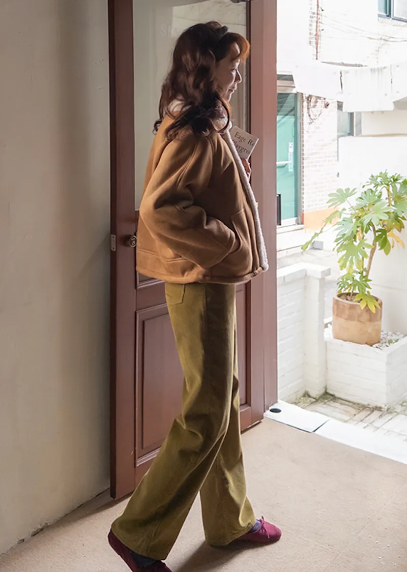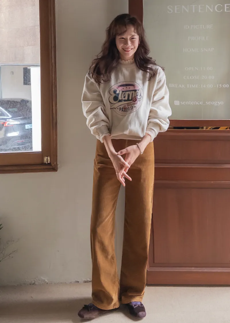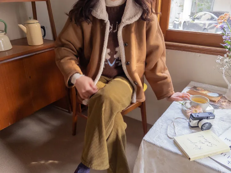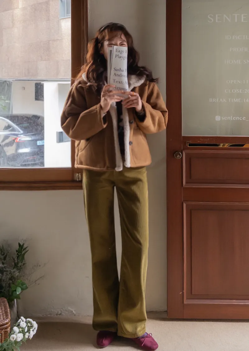 冬季溫暖舒適直筒寬鬆版型燈芯絨休閒褲