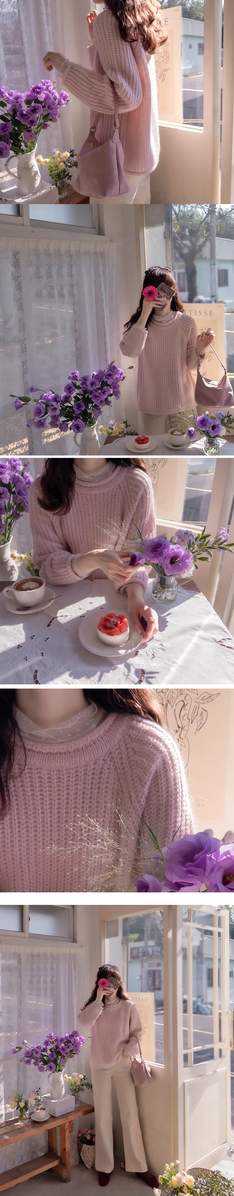 【當季布料,含羊駝毛】【亮點在於領口和袖子設計】【搭配寬鬆的亮色羊駝毛針織衫,非常漂亮】【圓領設計很漂亮】【推薦這款針織衫,版型時尚,適合日常穿著】