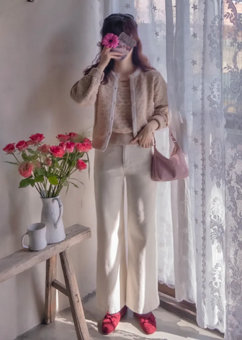 漂亮織紋點綴配色邊舒適穿搭開衫