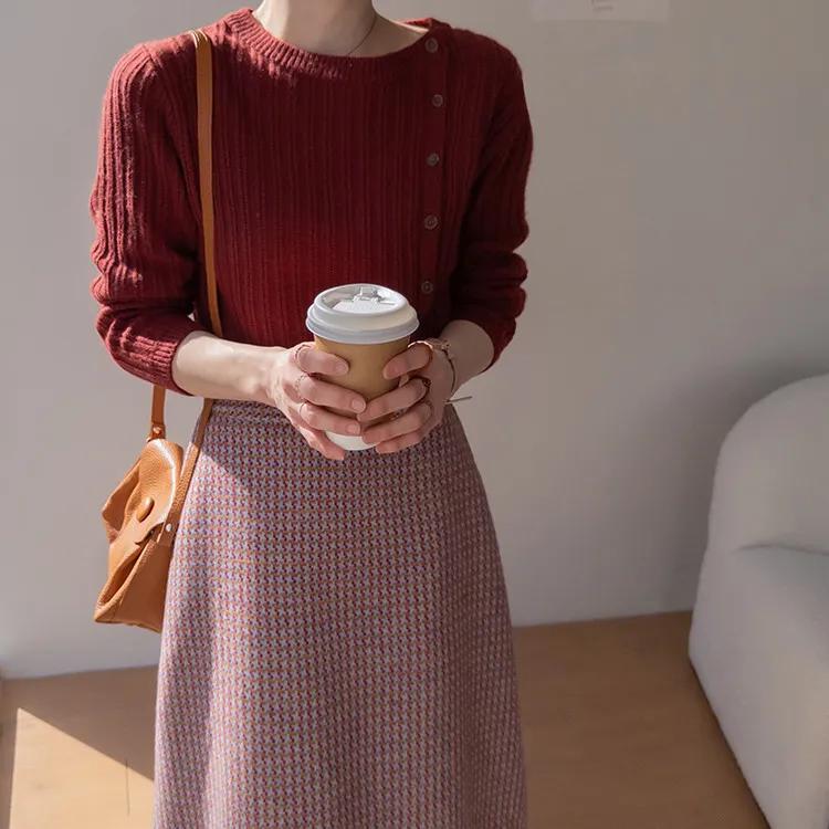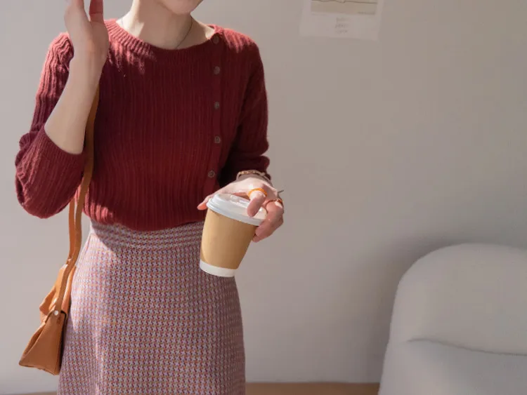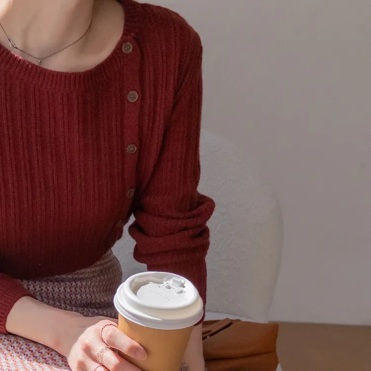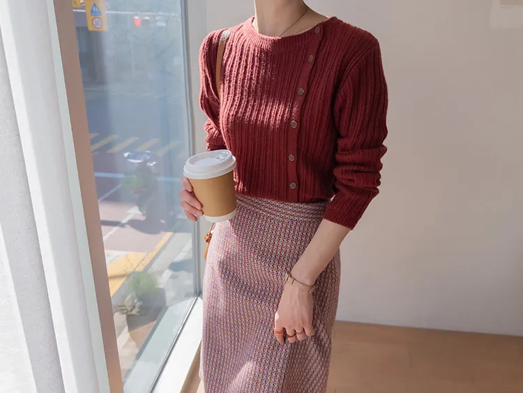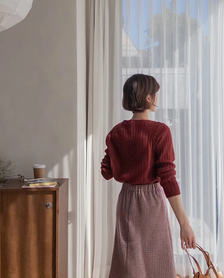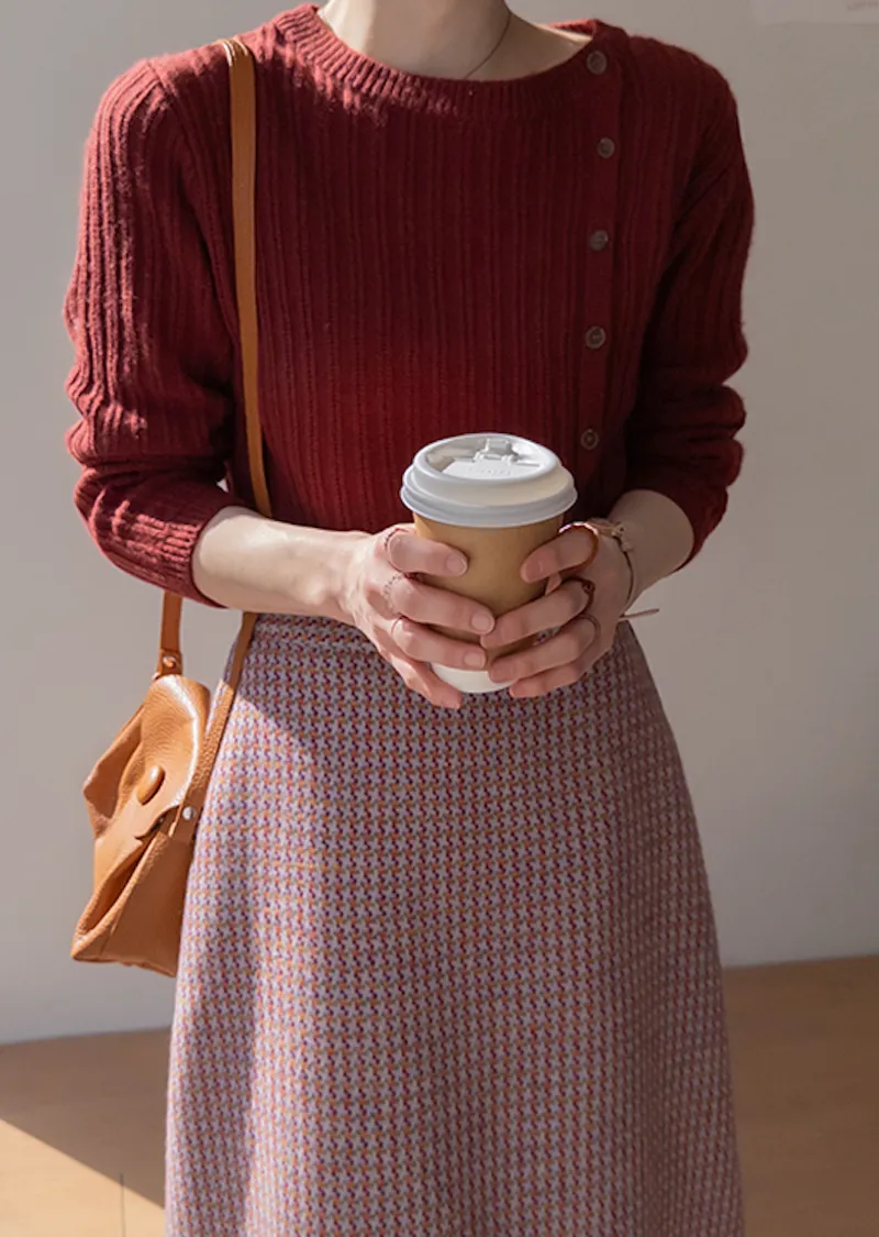 【時尚斜紋搭配,點綴時尚單品】【羊毛混紡布料輕款保暖♨】【豎線條羅紋布料打造顯瘦效果! 】【經典廓形,略帶斜剪裁~♬】