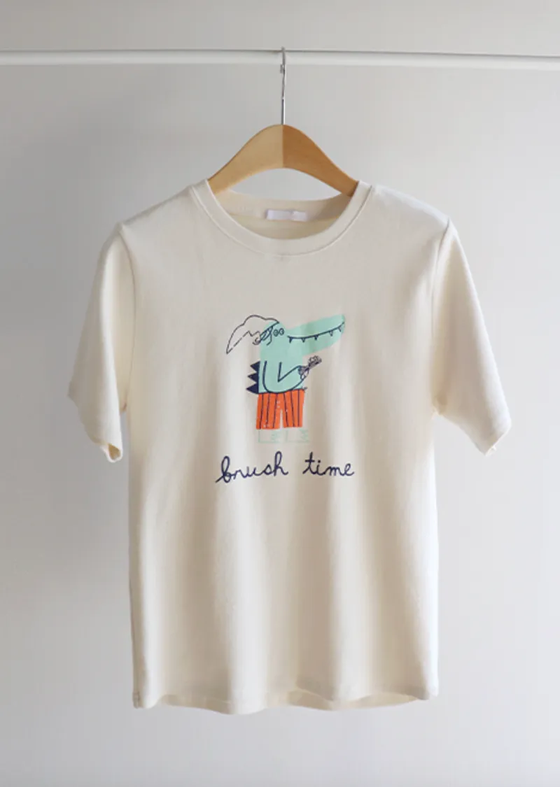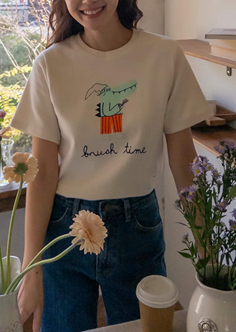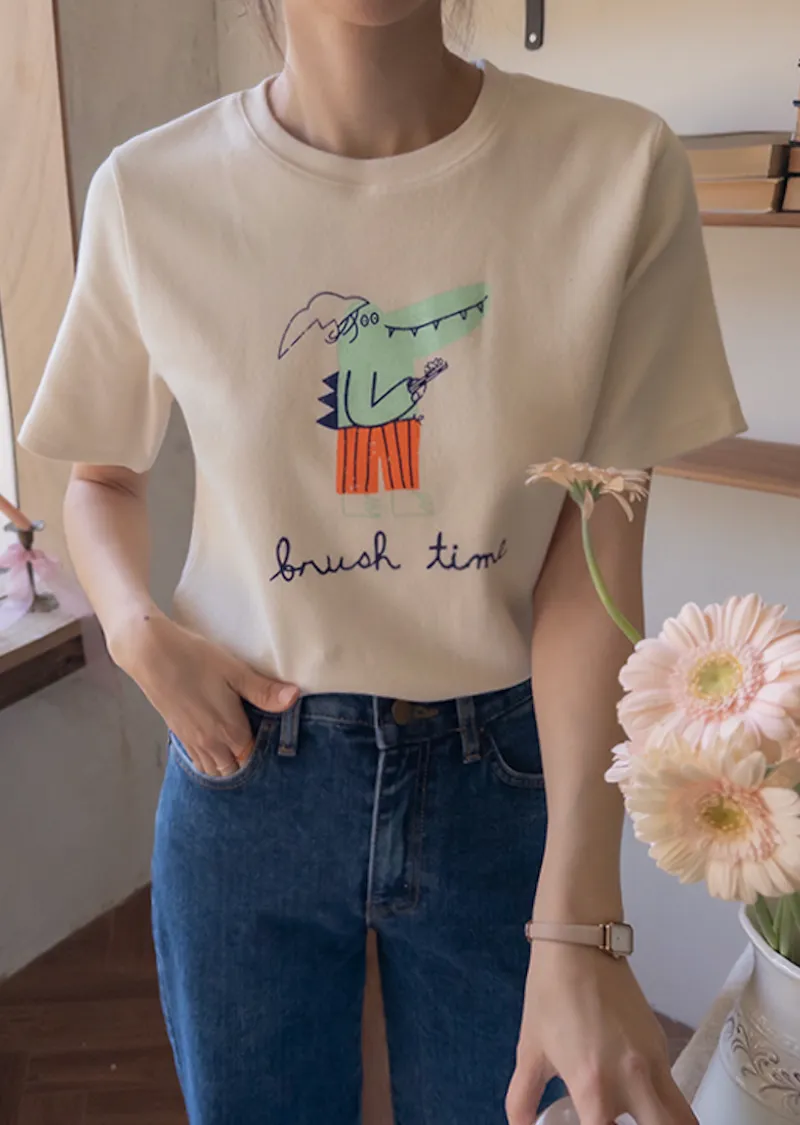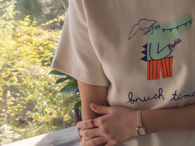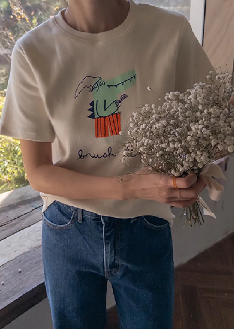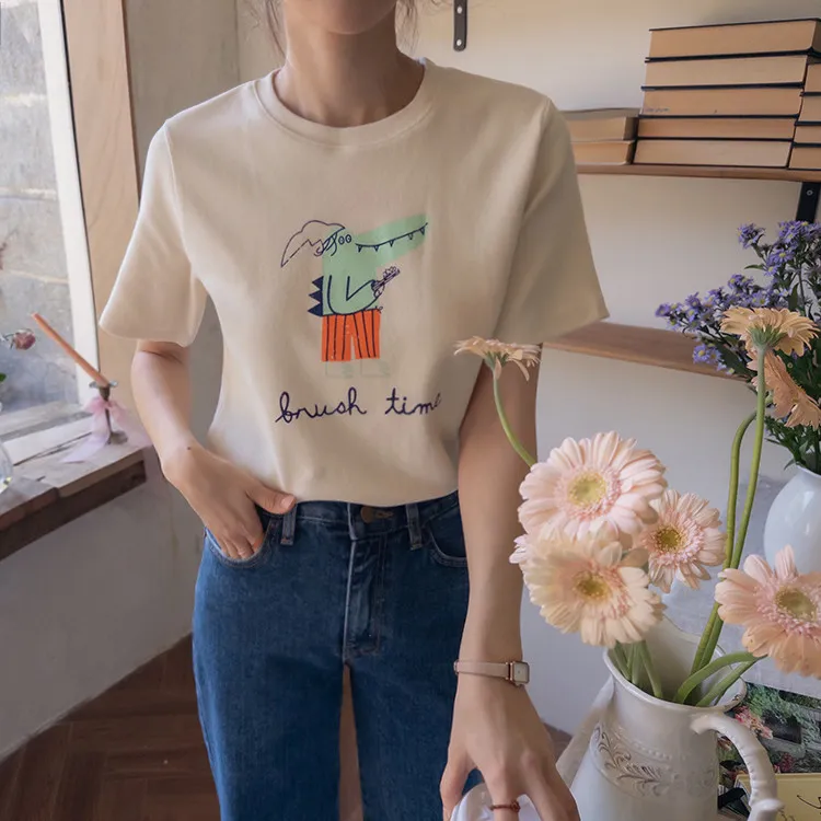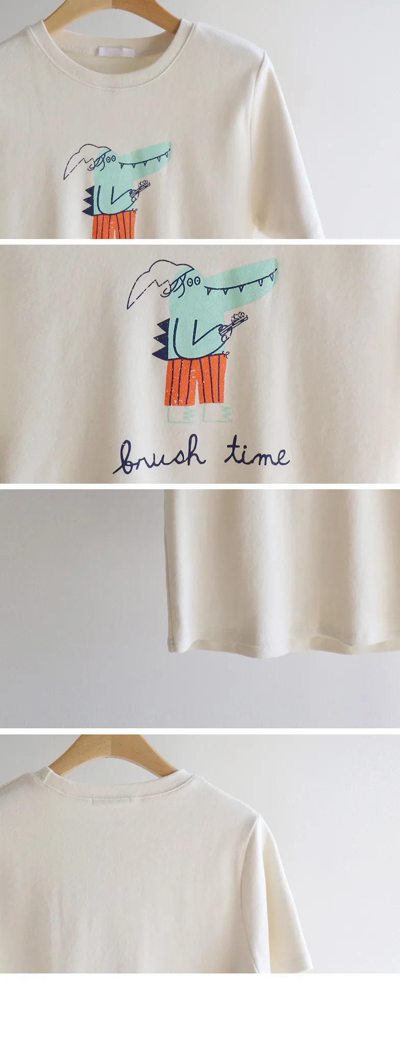 可愛呆萌鱷魚印花柔軟彈性絨質短袖上衣