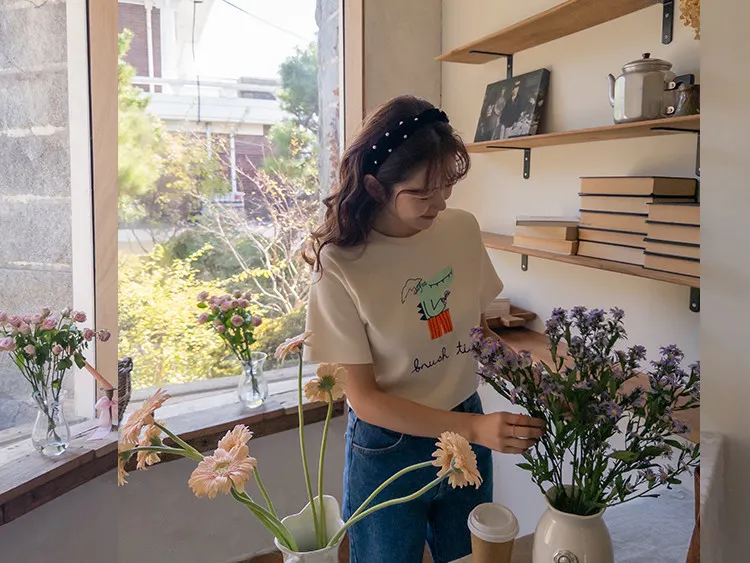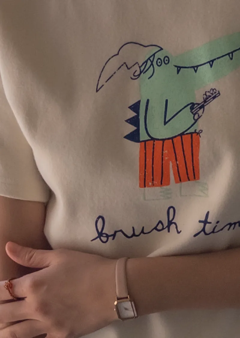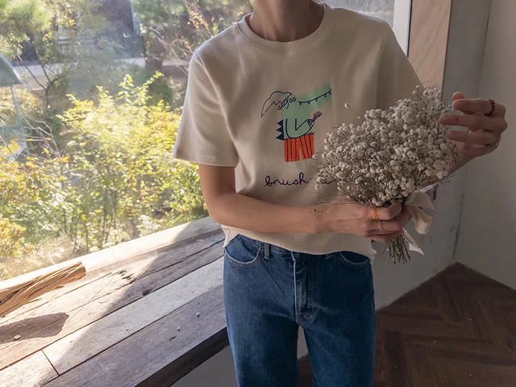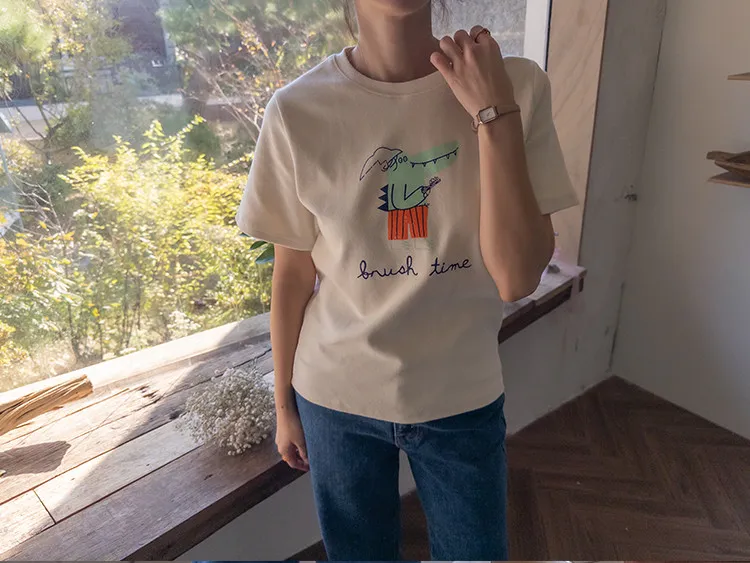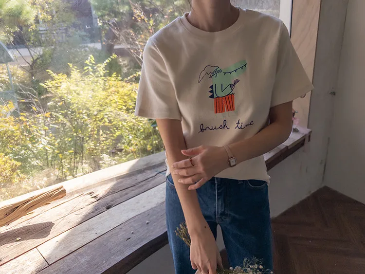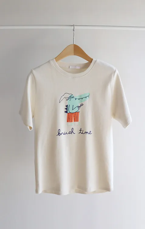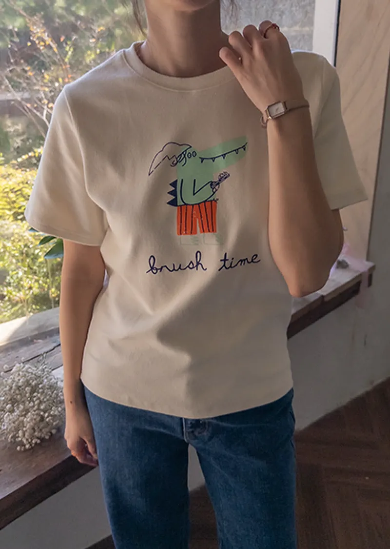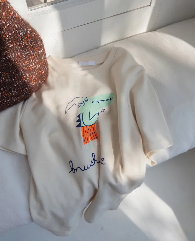可愛呆萌鱷魚印花柔軟彈性絨質短袖上衣