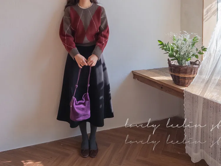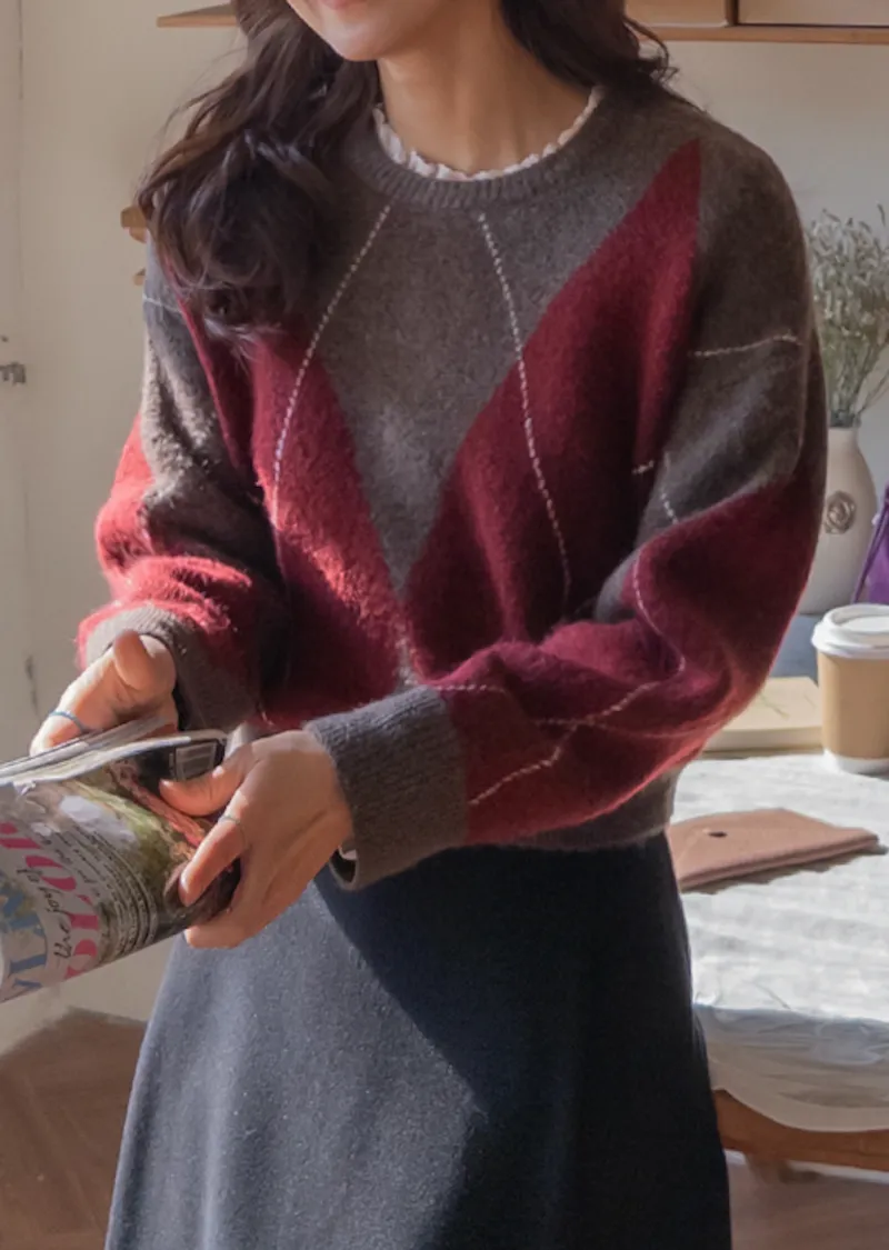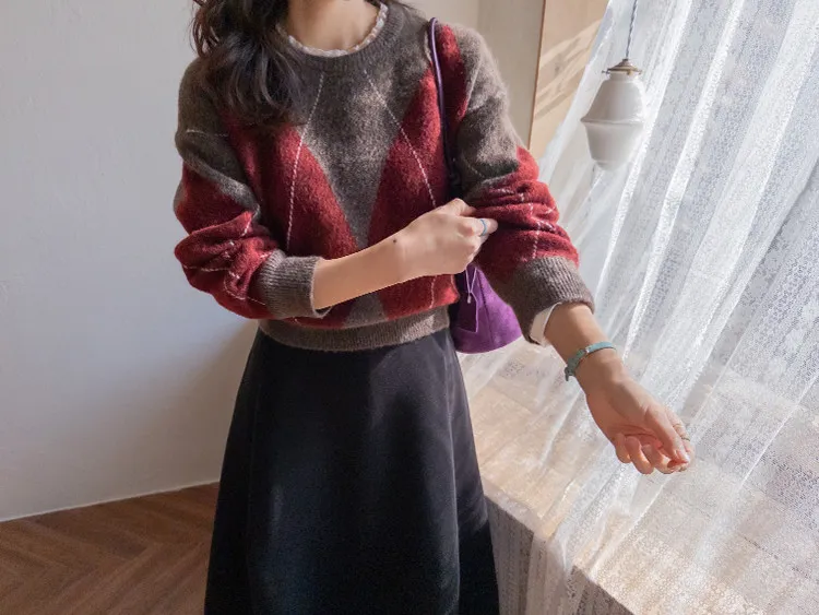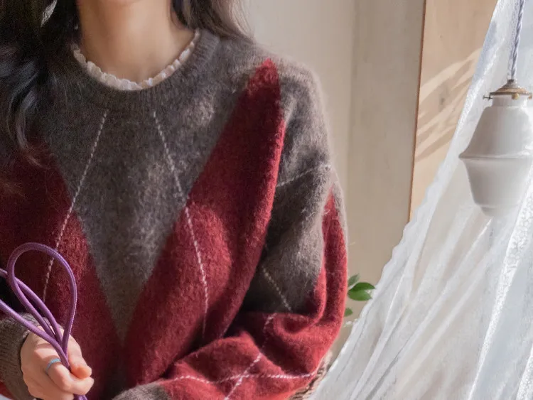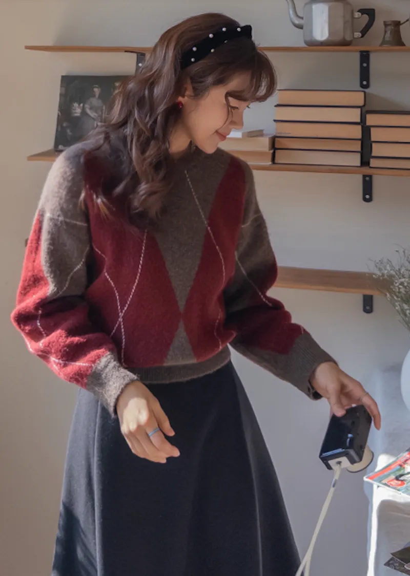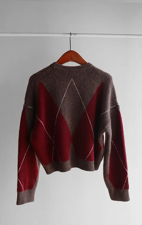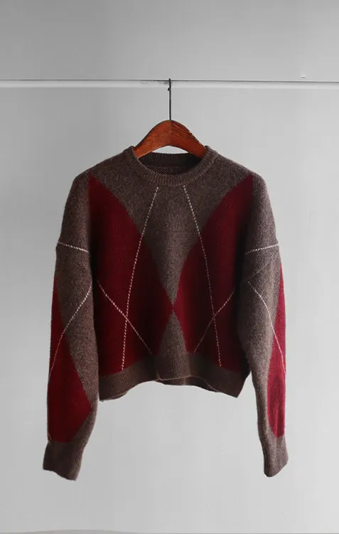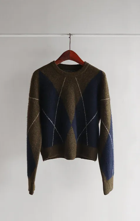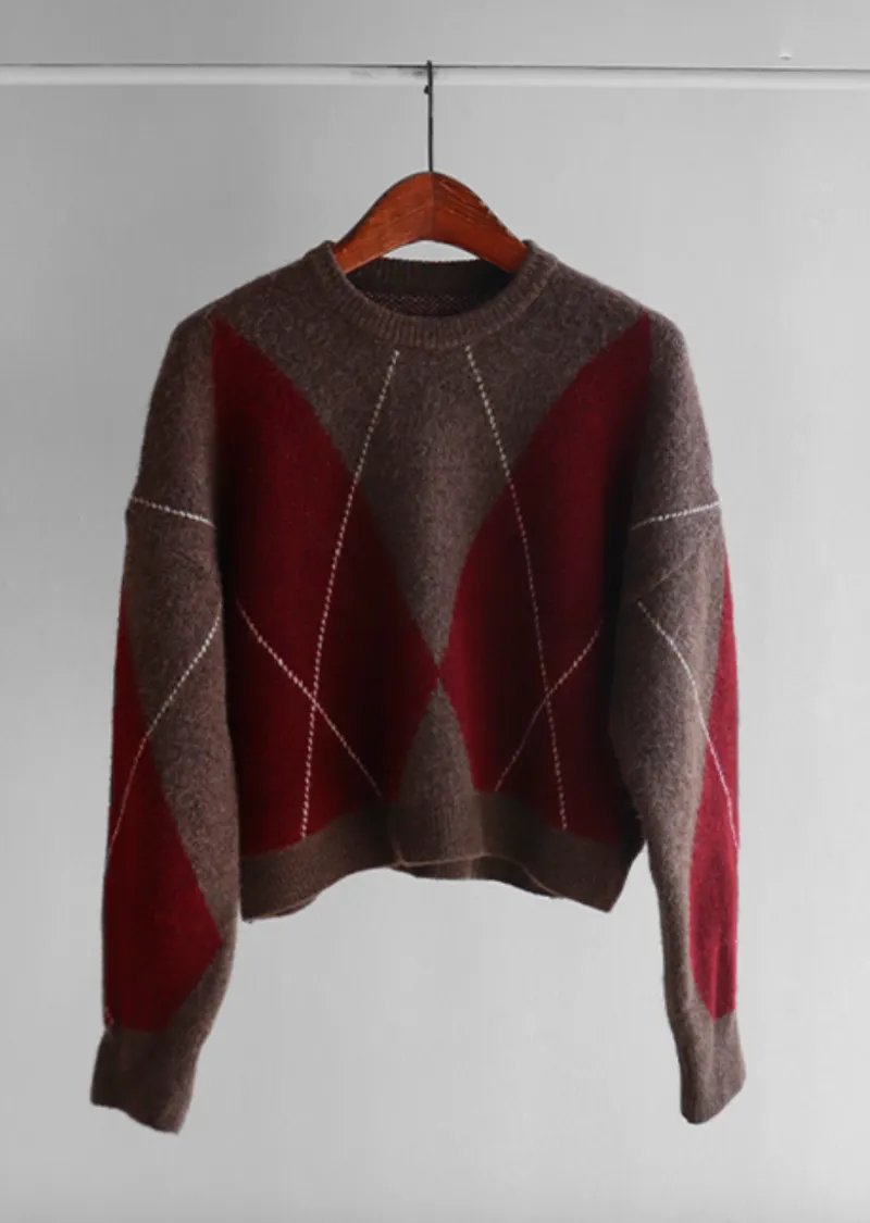 【充滿經典風格~菱格紋針織上衣♥】【厚實保暖,即使在冬天也能溫暖~】【迷人菱格紋圖案是亮點! ! 】【觸感柔軟溫暖,穿著舒適】