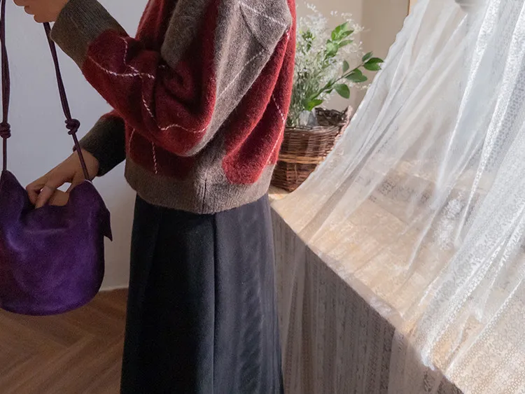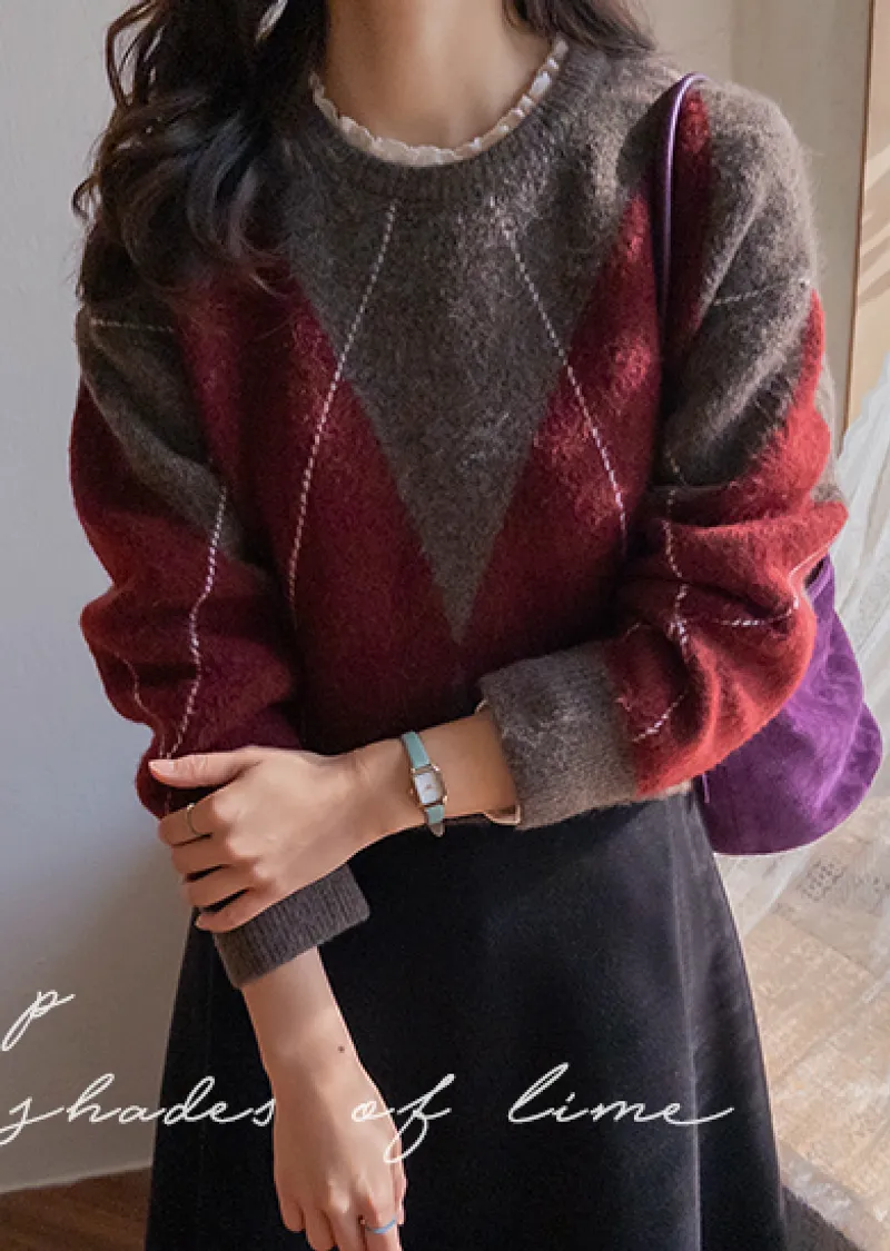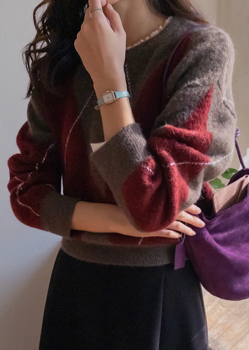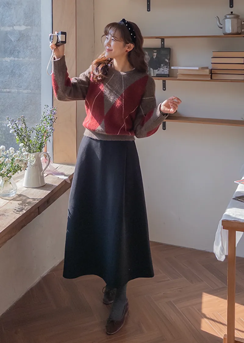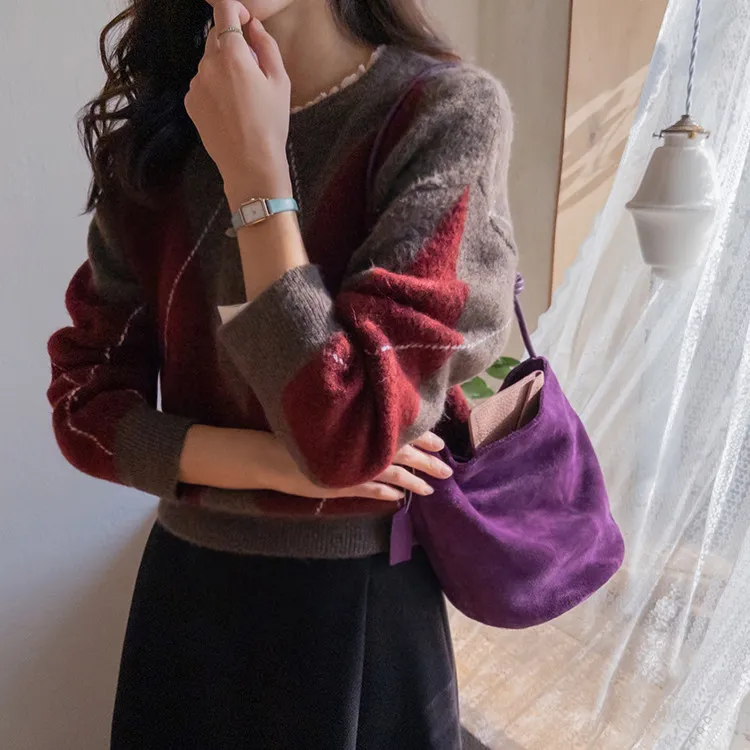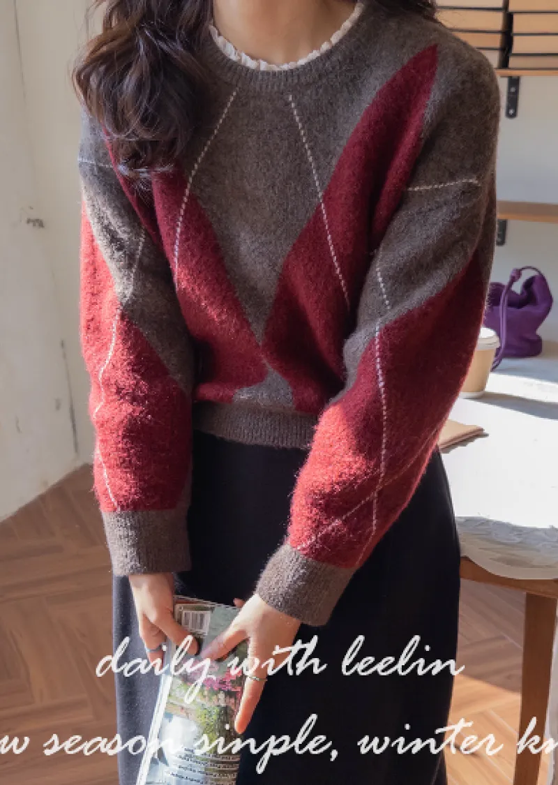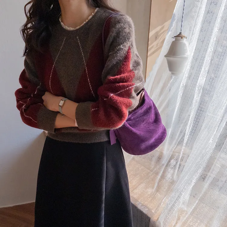 【充滿經典風格~菱格紋針織上衣♥】【厚實保暖,即使在冬天也能溫暖~】【迷人菱格紋圖案是亮點! ! 】【觸感柔軟溫暖,穿著舒適】