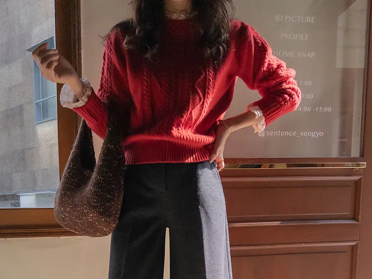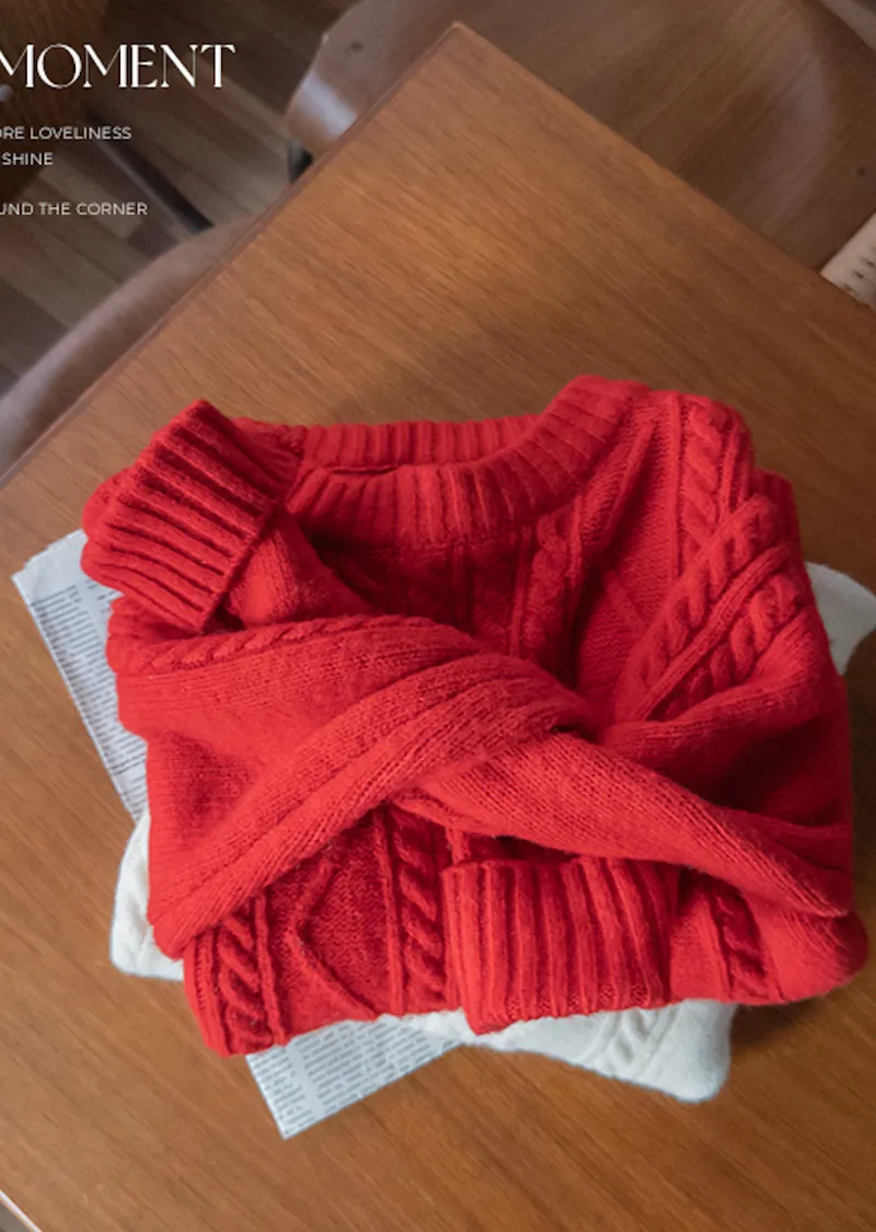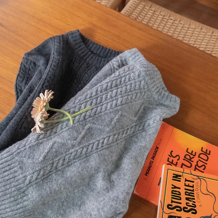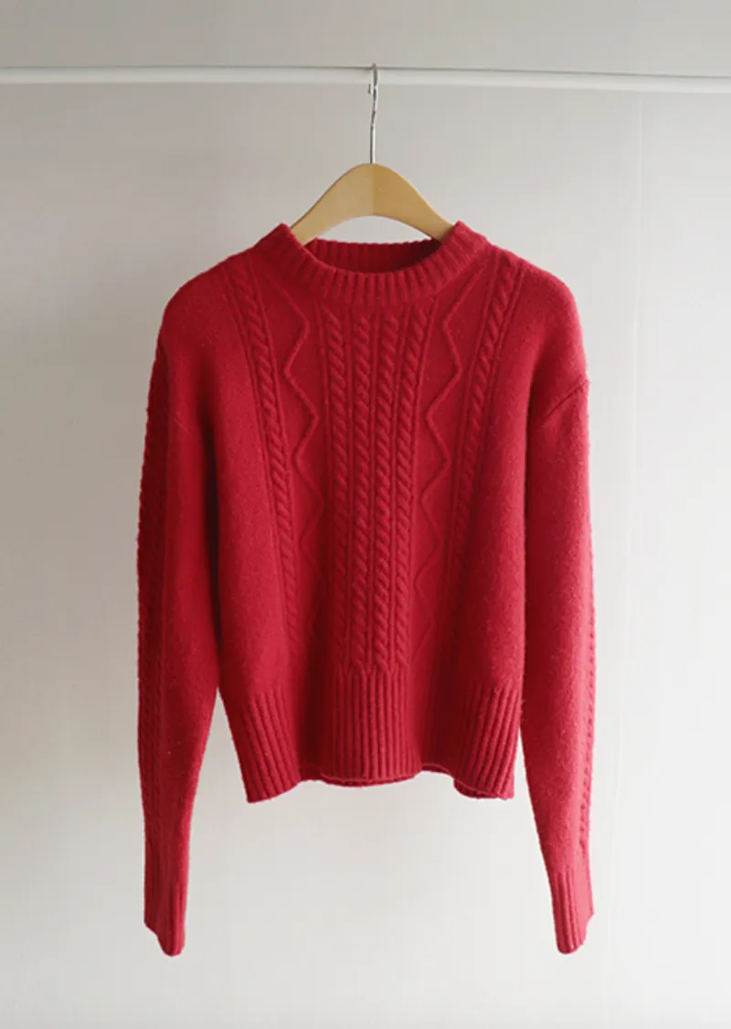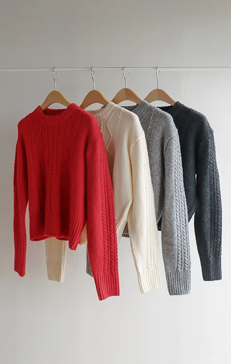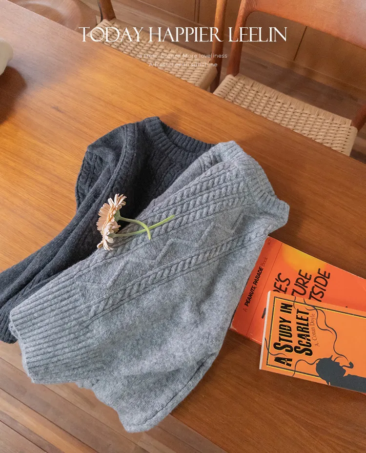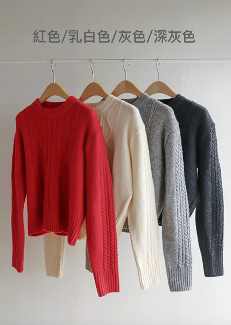 【精美針織衫,鍊式扭紋編織設計】【溫暖蓬鬆的羊毛混紡面料】【必備基本款】【營造精緻氛圍】