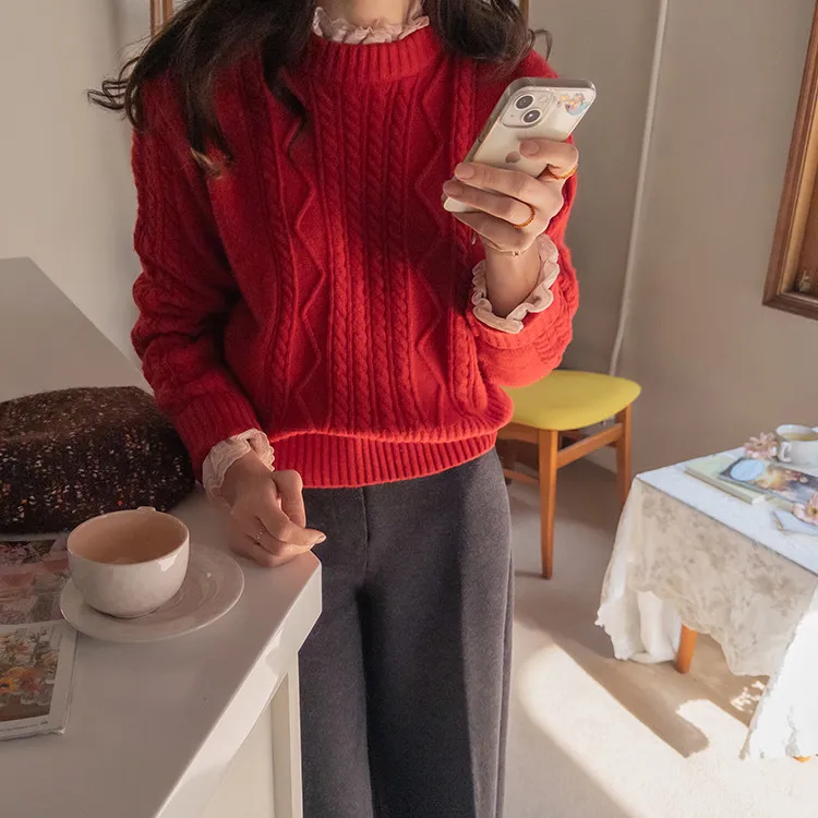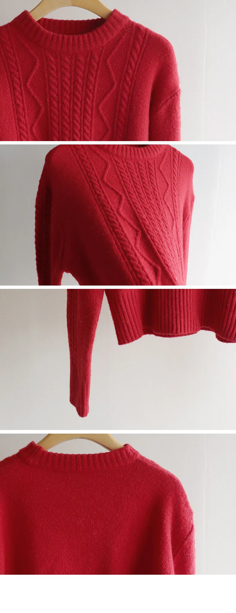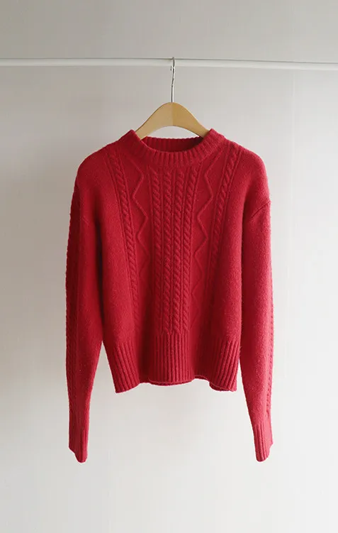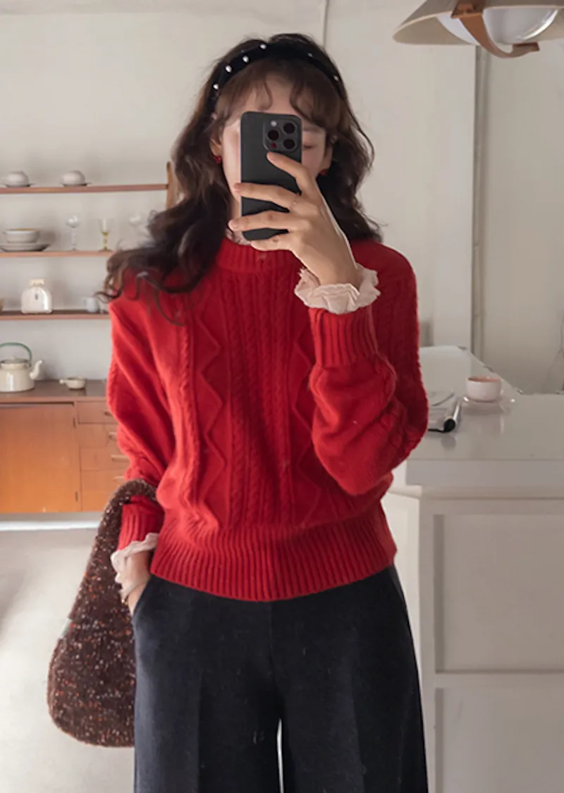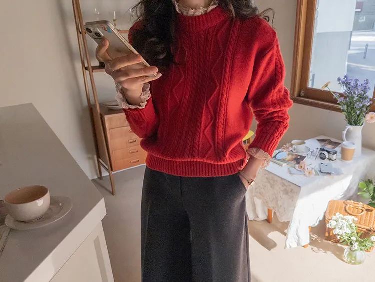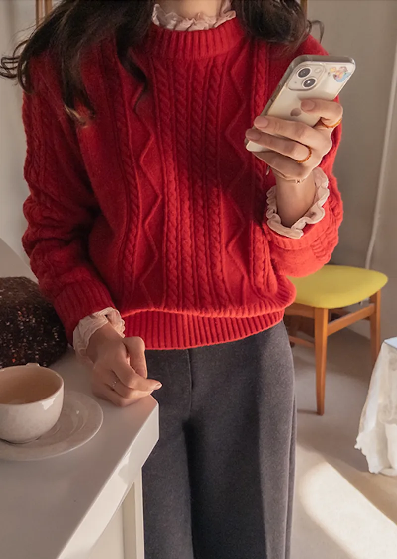 【精美針織衫,鍊式扭紋編織設計】【溫暖蓬鬆的羊毛混紡面料】【必備基本款】【營造精緻氛圍】