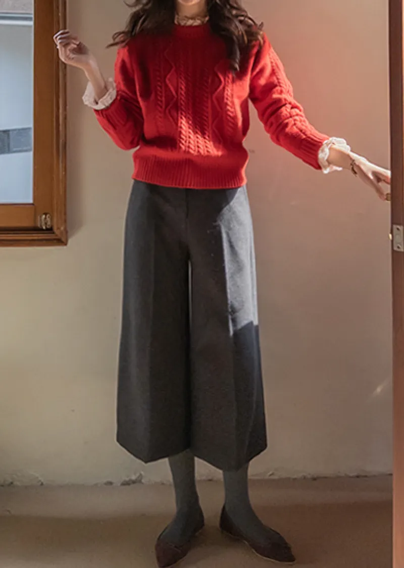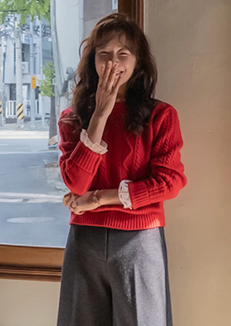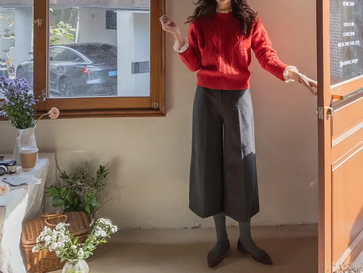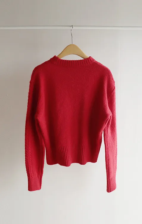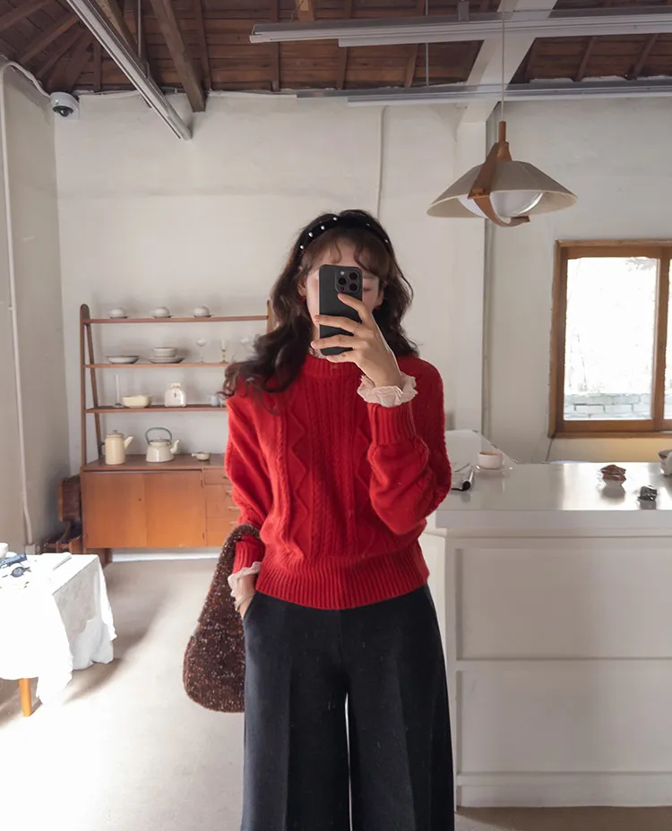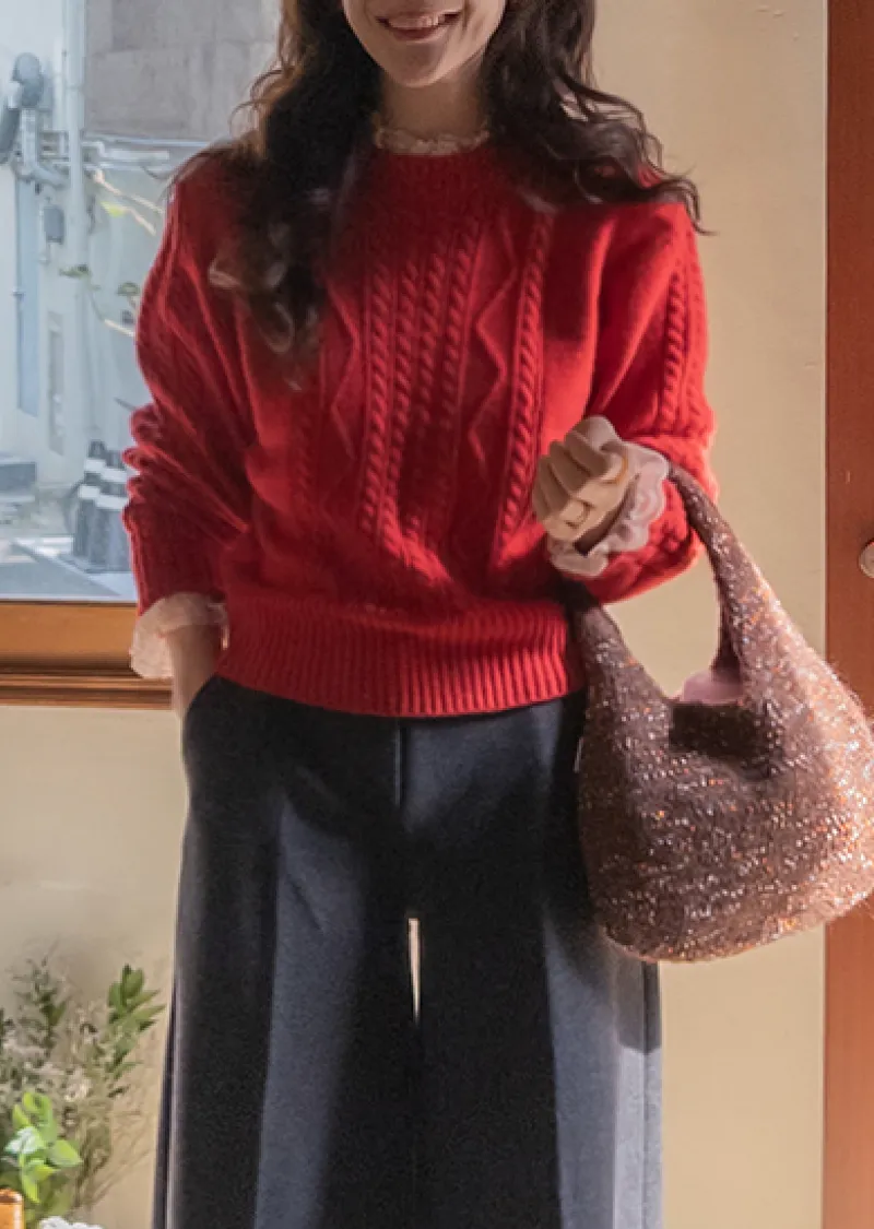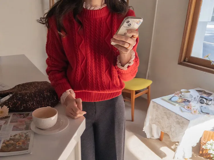 【精美針織衫,鍊式扭紋編織設計】【溫暖蓬鬆的羊毛混紡面料】【必備基本款】【營造精緻氛圍】
