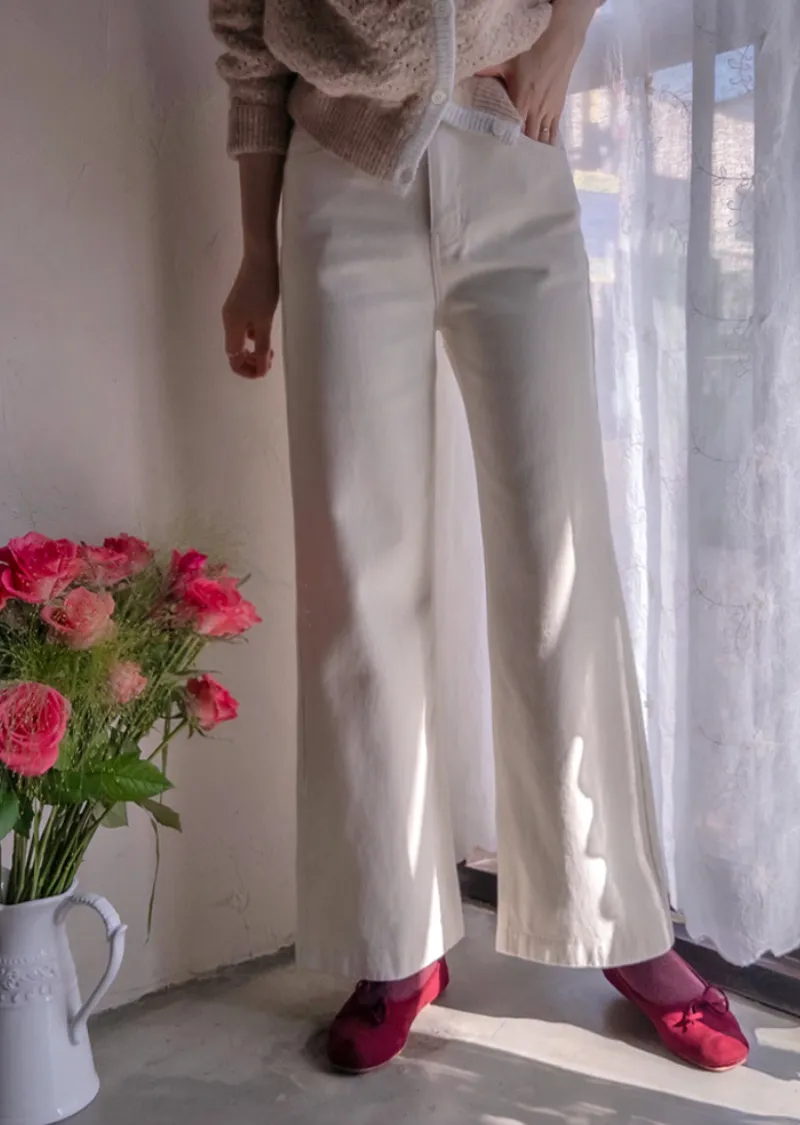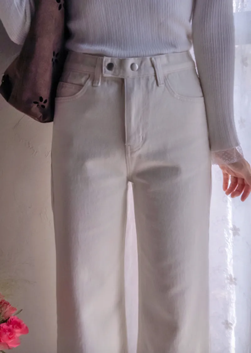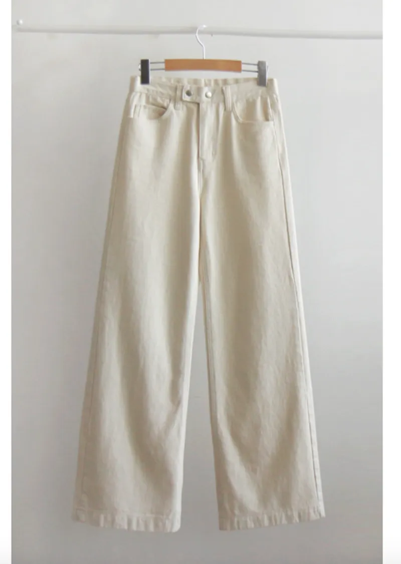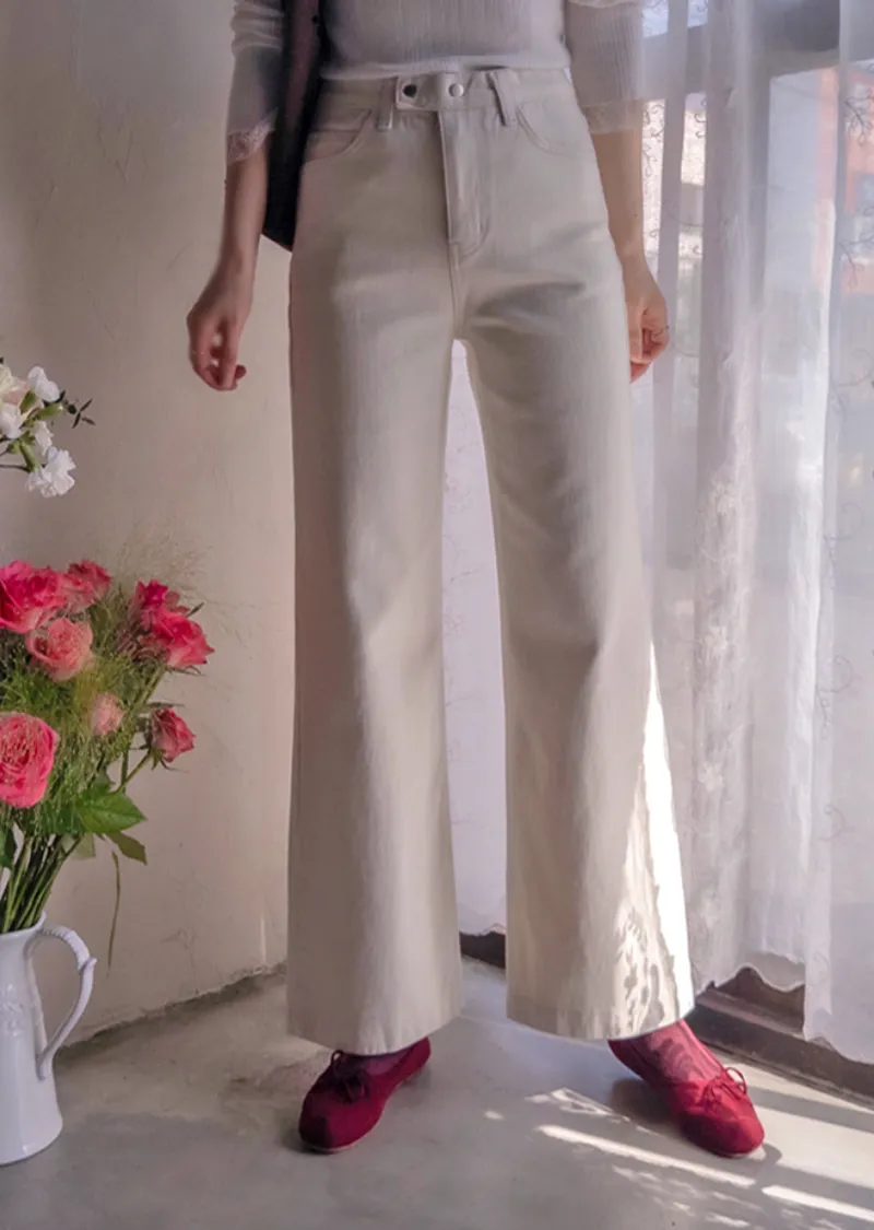 保暖舒適雙扣修身半寬直筒休閒褲