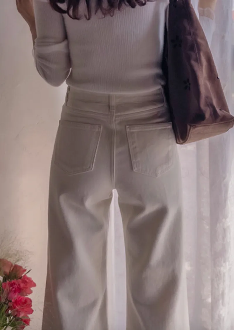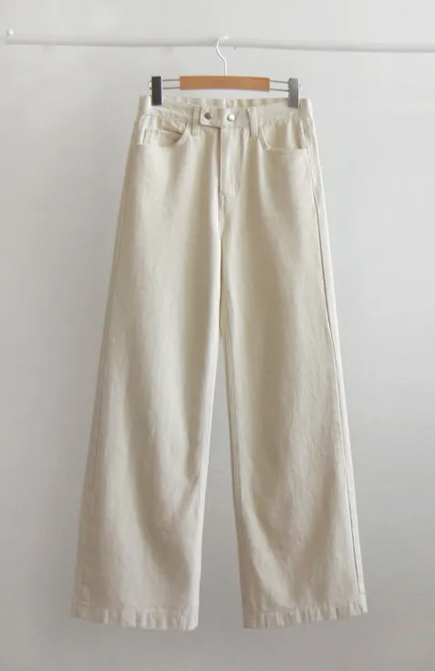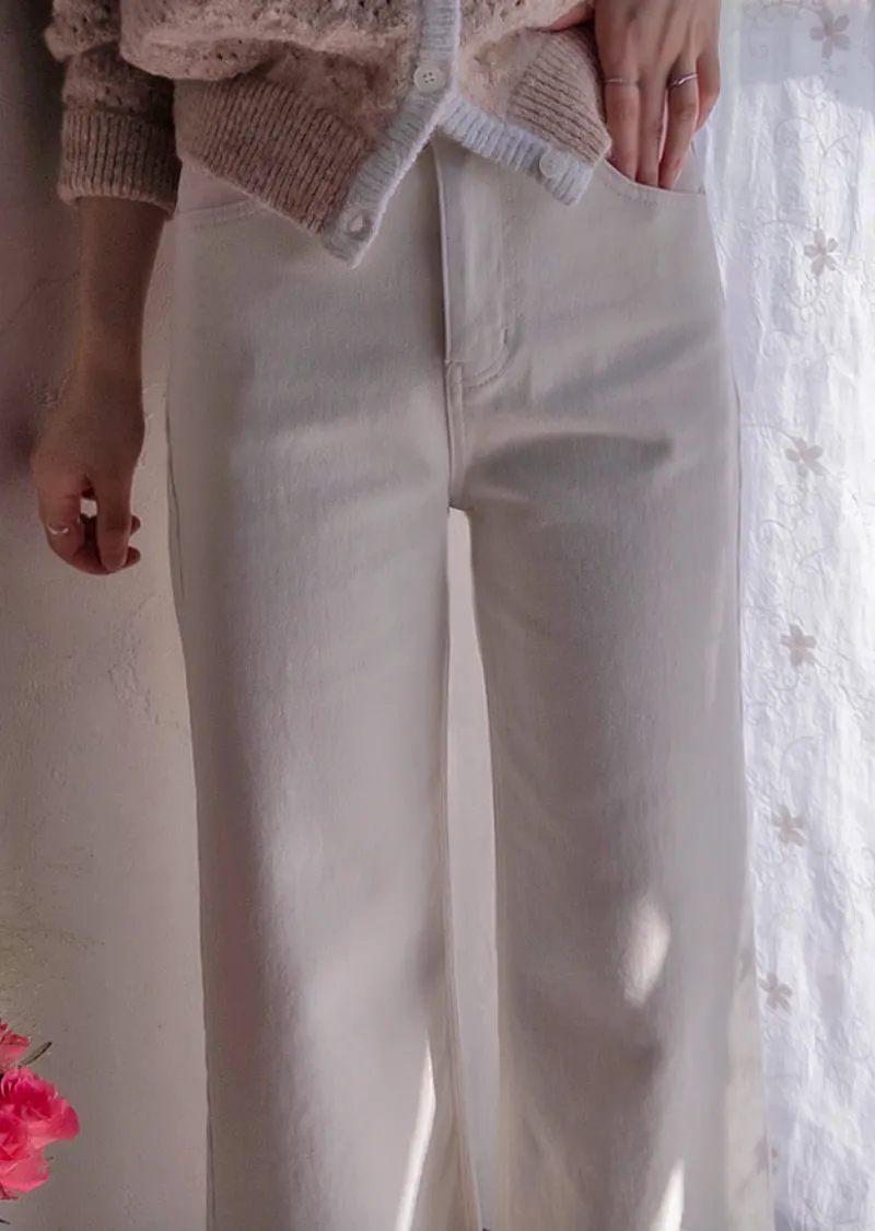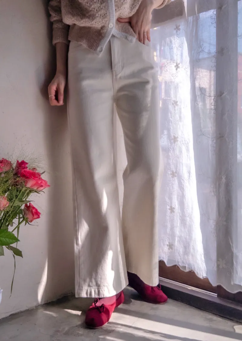 保暖舒適雙扣修身半寬直筒休閒褲
