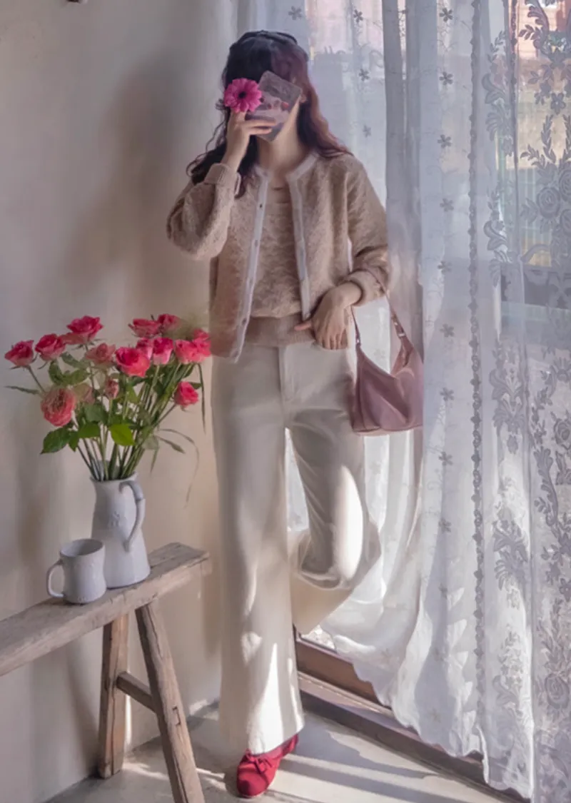 【抓絨內襯】【保暖內襯】【時尚直筒版型】【內外雙抓絨內襯:羊皮褲】【柔軟抓絨觸感】【日常穿著,搭配亮色系單品,時尚有型】【柔軟舒適,半寬鬆修身直筒版型】