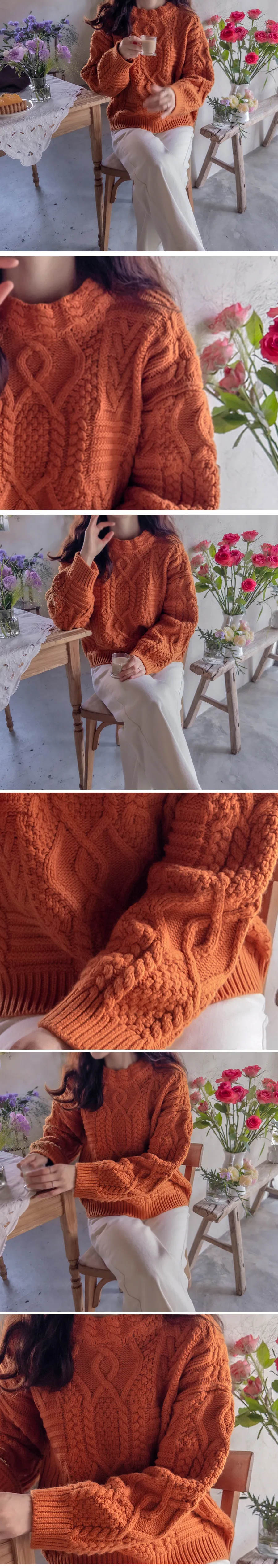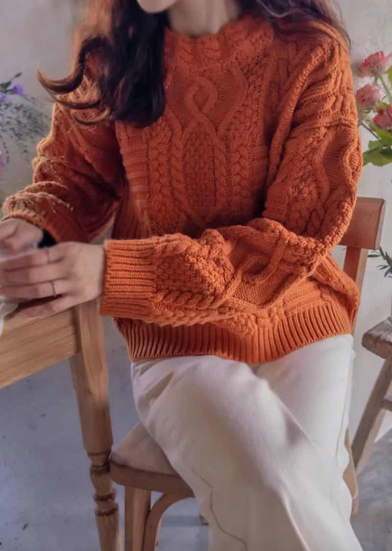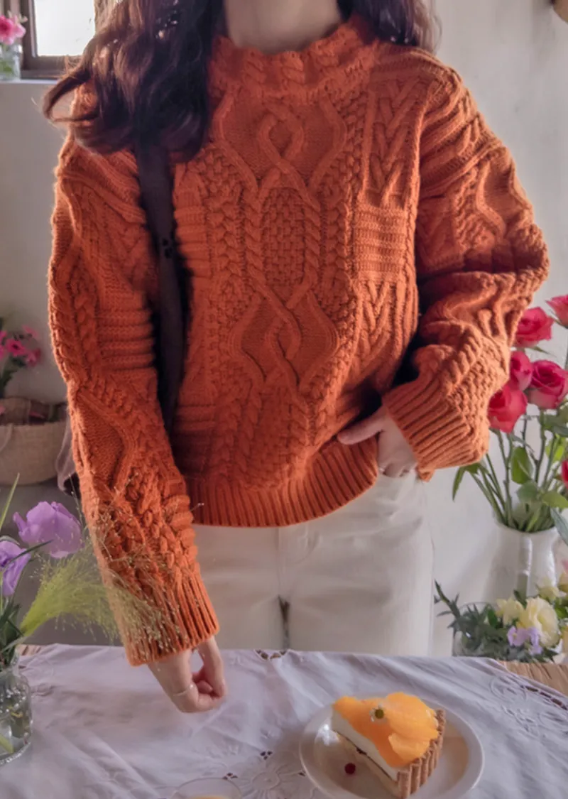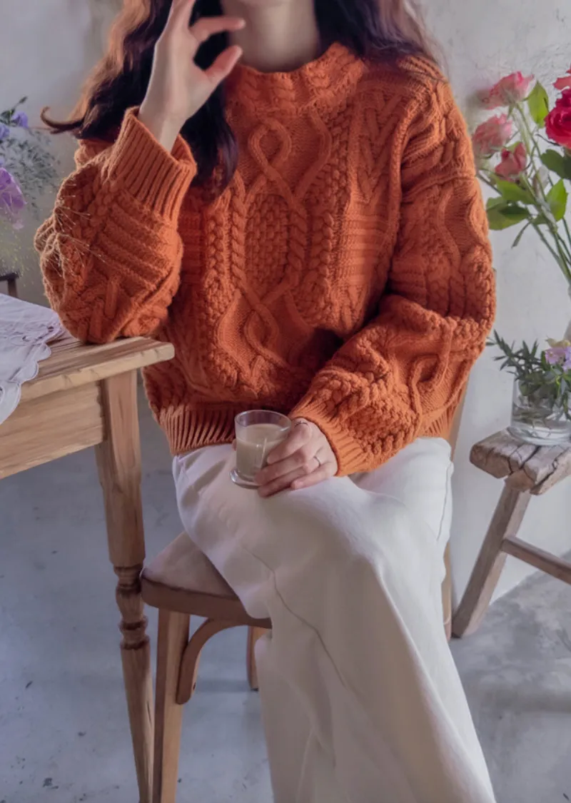 精緻扭結編織純色日常針織上衣