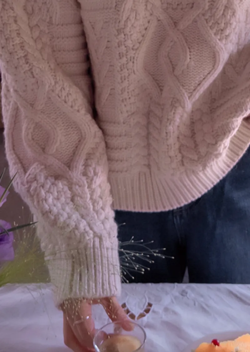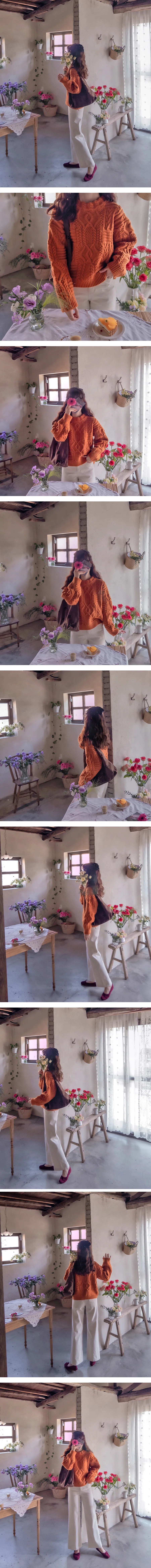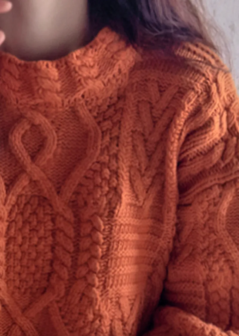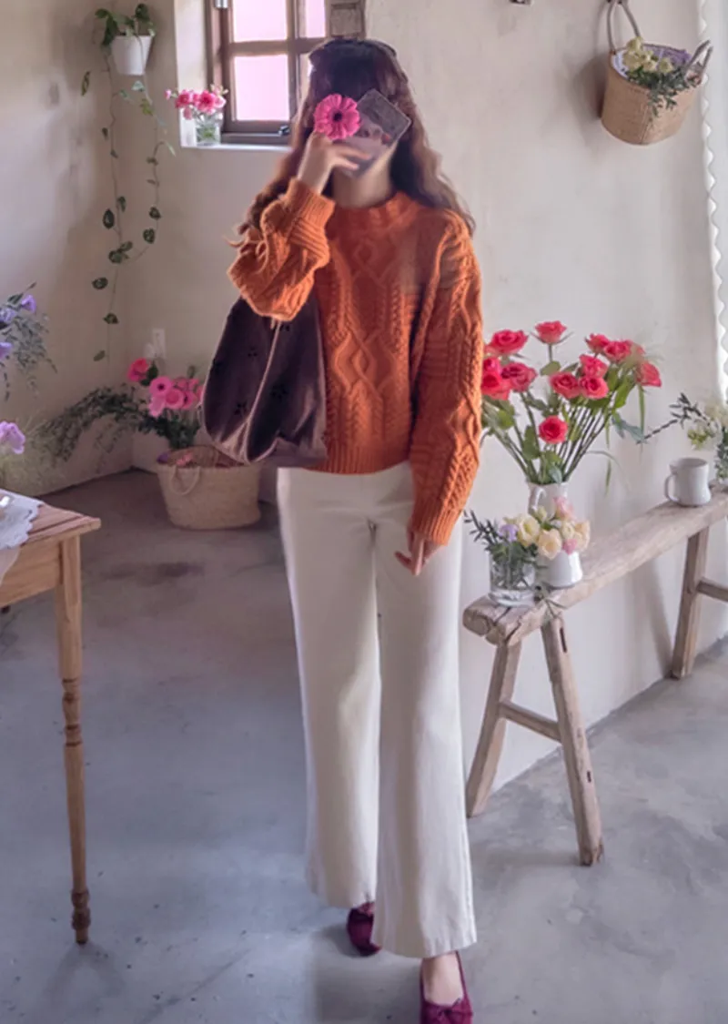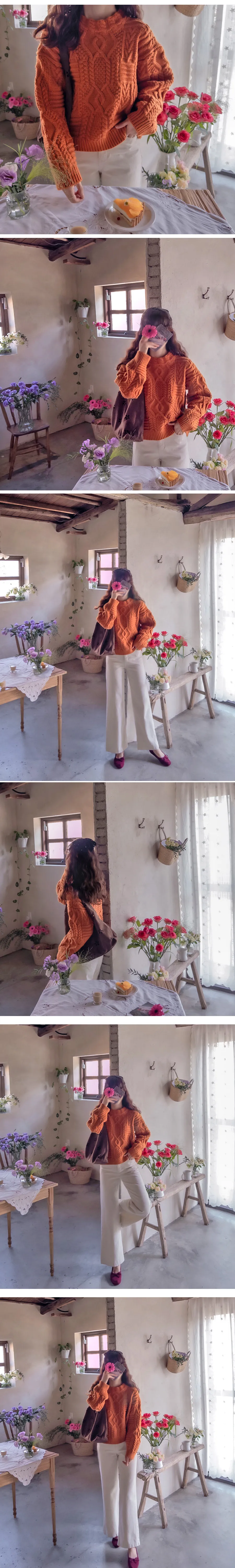 精緻扭結編織純色日常針織上衣